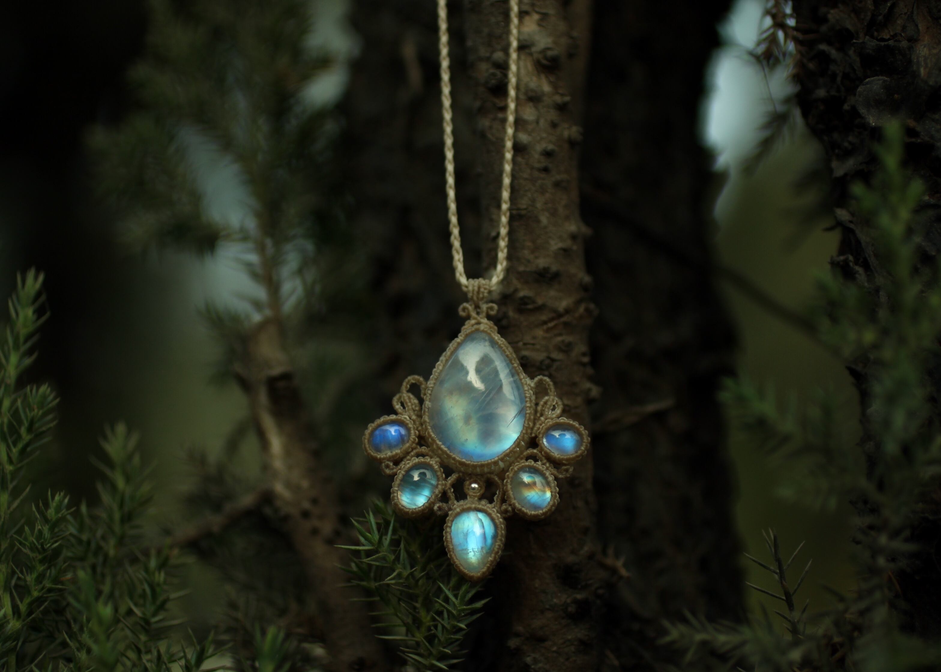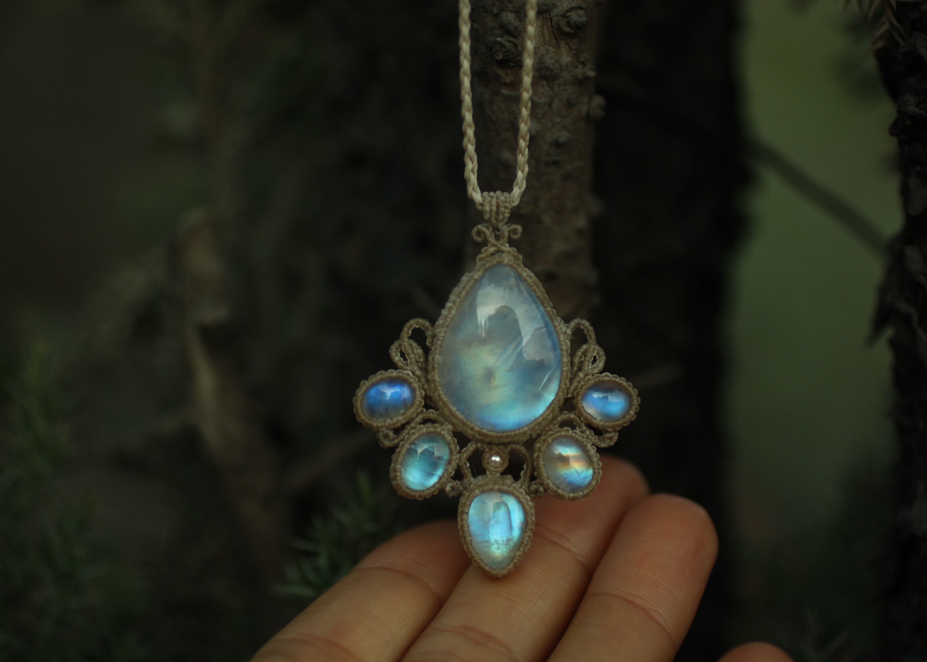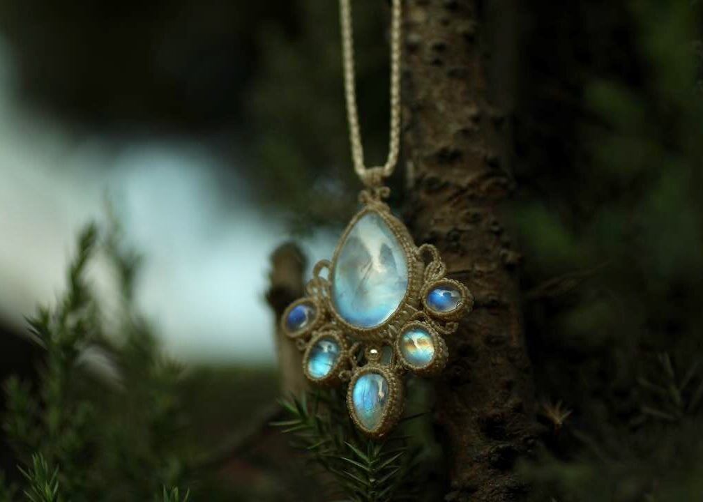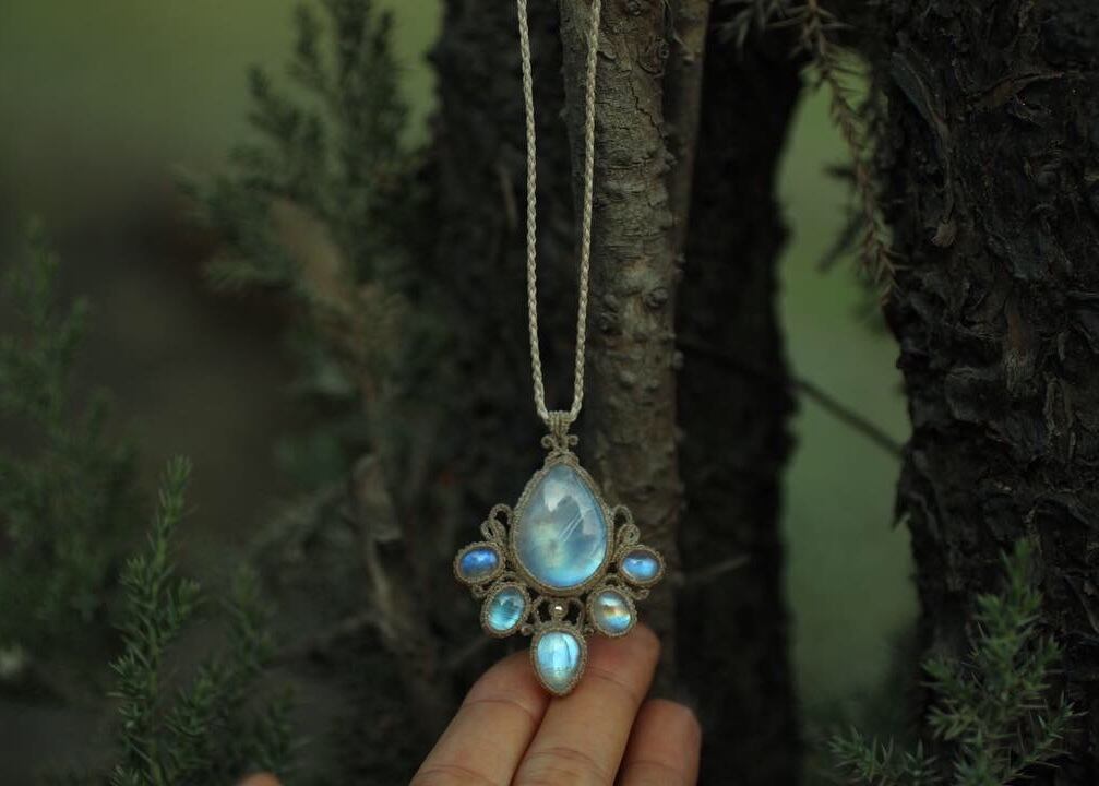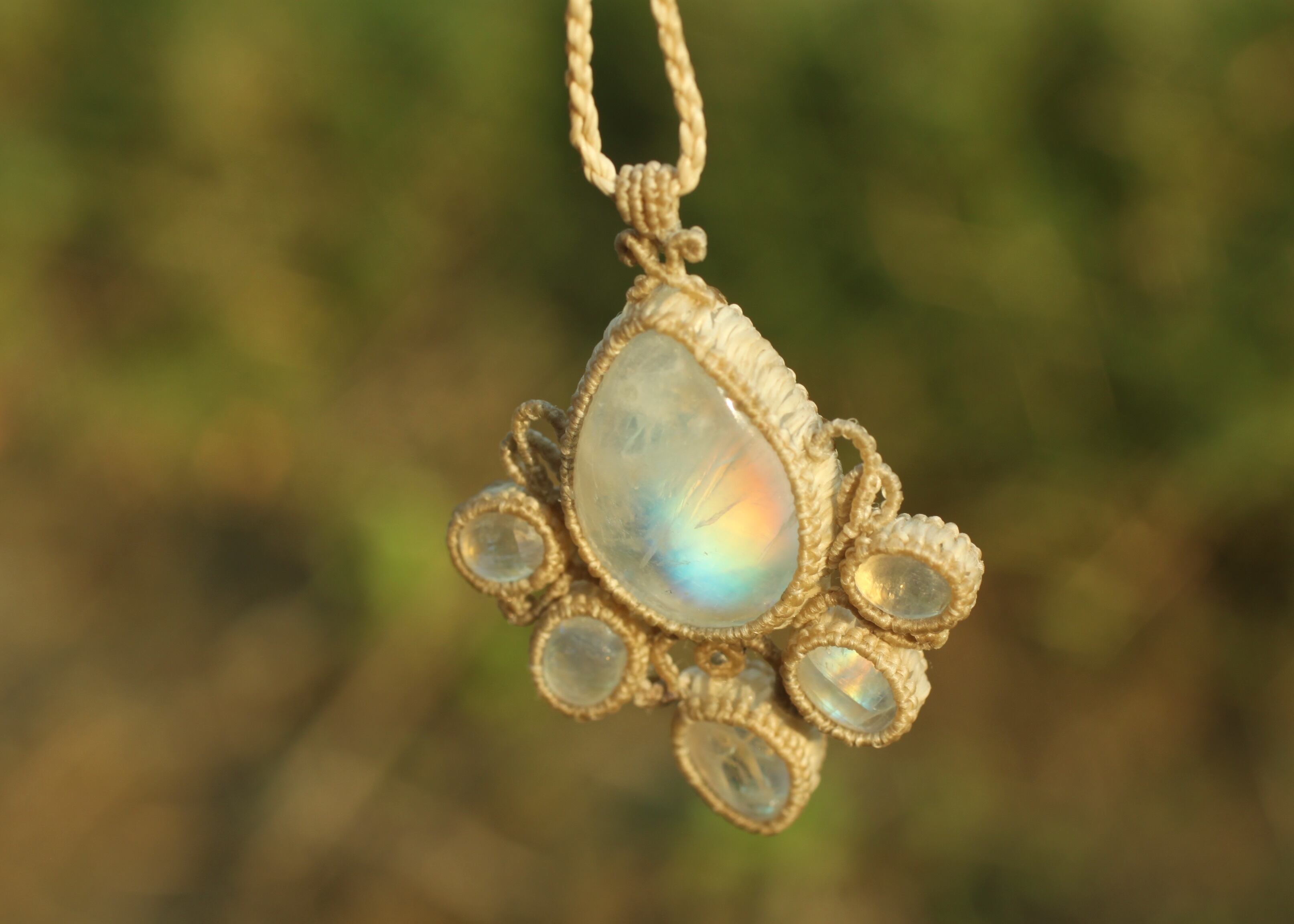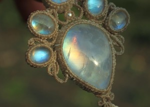 メインとなるとしずく型のムーンストーンを太陽の下で見ると、