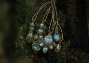 手縫い糸ほどの細いコードを使い出来る限り天然石の表情と繊細な仕上がりを重視し時間をかけ丁寧に編みました。