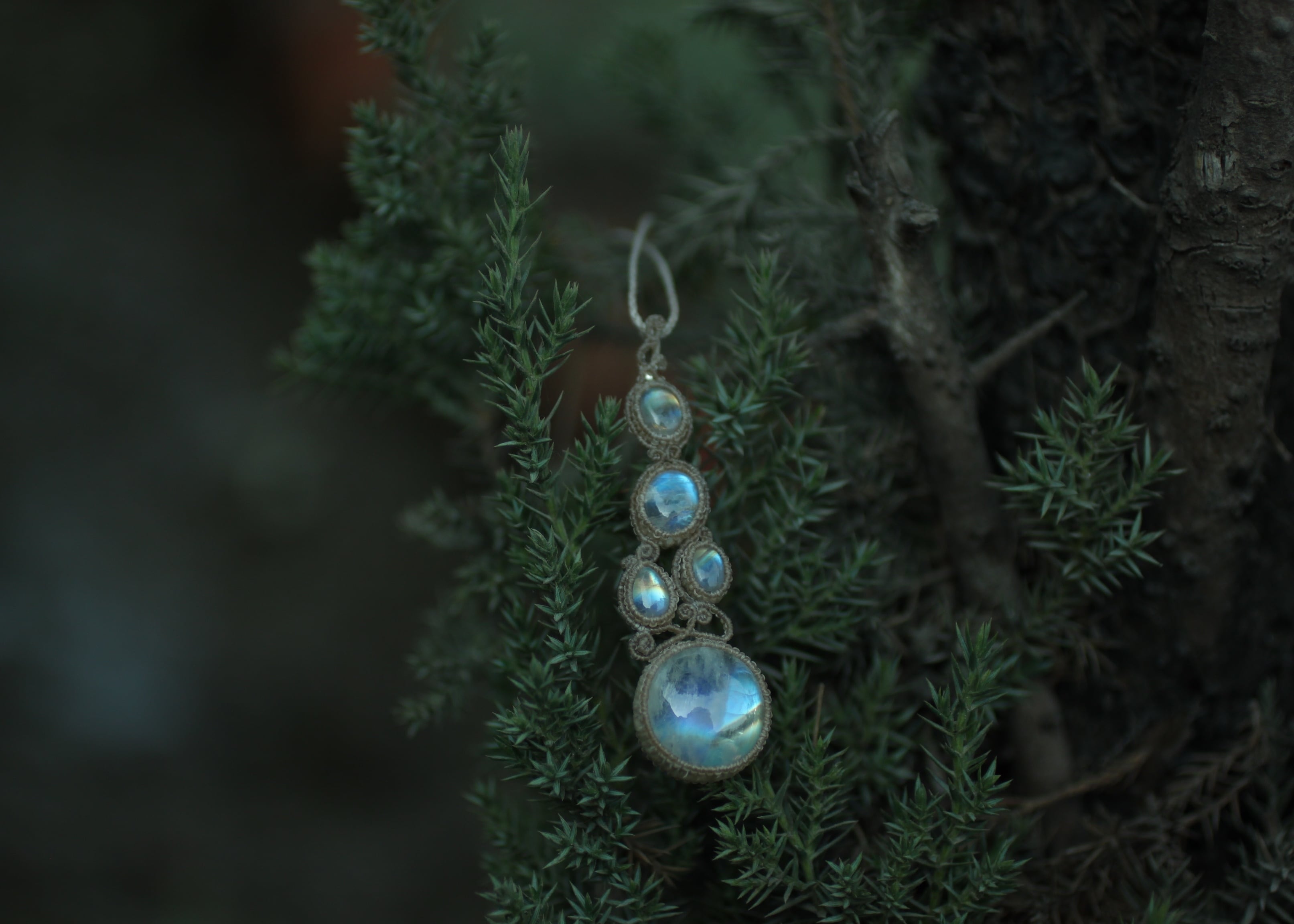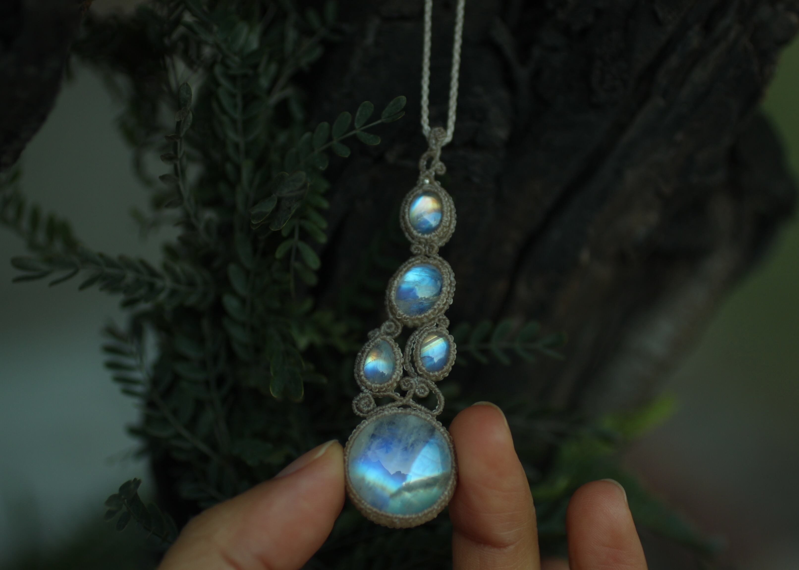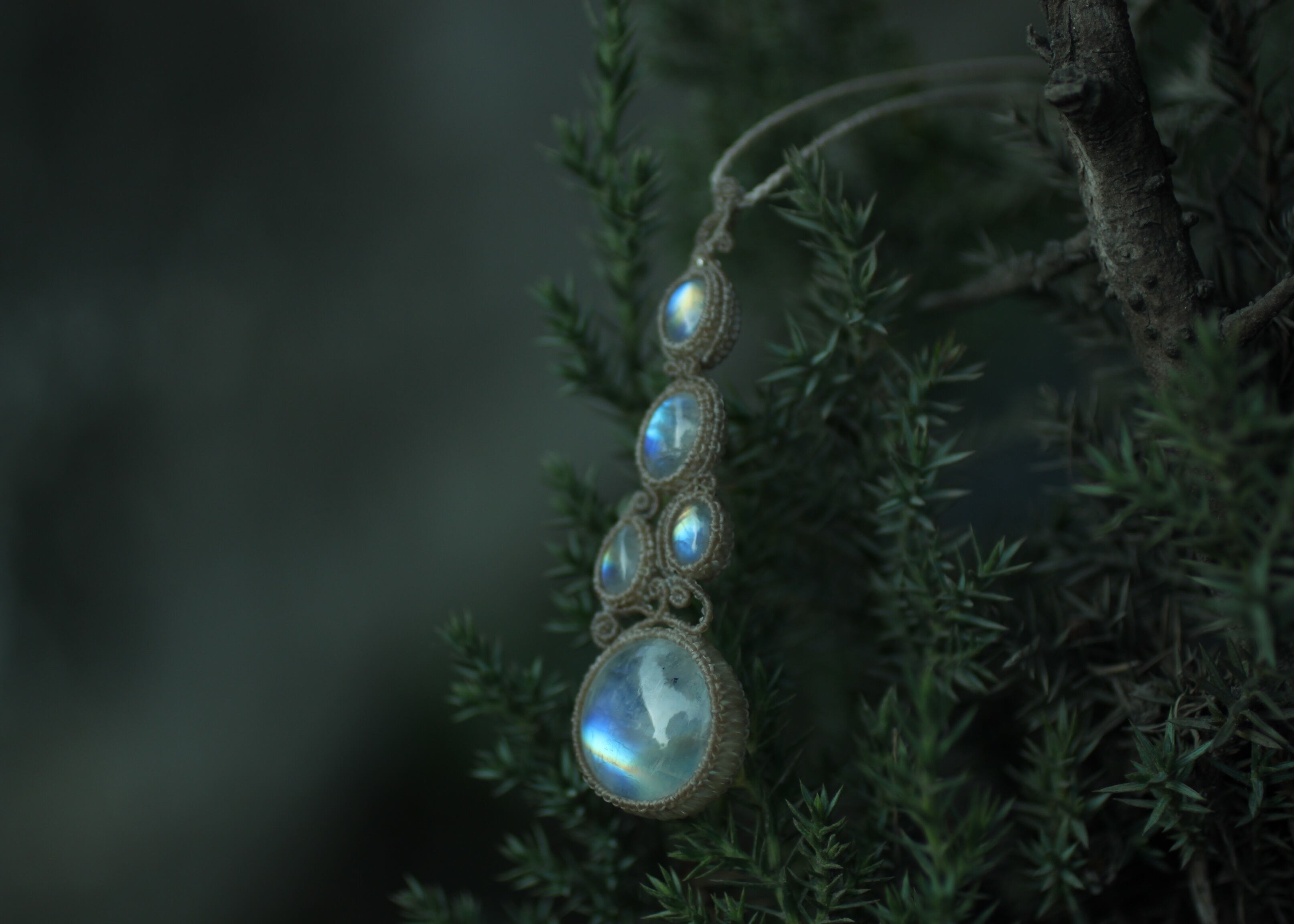 思い切って贅沢に、レインボームーンストーンのみをあしらったネックレスへと仕上げました。