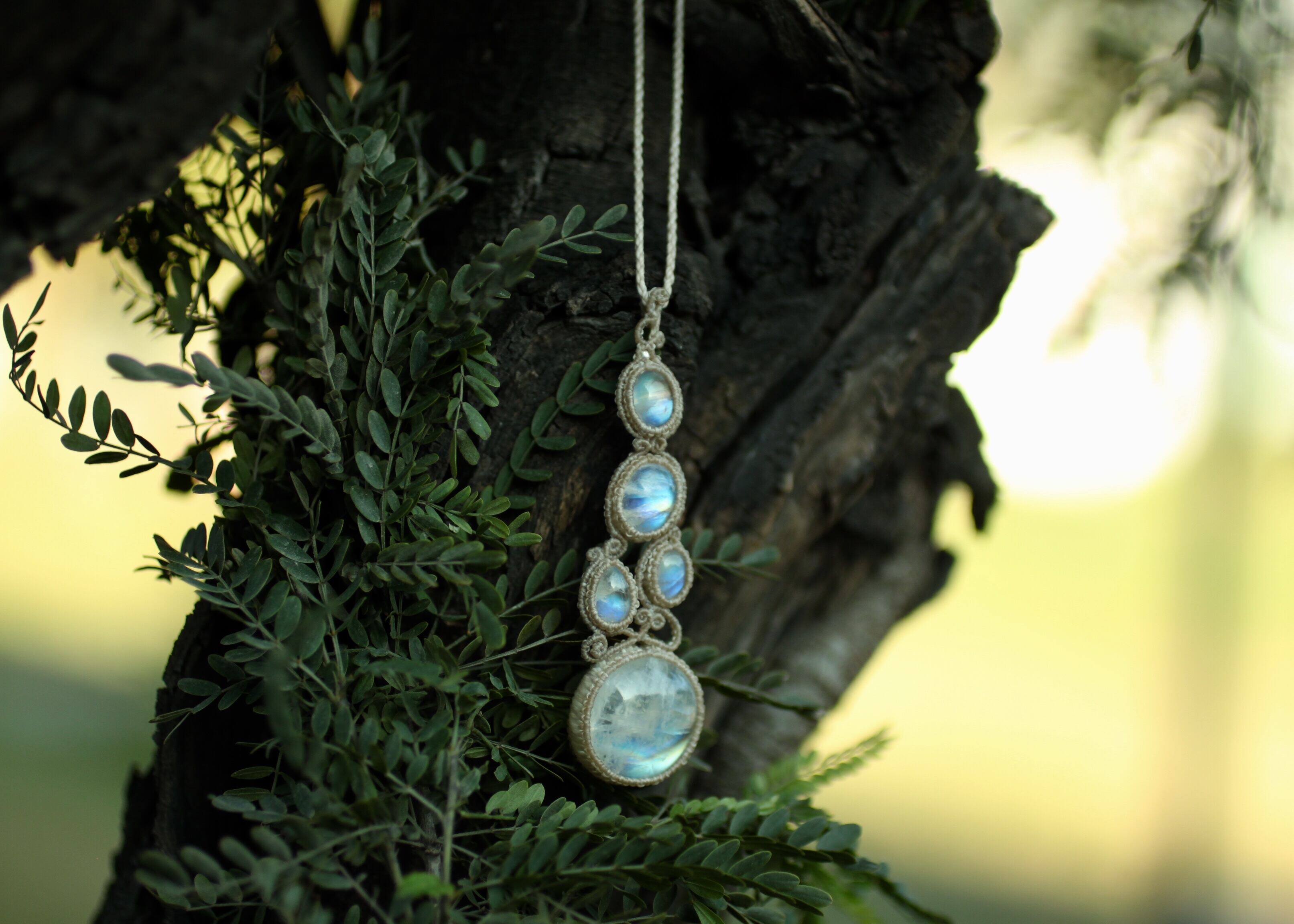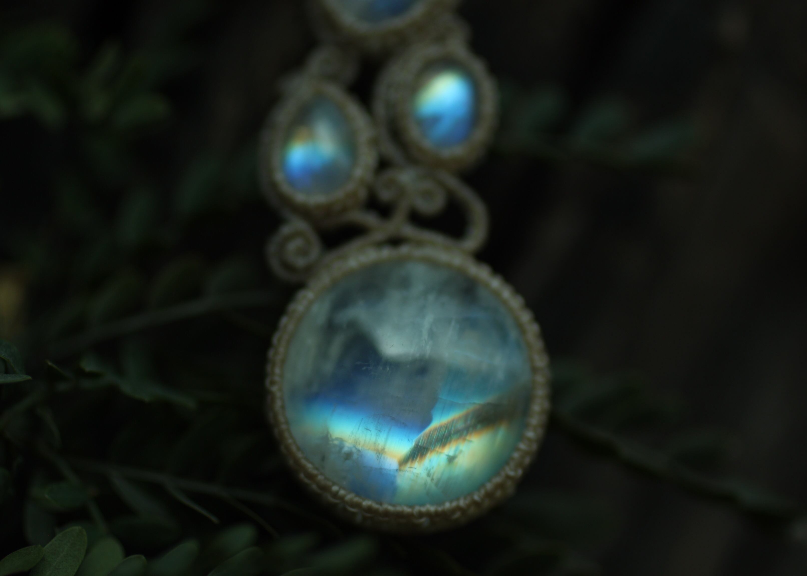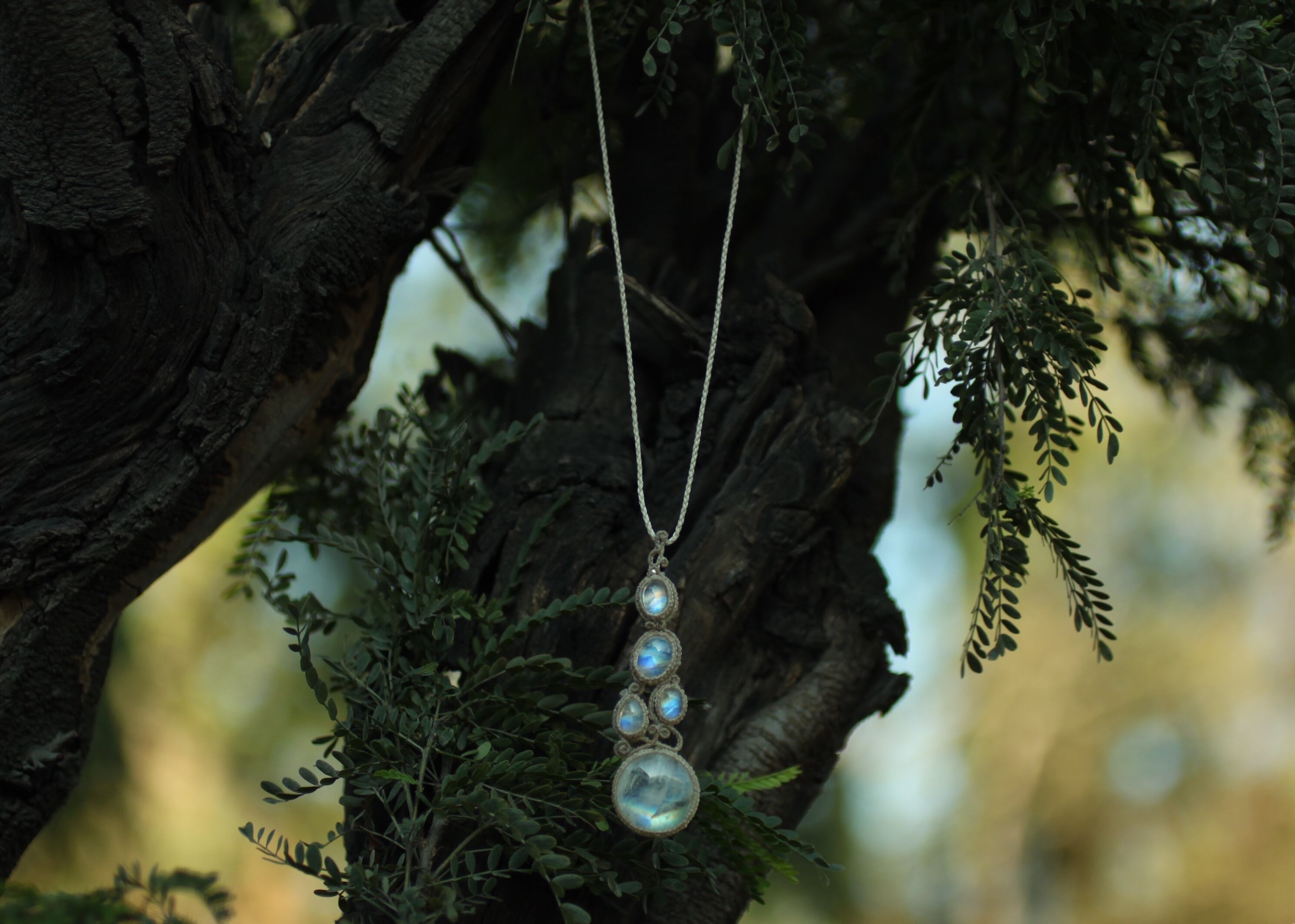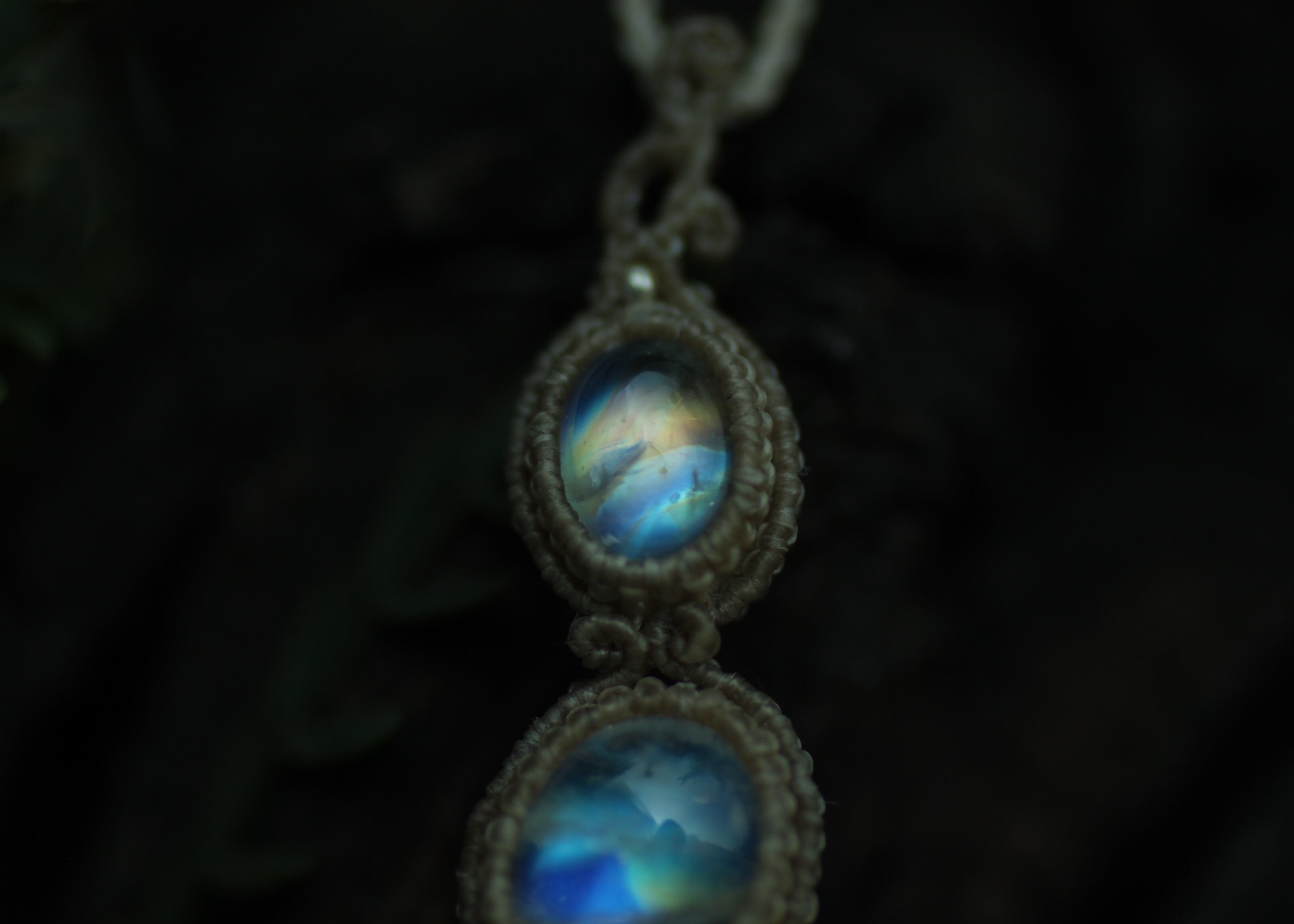 思い切って贅沢に、レインボームーンストーンのみをあしらったネックレスへと仕上げました。