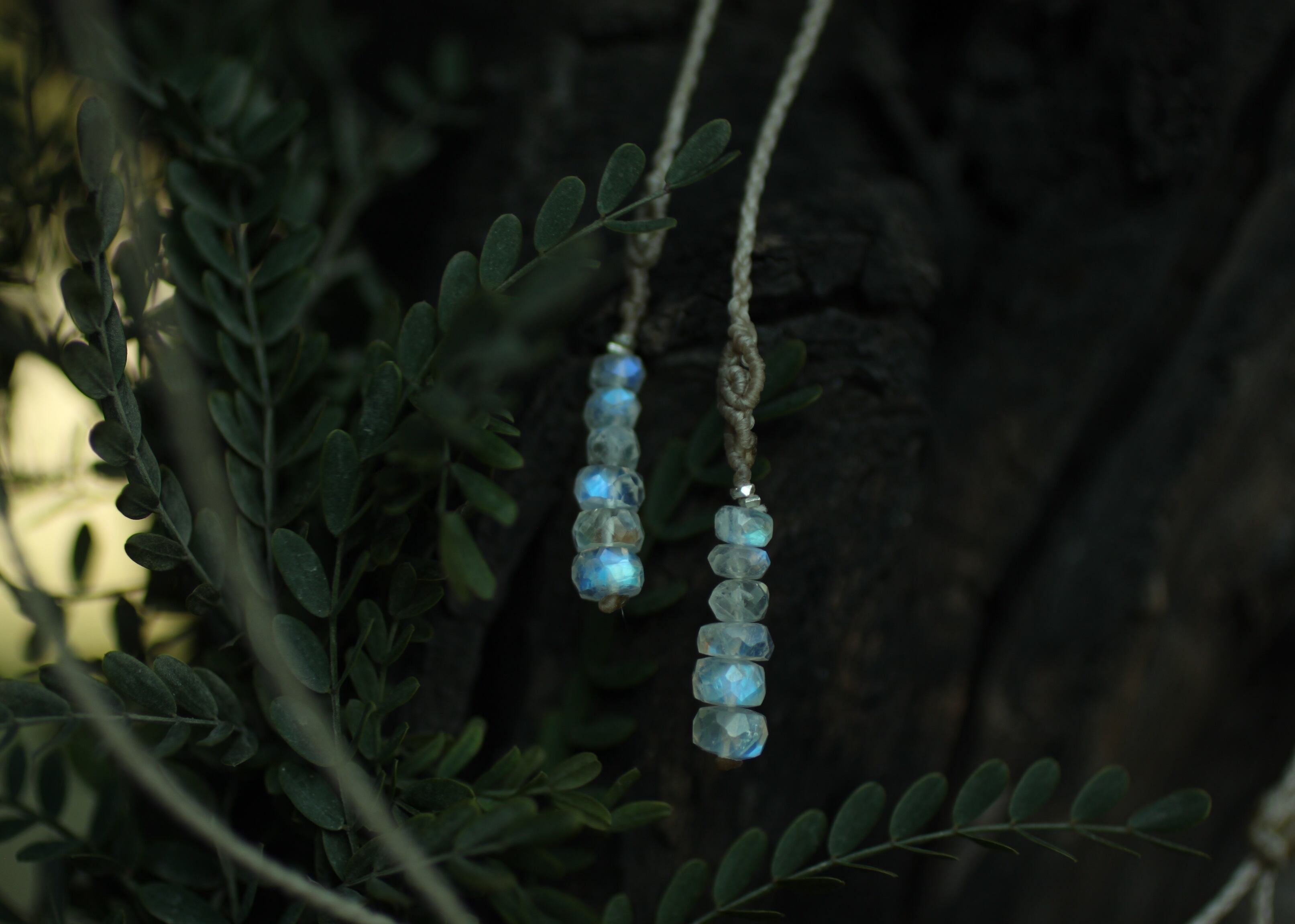 ひもの最後に . . . . . ムーンストーン 、シルバー925ビーズ 使用
