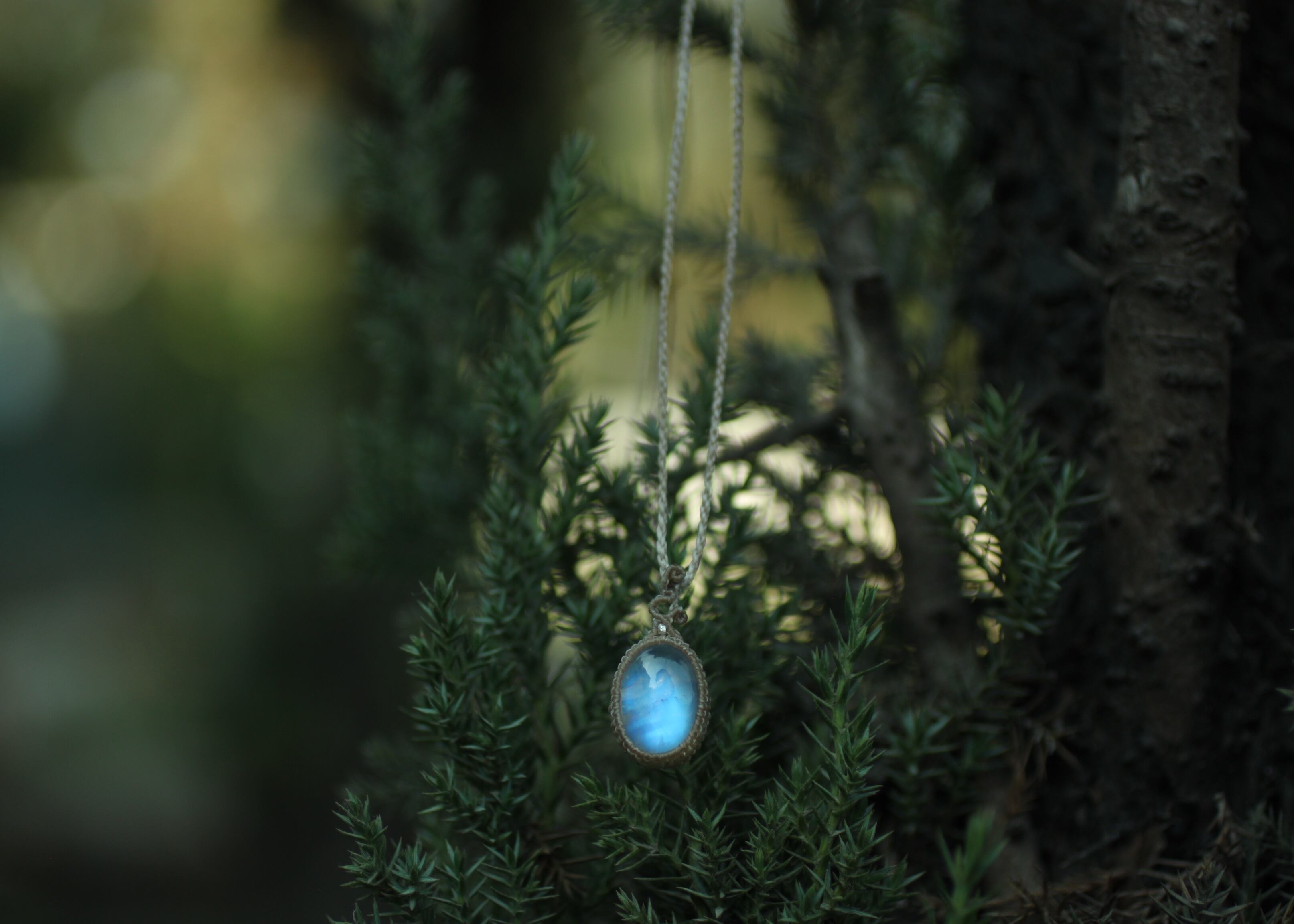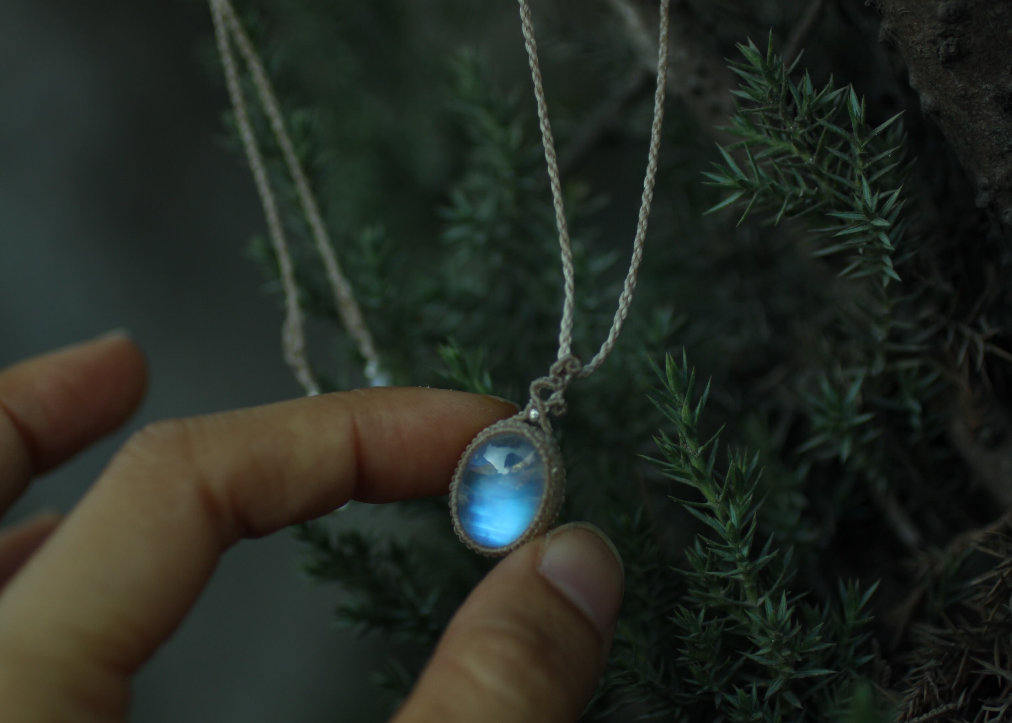 ひもの最後に . . . . . ムーンストーン 、シルバー925ビーズ 使用