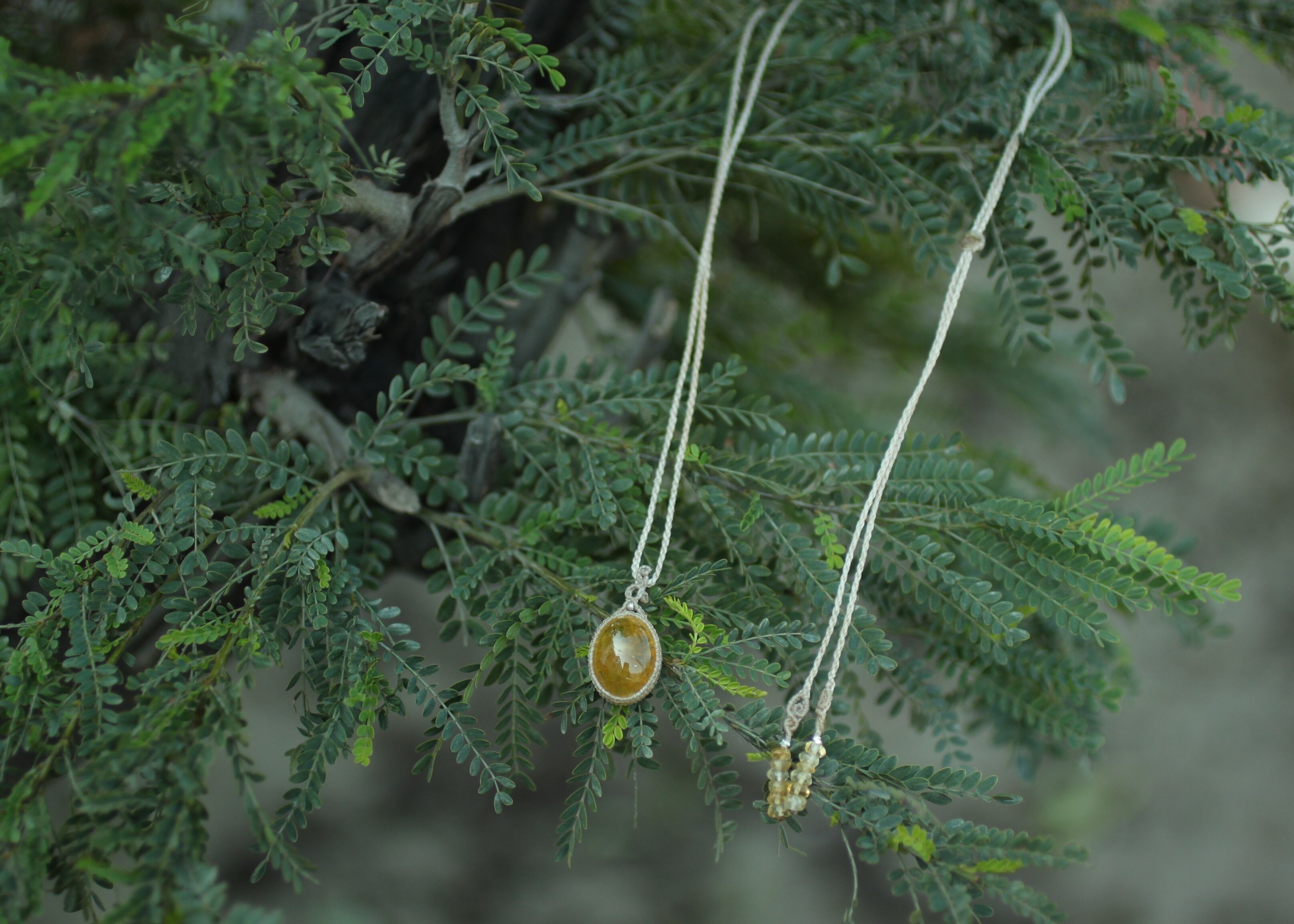 ※ 天然石を包むコードを始めトップ部分に使用したマクラメ編みコードは、