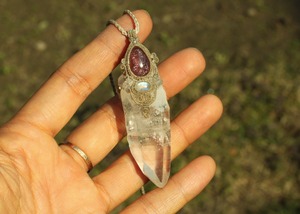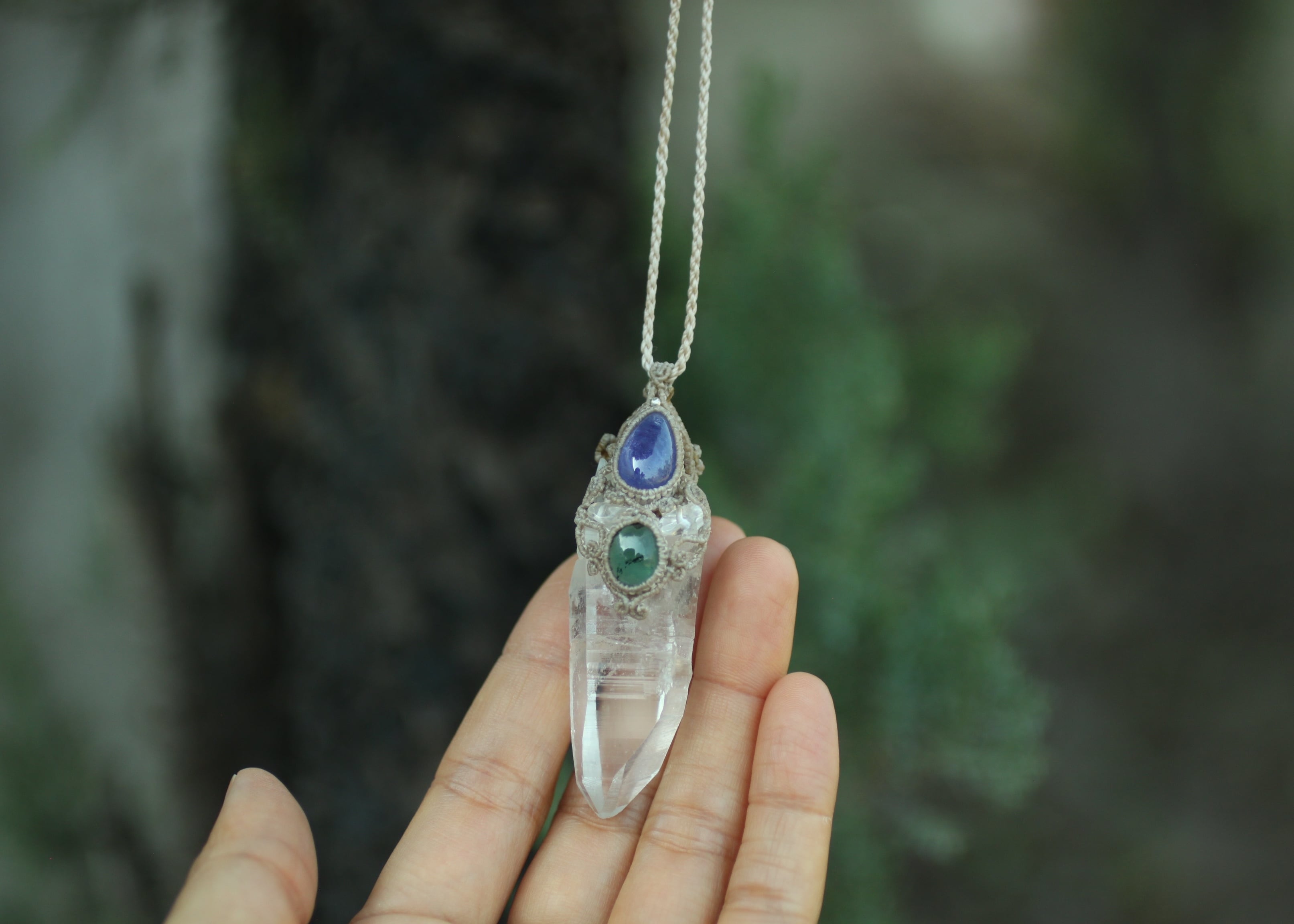 ひもの最後に . . . . . ピンク、グリーントルマリン、 アイオライト、水晶、シルバー925 ビーズ 使用