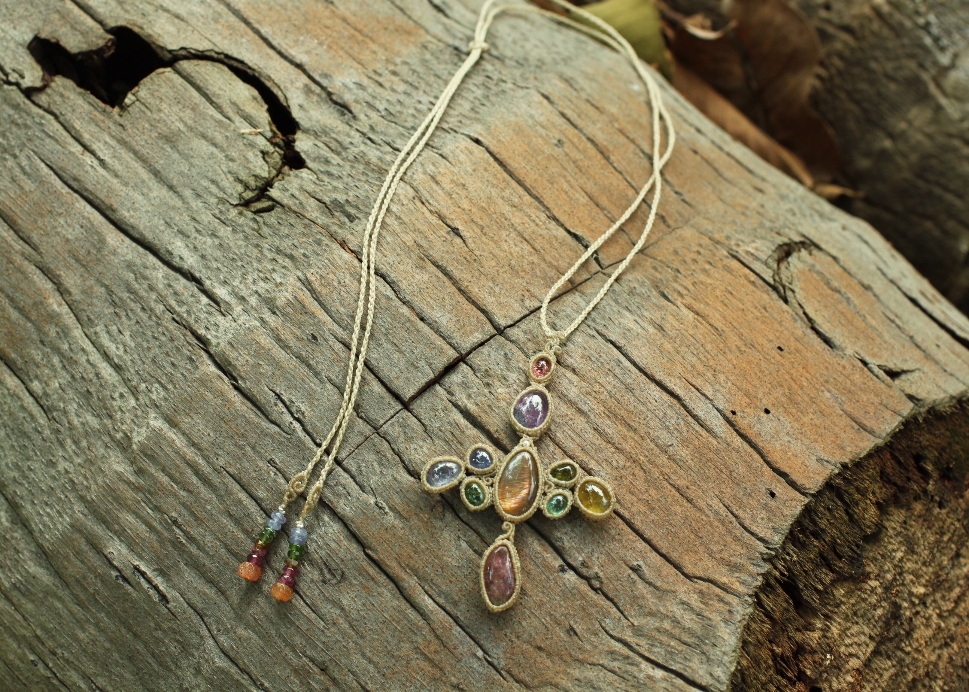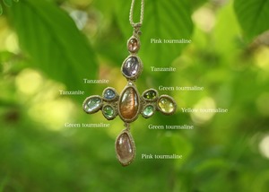 ひもの最後に . . . . . サンストーン、タンザナイト、トルマリン 、シルバー925ビーズ 使用