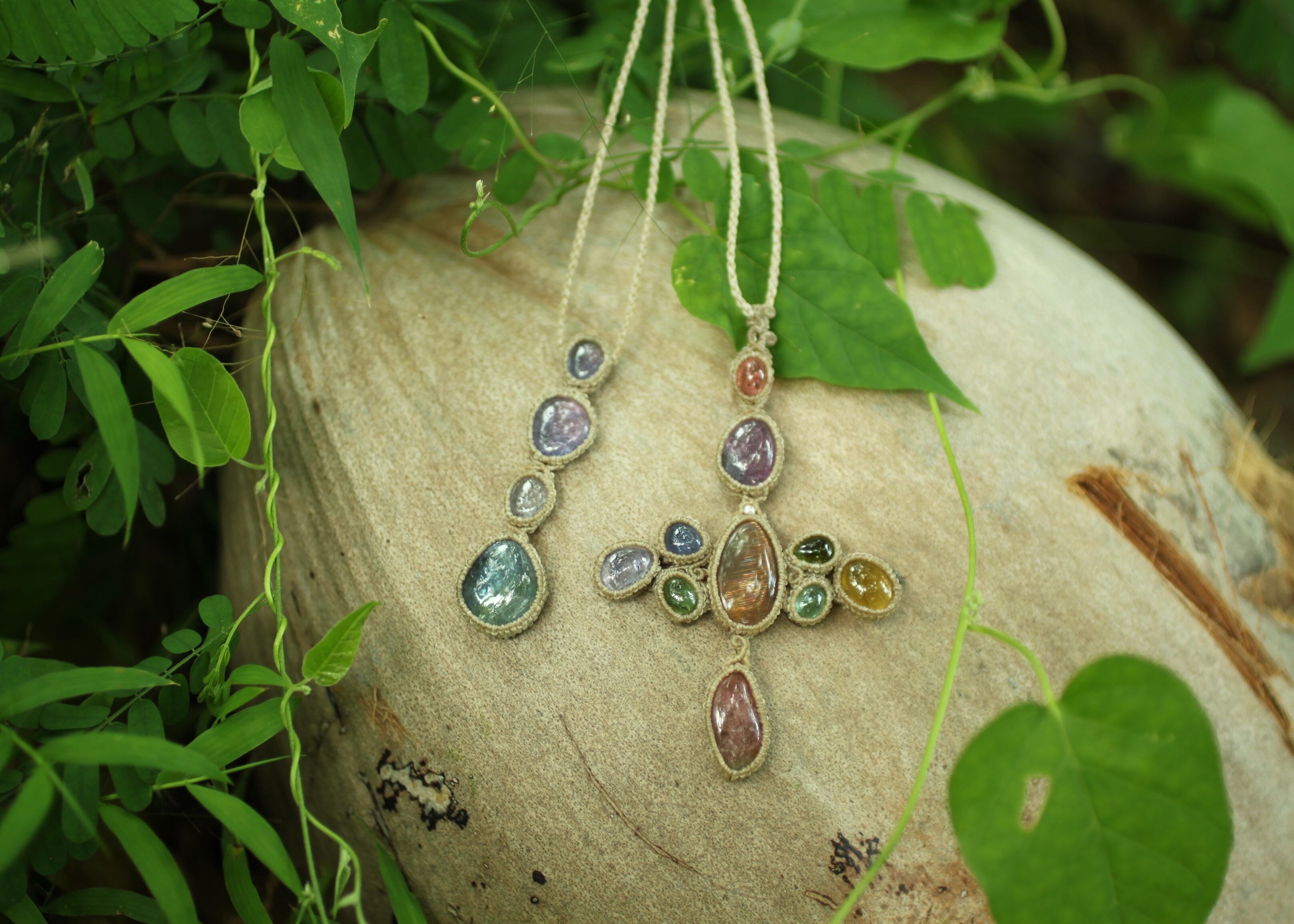 ※ 天然石を包むコードを始めトップ部分に使用したマクラメ編みコードは、