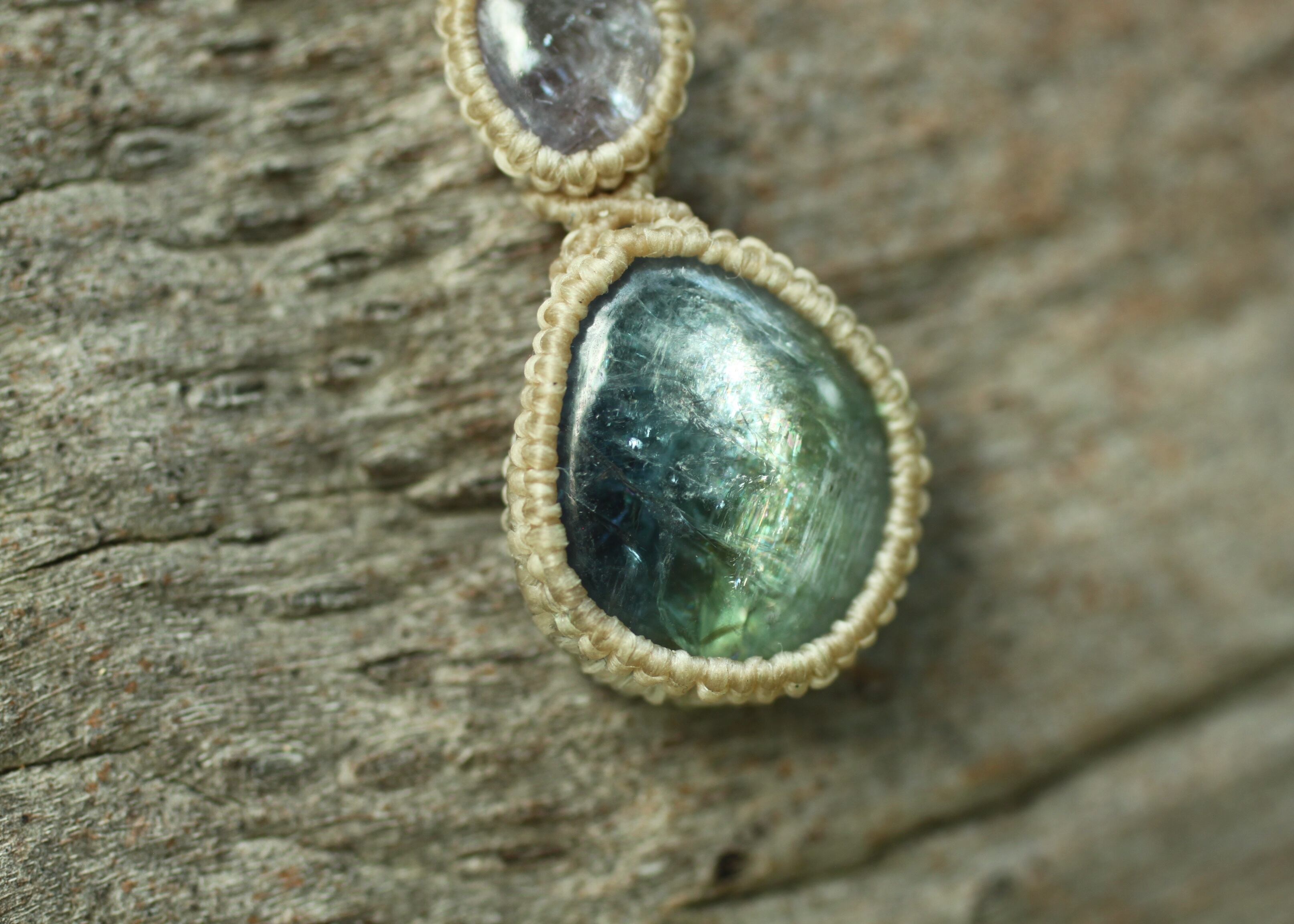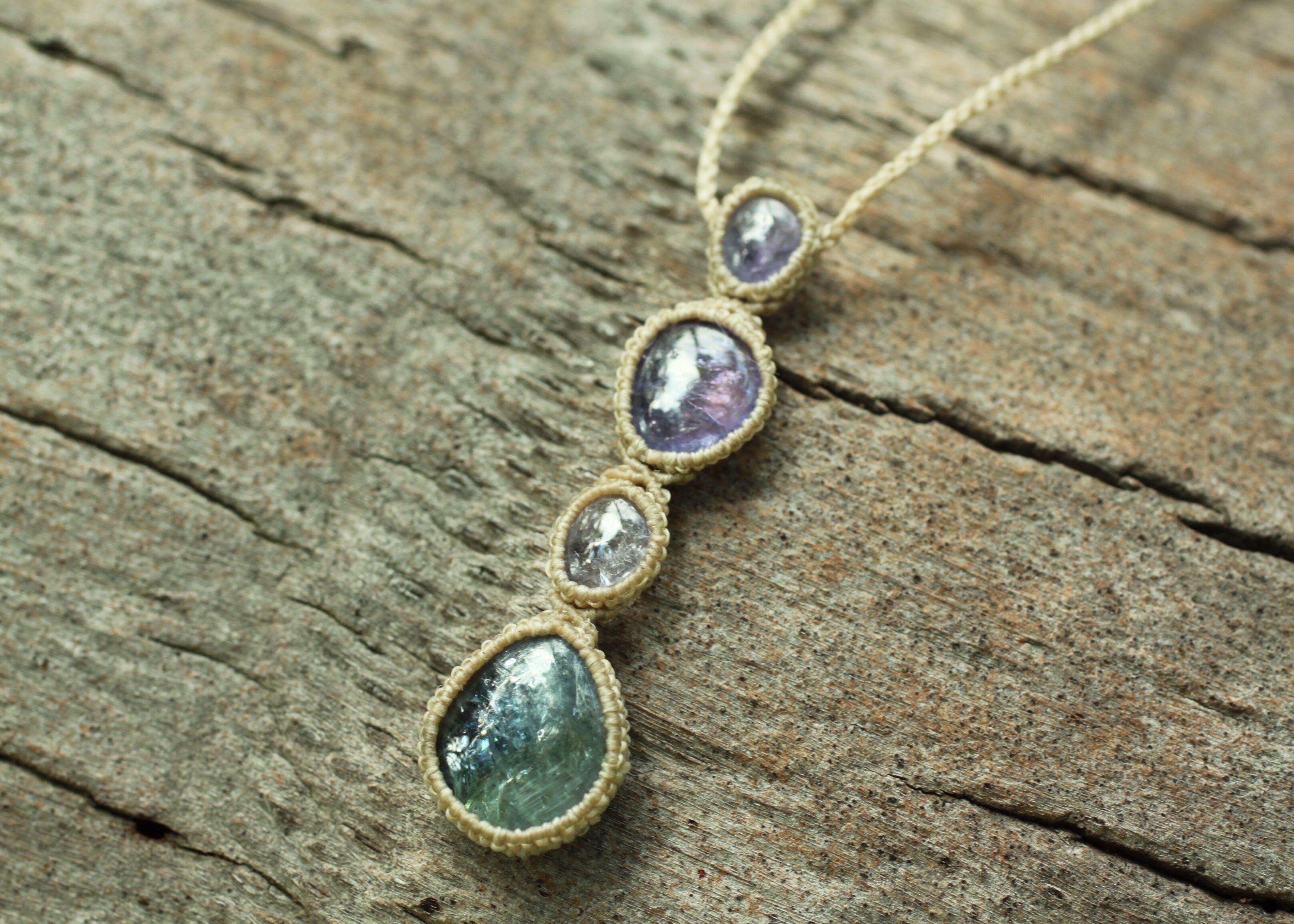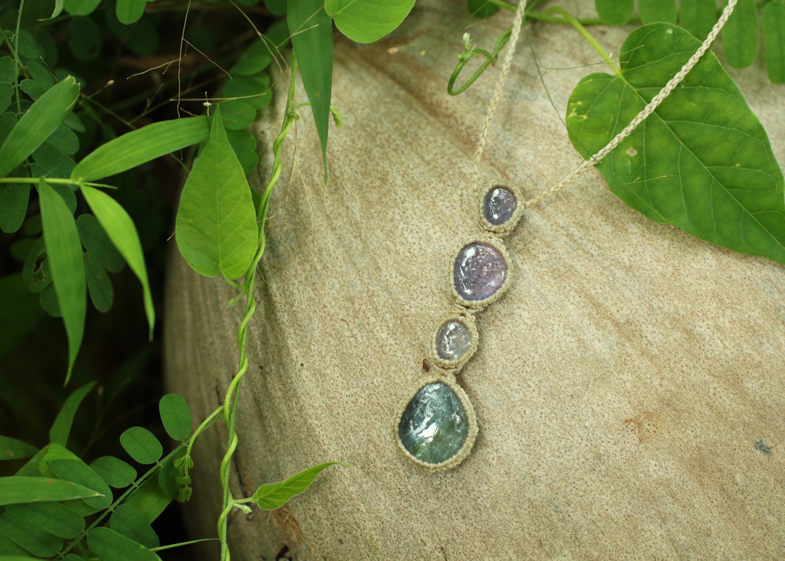 ※ 天然石を包むコードを始めトップ部分に使用したマクラメ編みコードは、