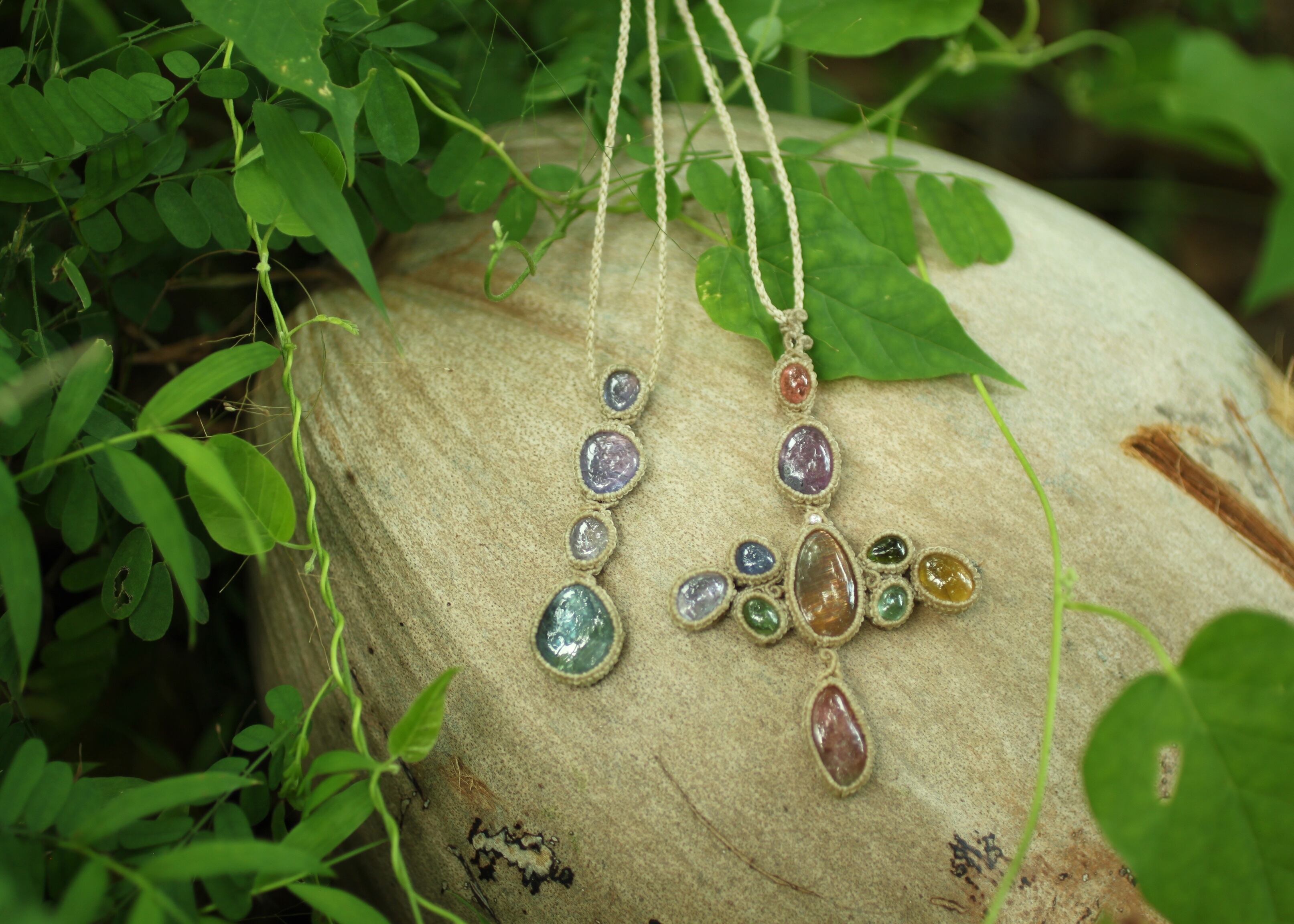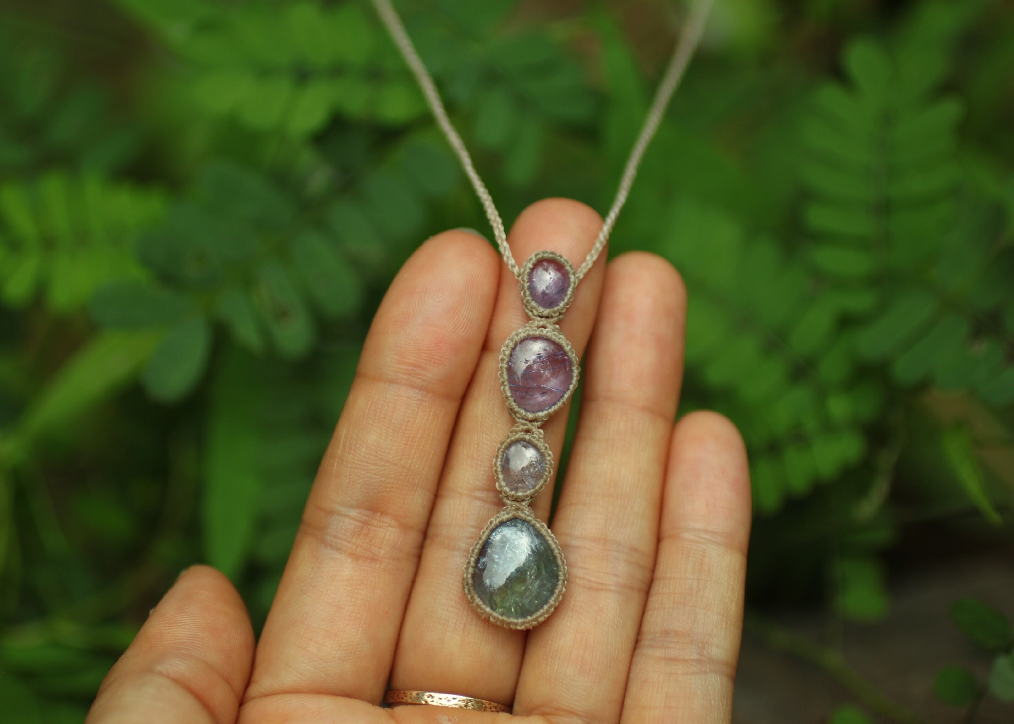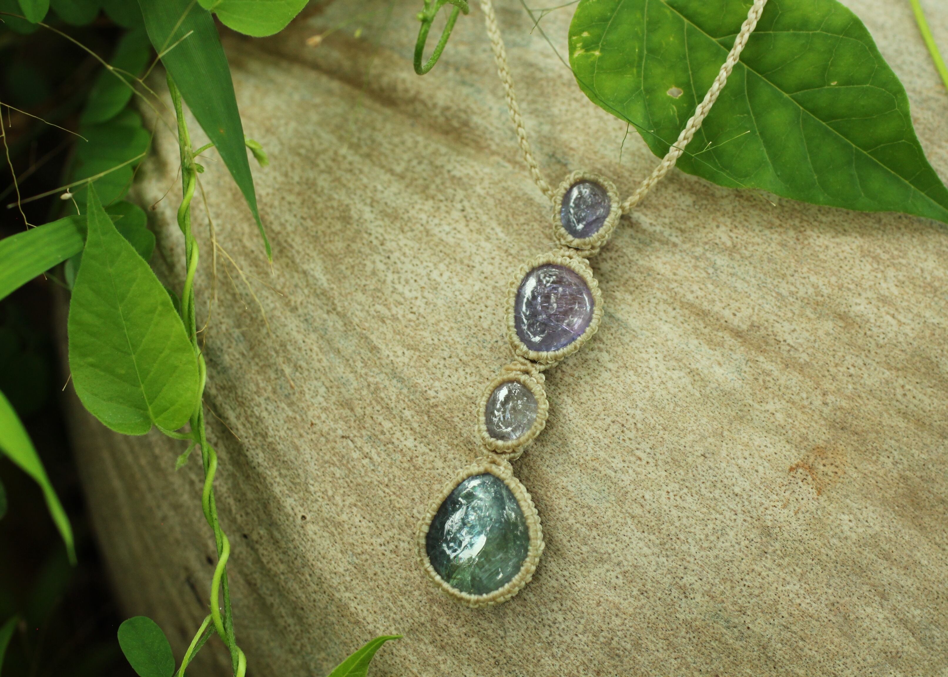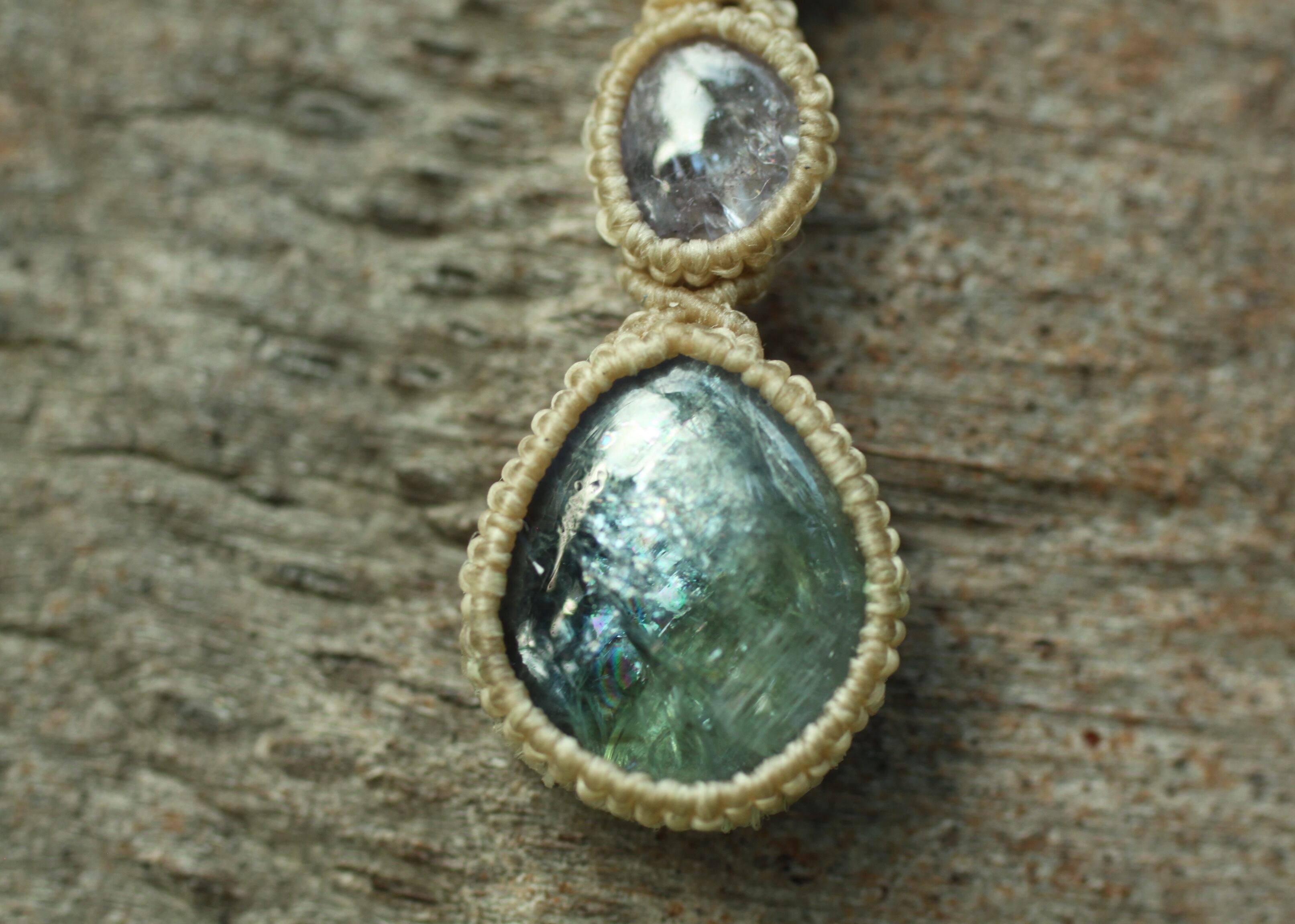 ※ 天然石を包むコードを始めトップ部分に使用したマクラメ編みコードは、