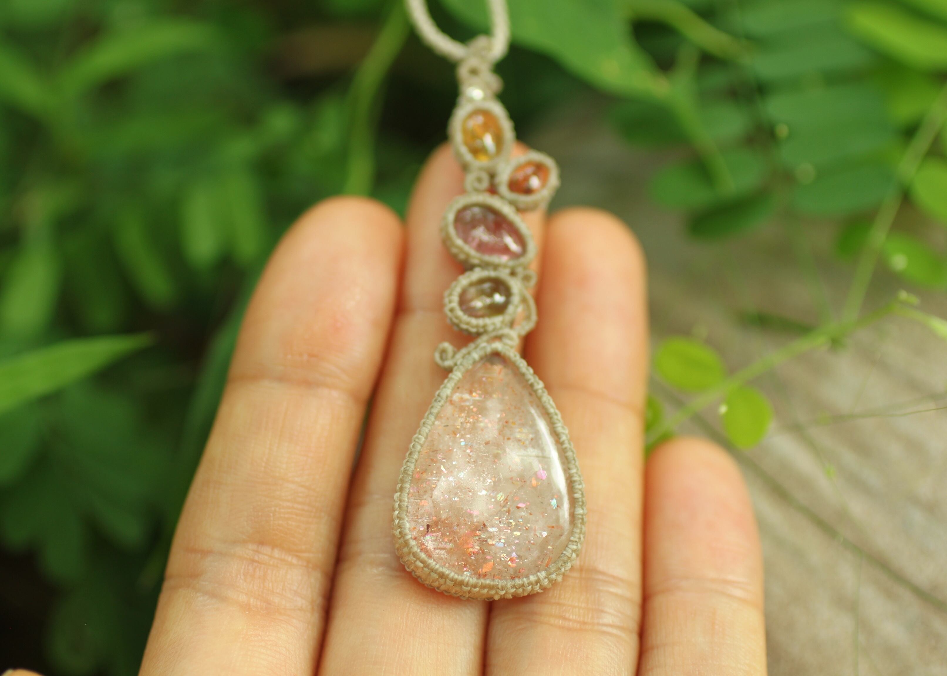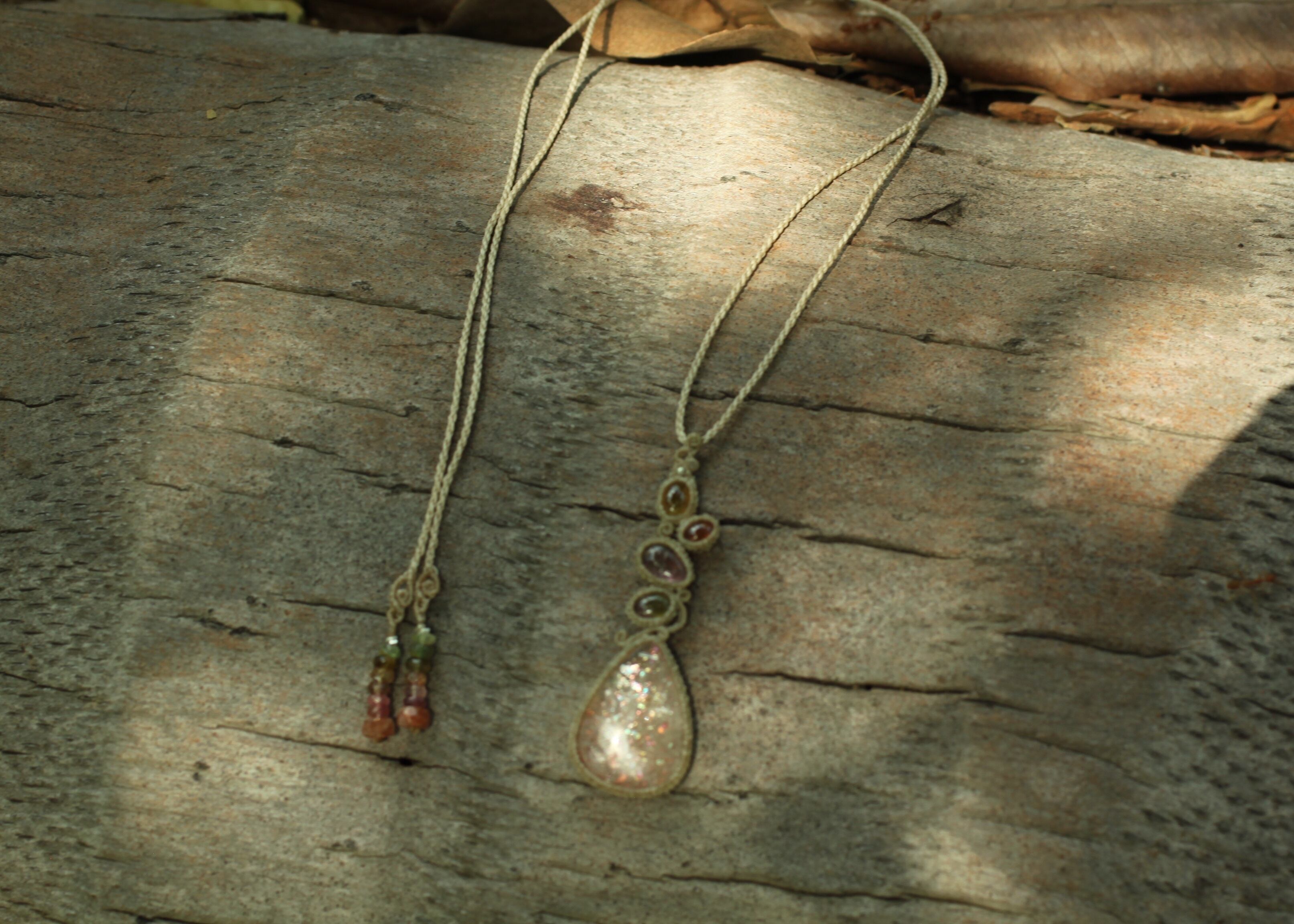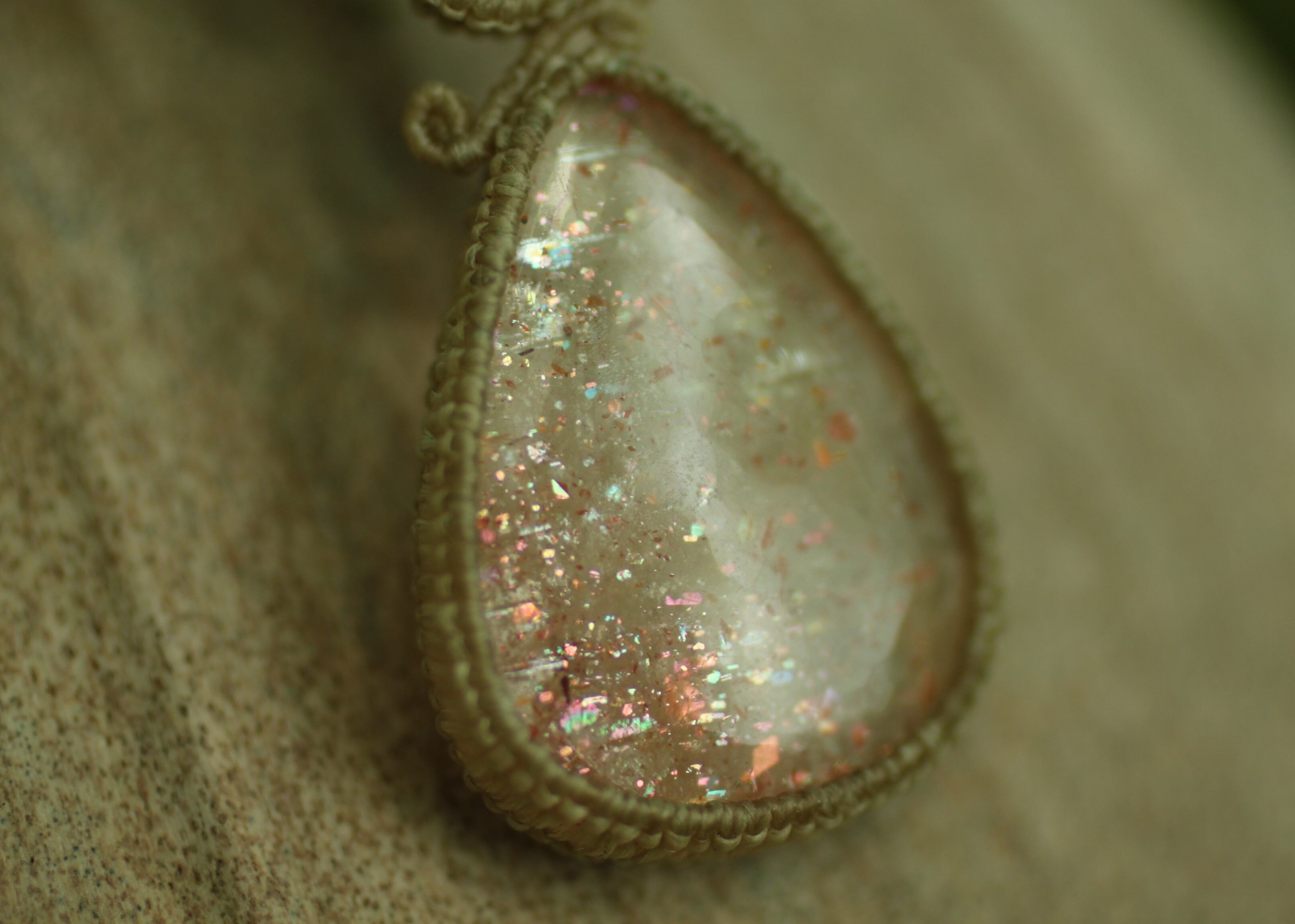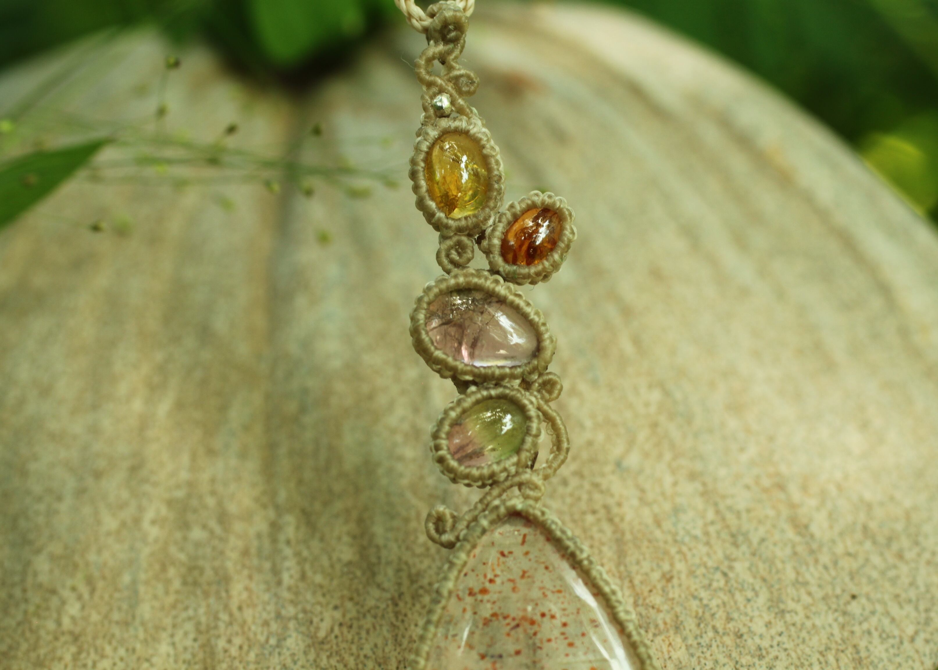 ※ 天然石を包むコードを始めトップ部分に使用したマクラメ編みコードは、