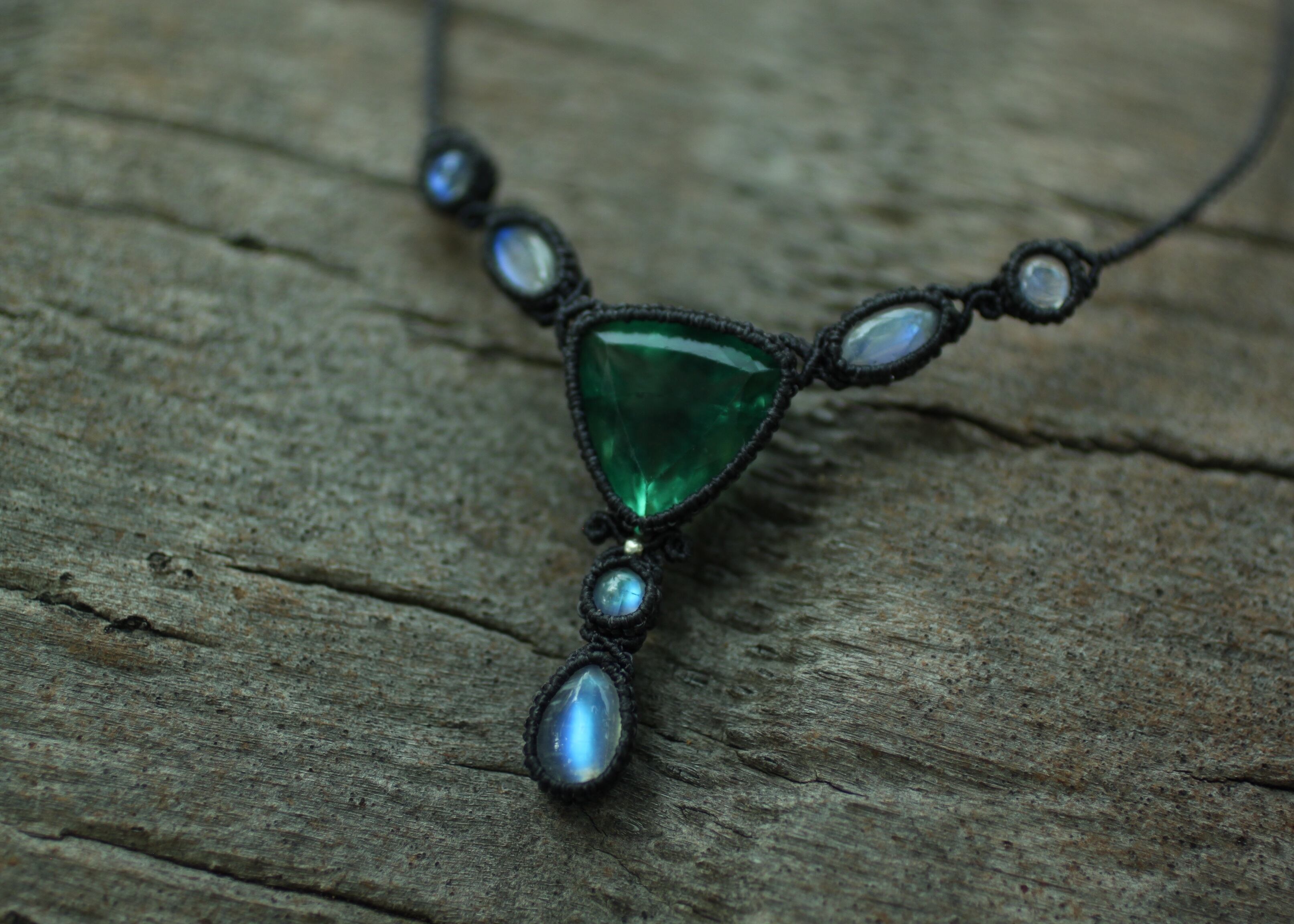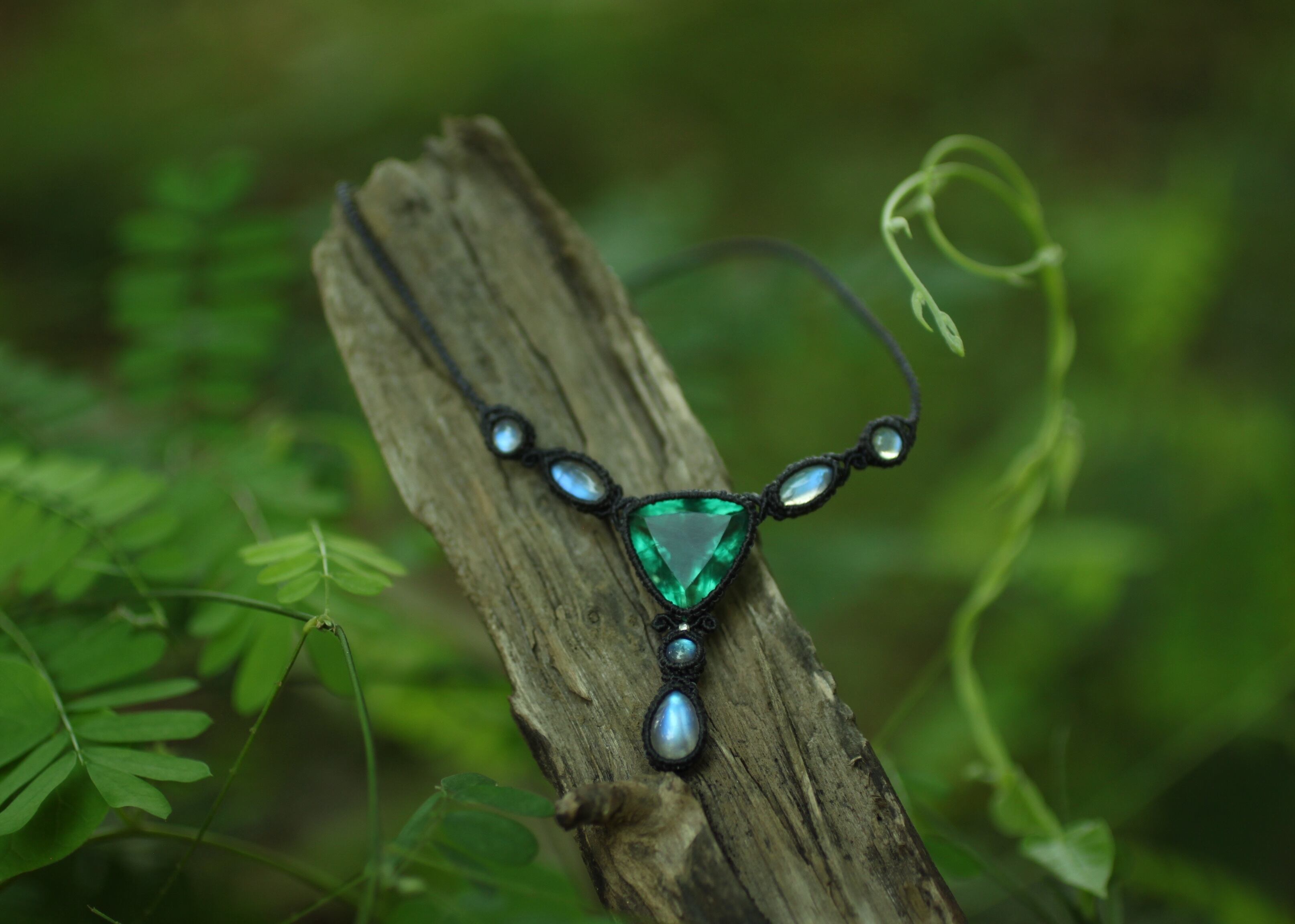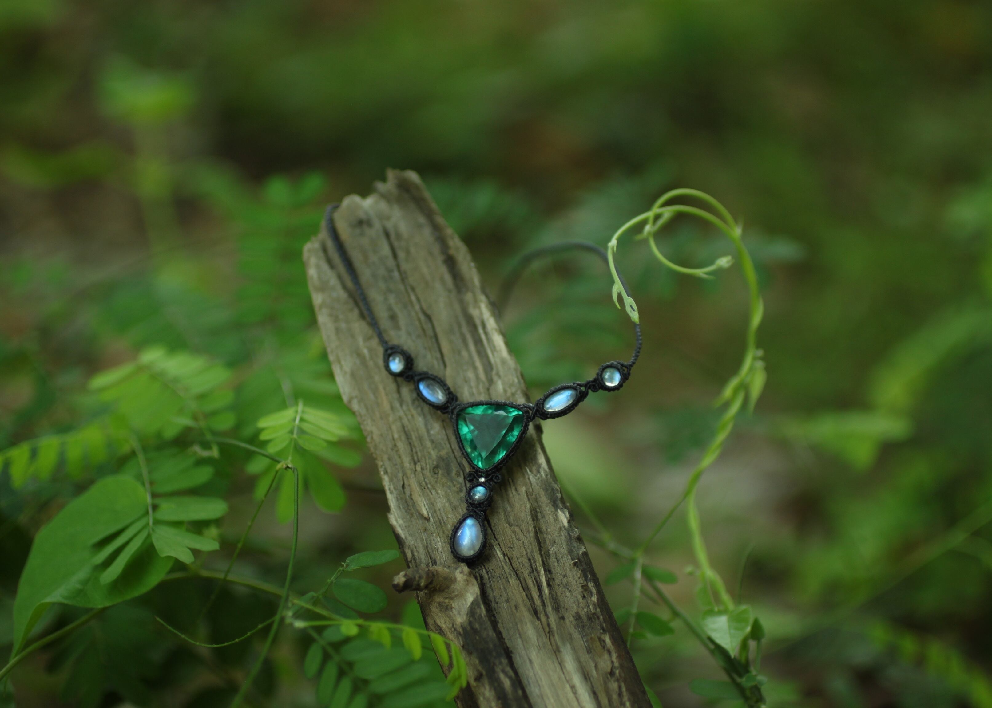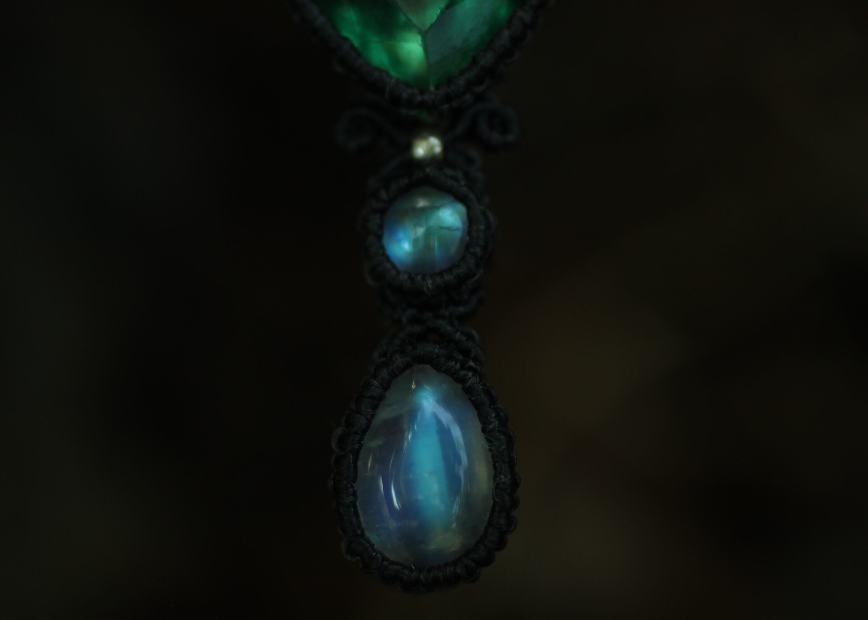 ※ 天然石を包むコードを始めトップ部分に使用したマクラメ編みコードは、