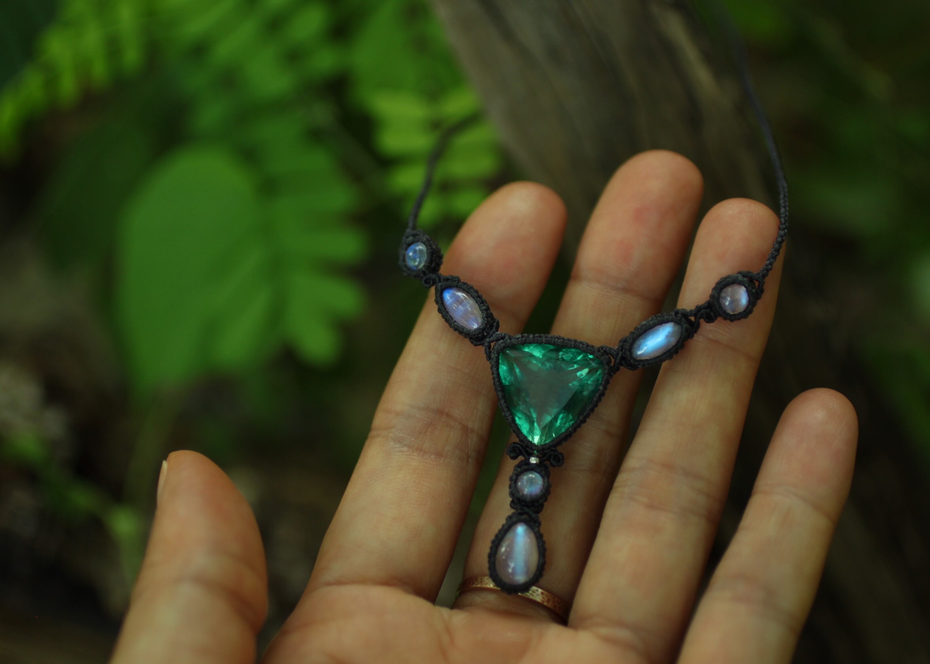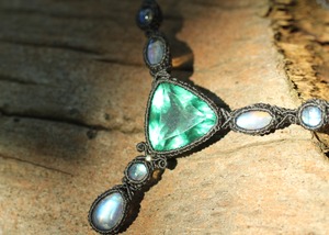 三方向に透明度の高い小さなブルームーンストーンをあしらい、