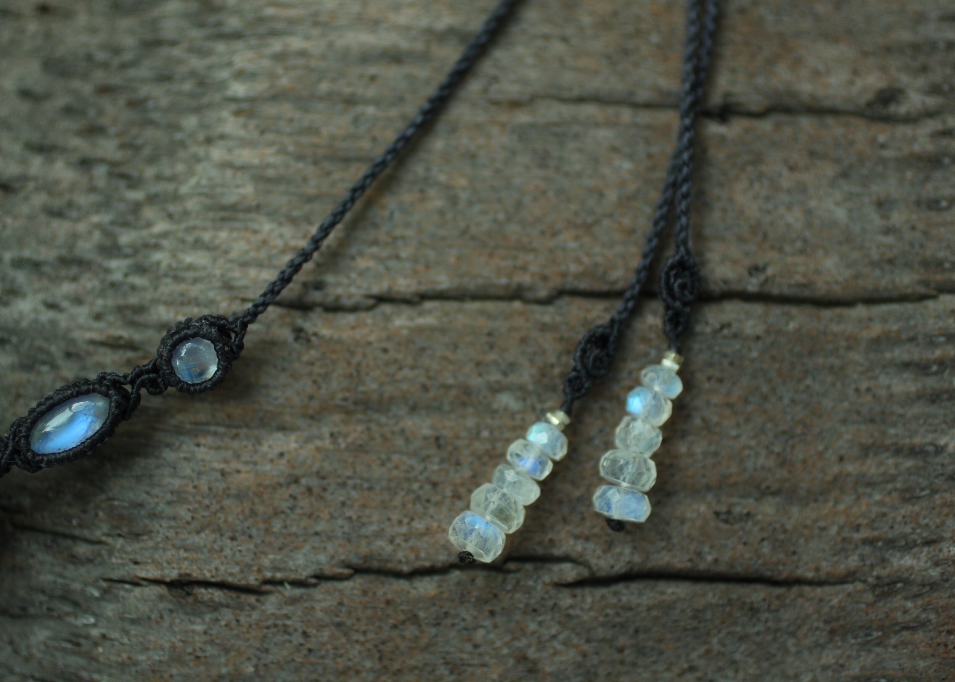手縫い糸ほどの細いコードを使い出来る限り天然石の表情と繊細な仕上がりを重視し時間をかけ丁寧に編みました。