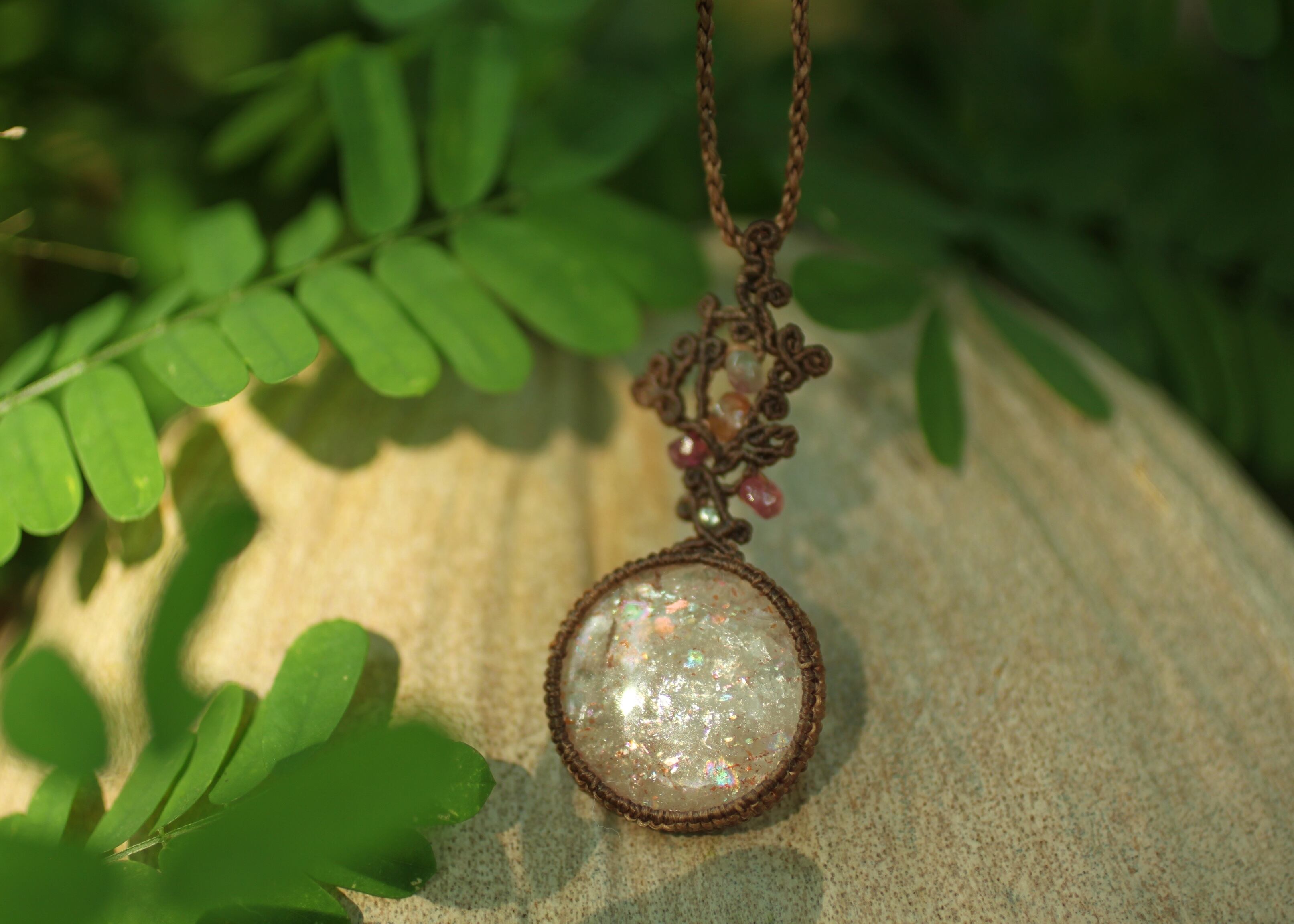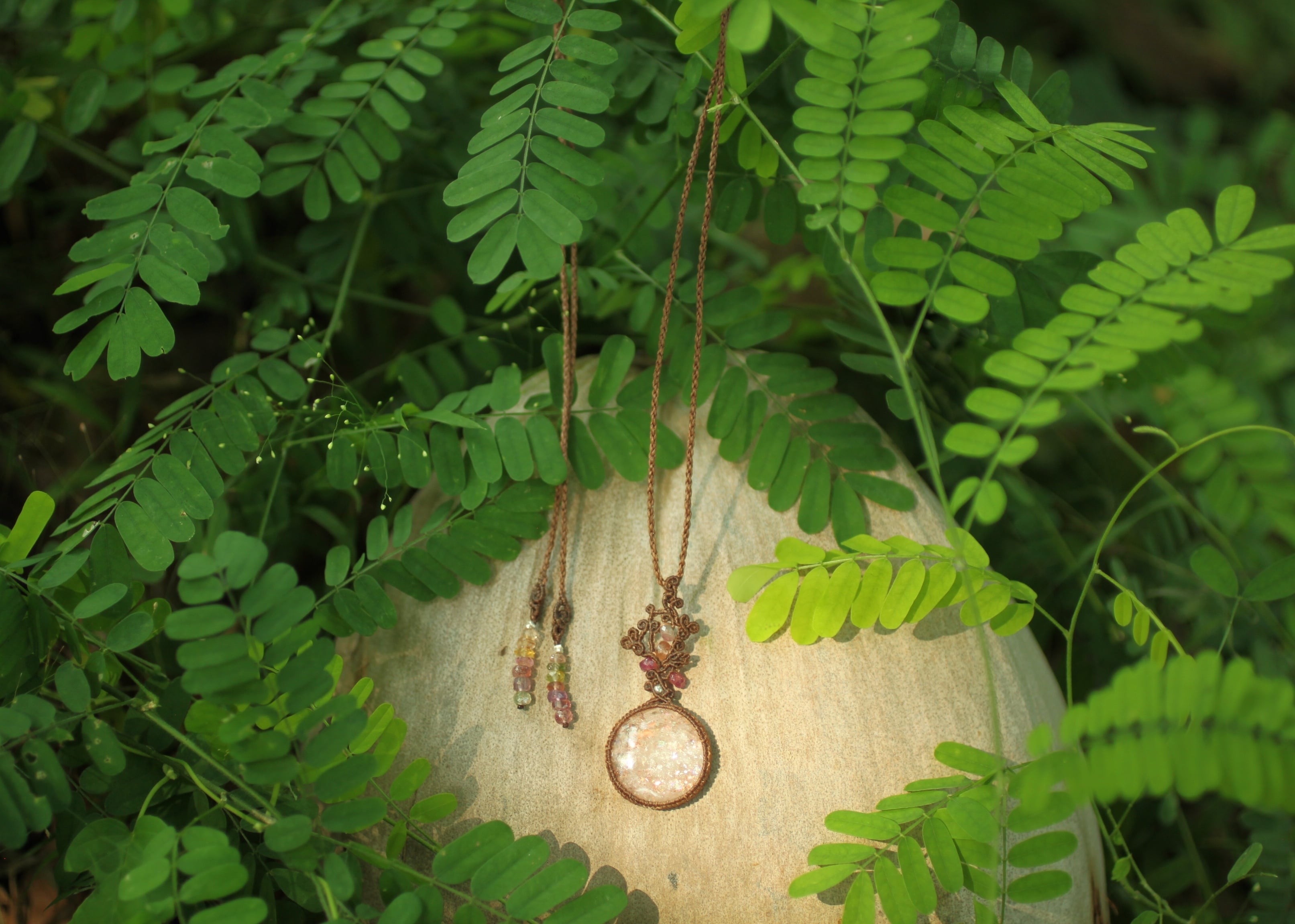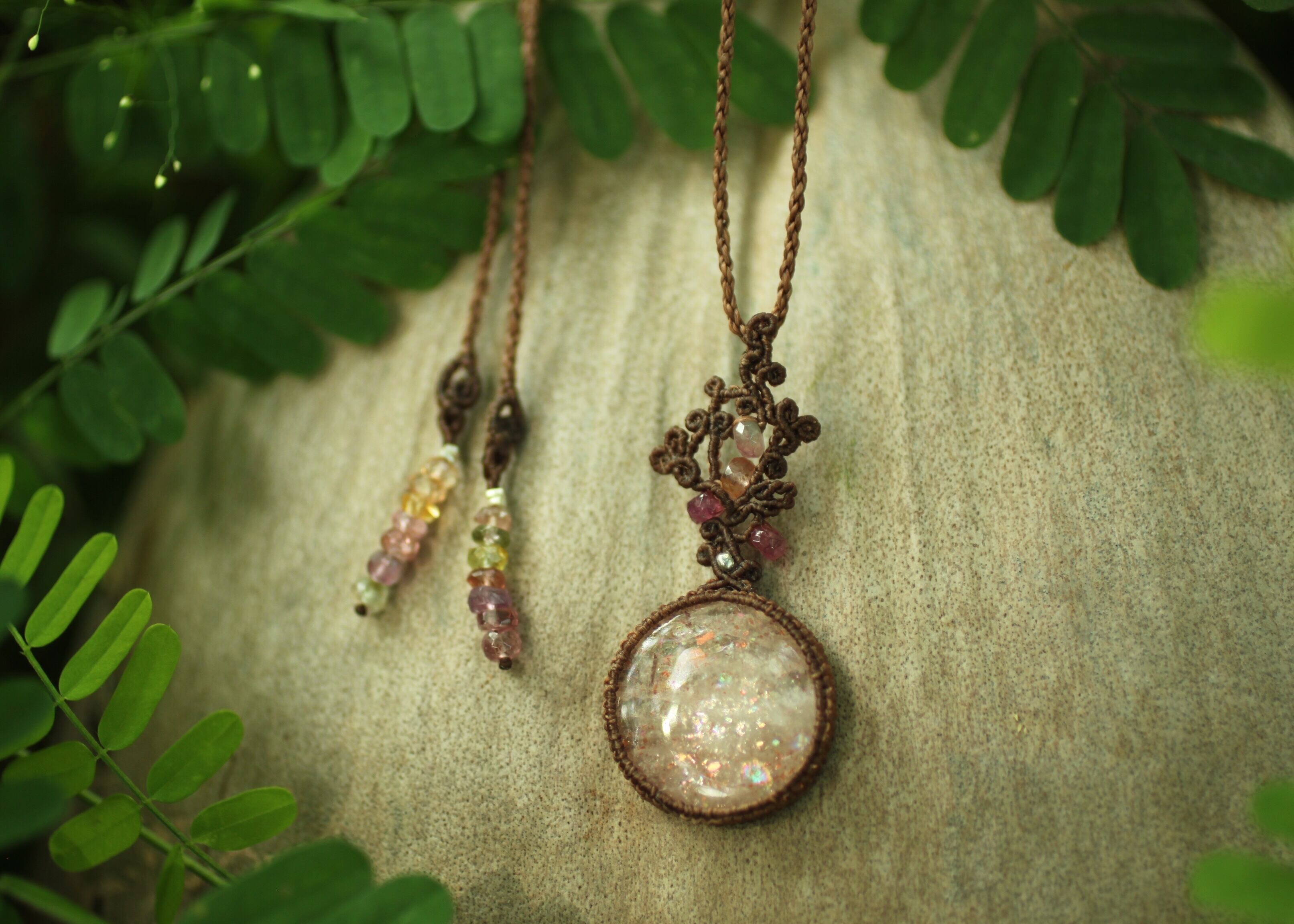 ※ 天然石を包むコードを始めトップ部分に使用したマクラメ編みコードは、