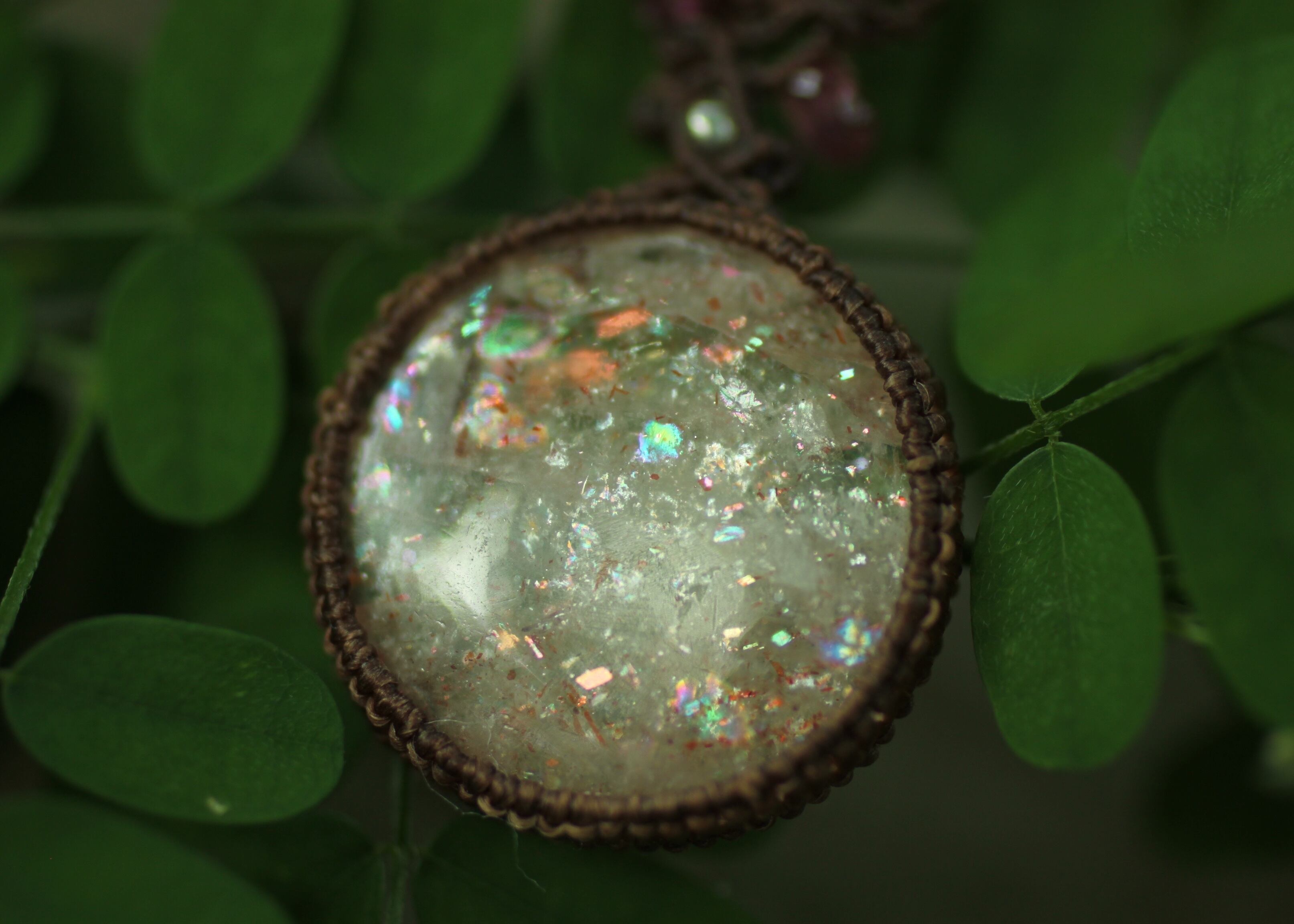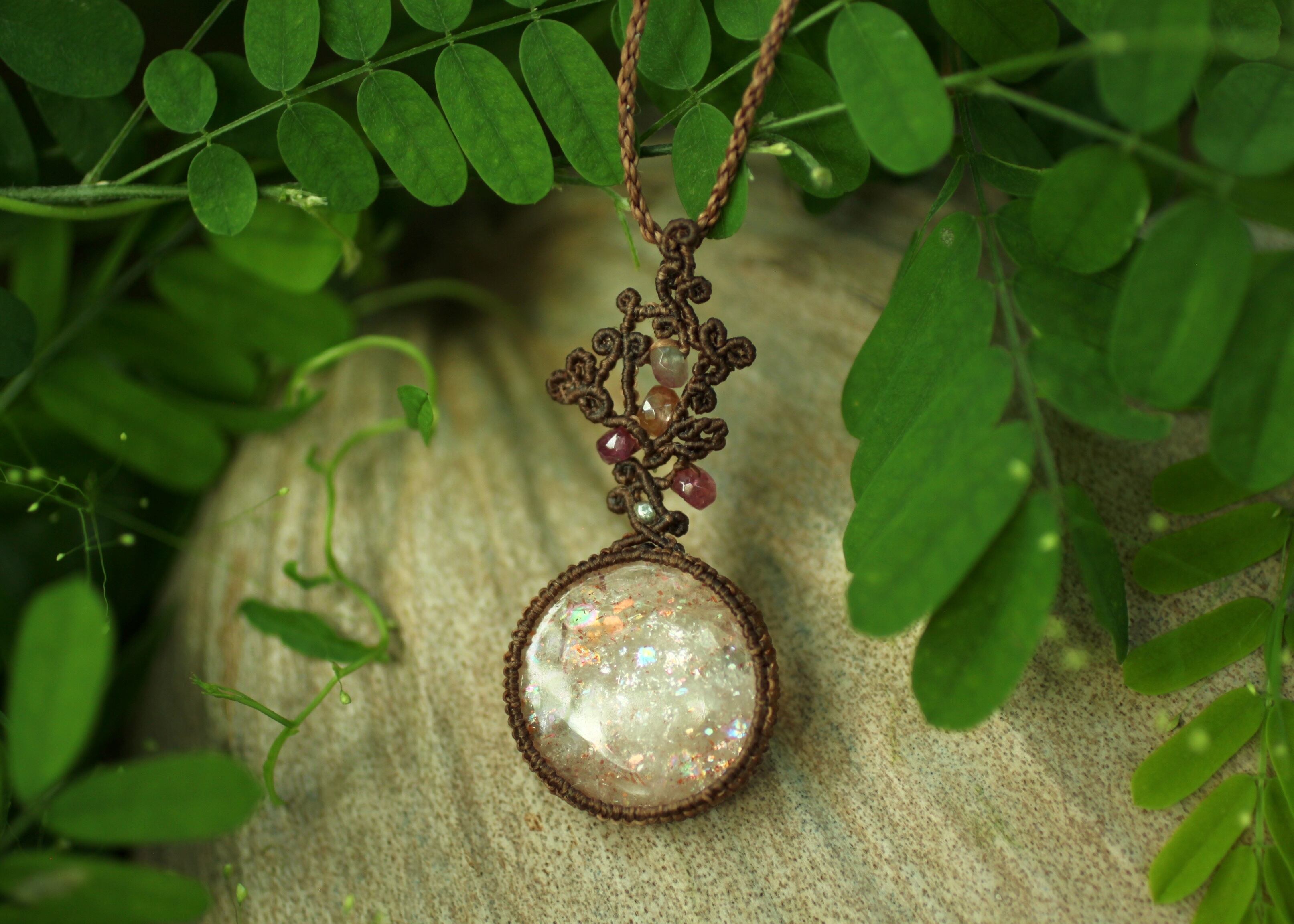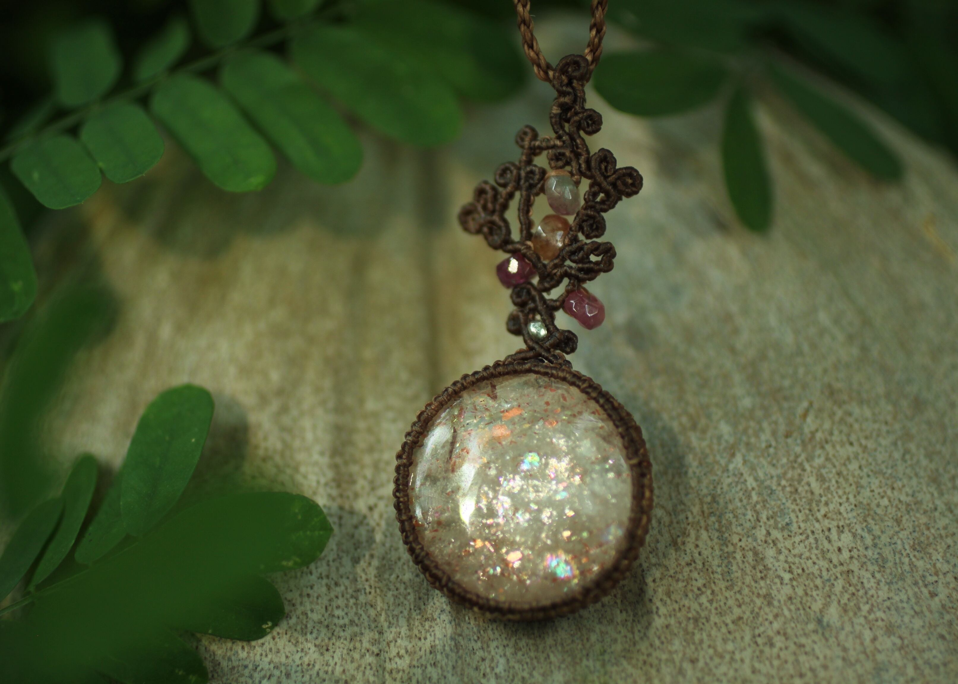 ※ 天然石を包むコードを始めトップ部分に使用したマクラメ編みコードは、