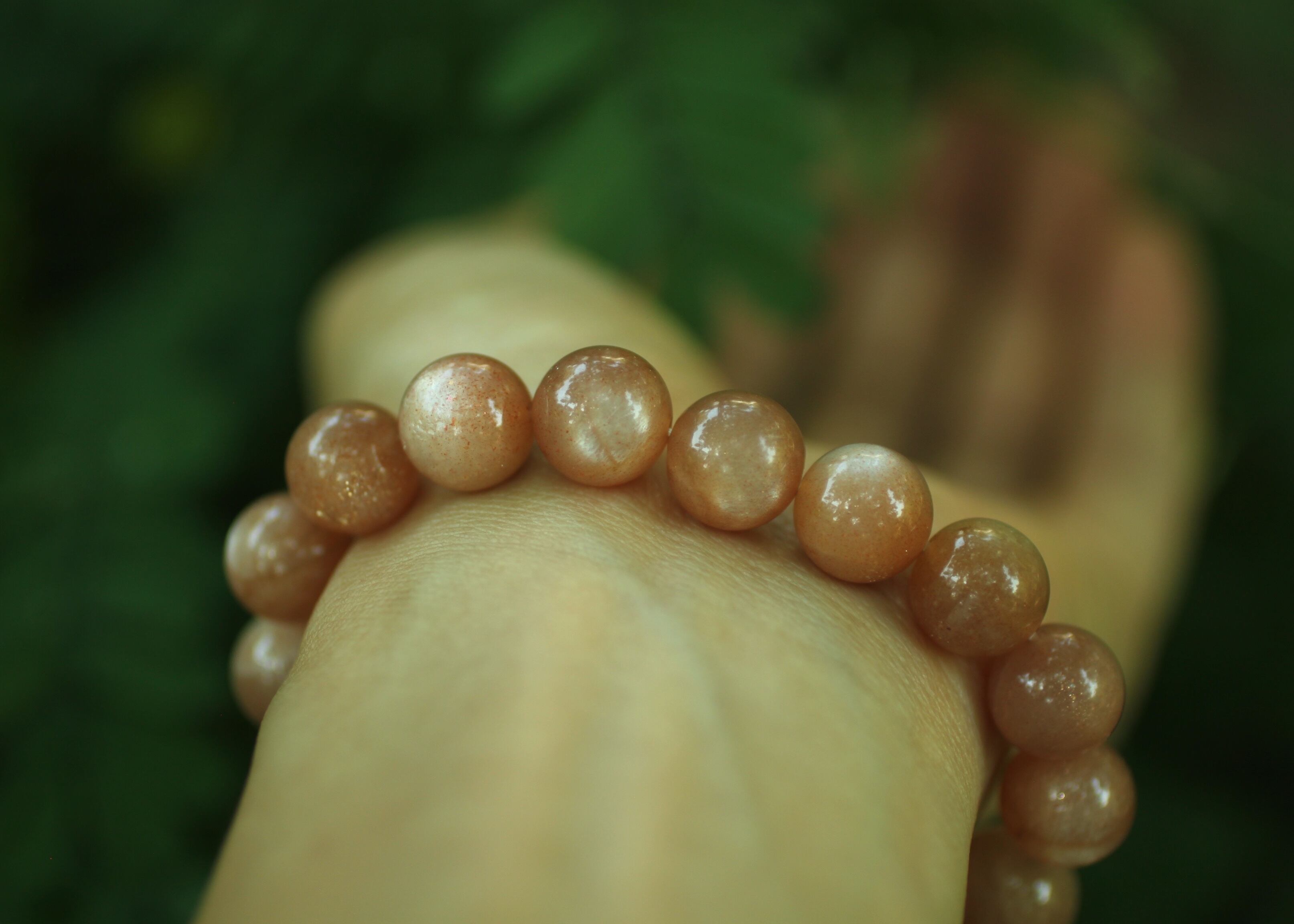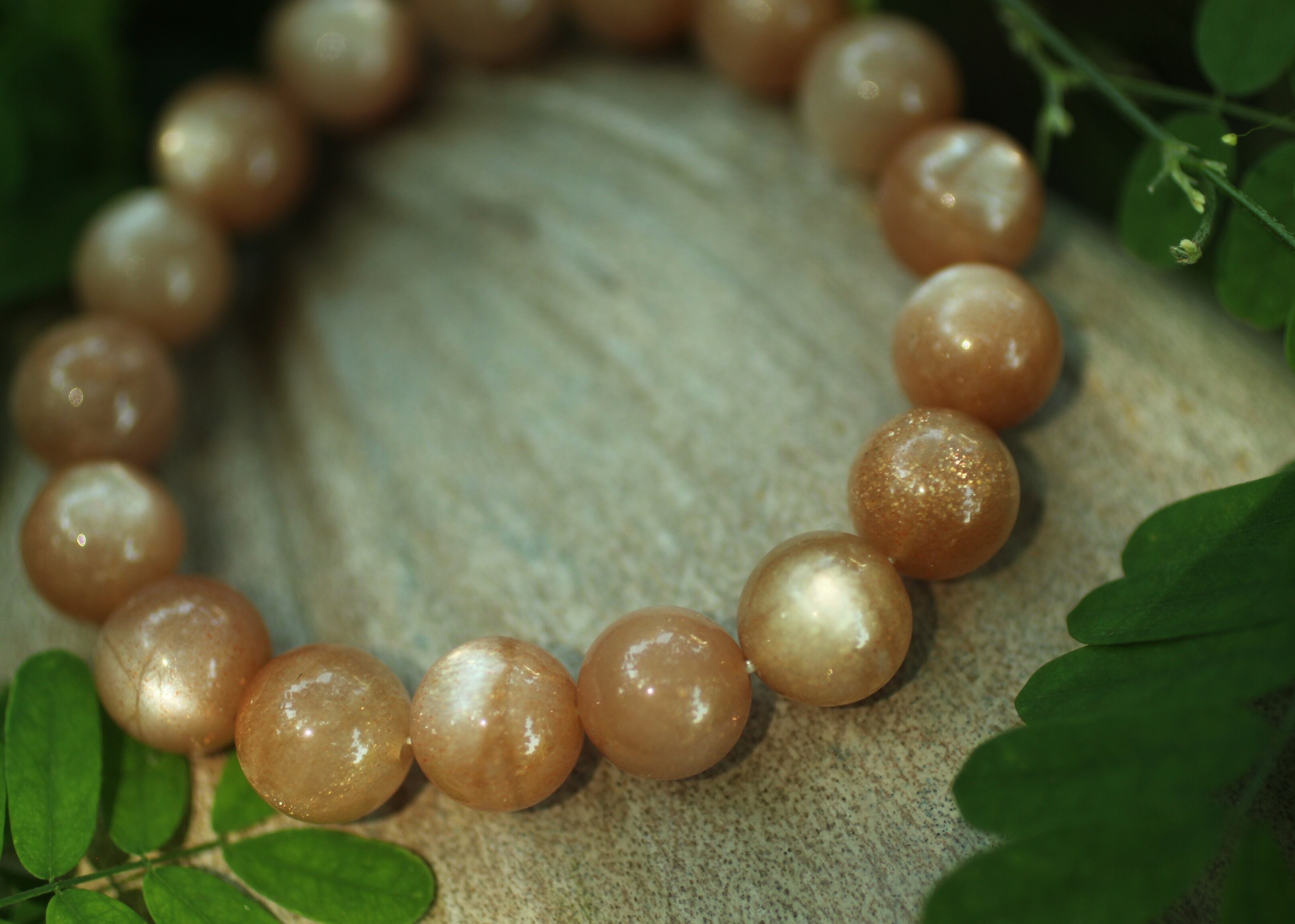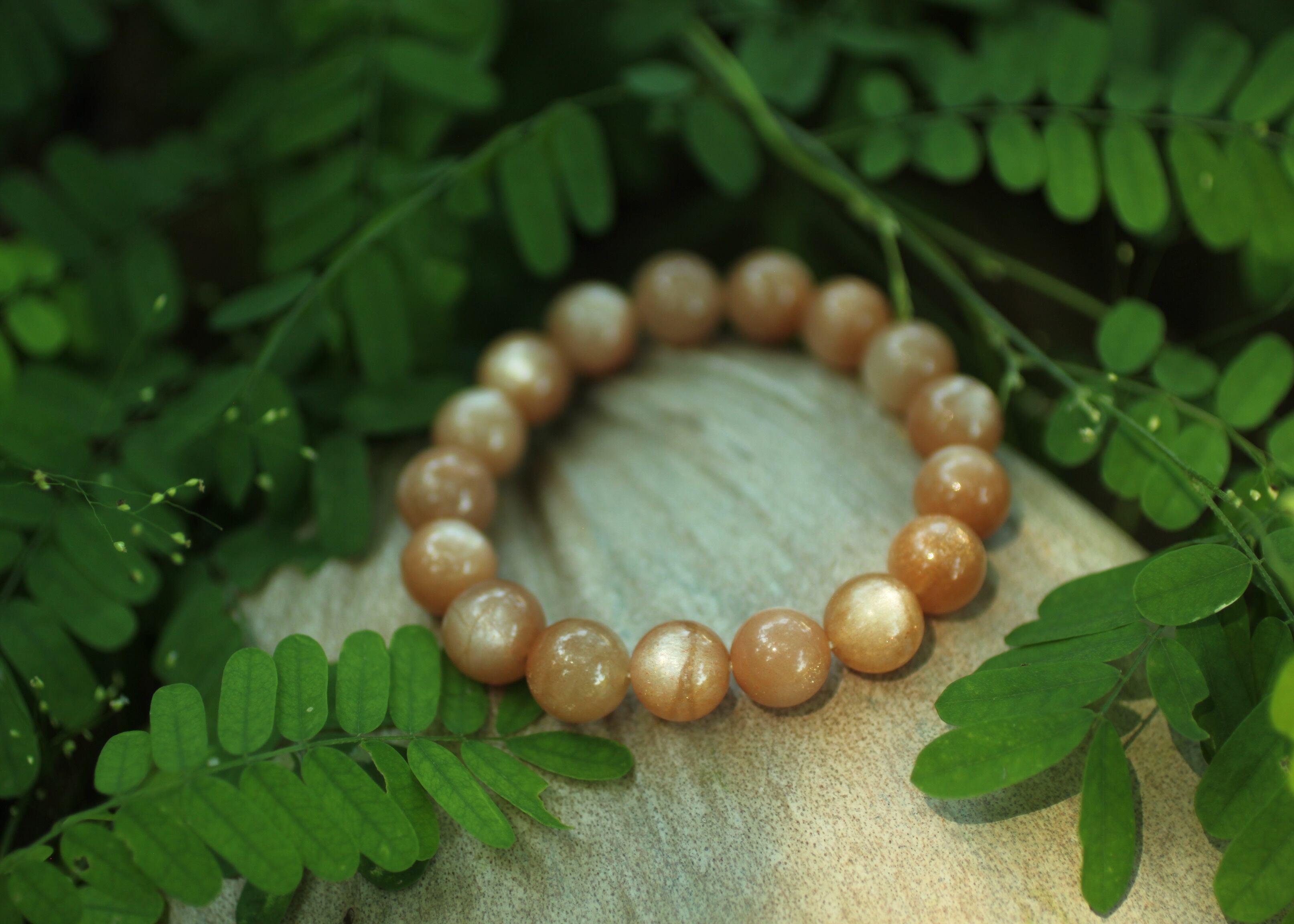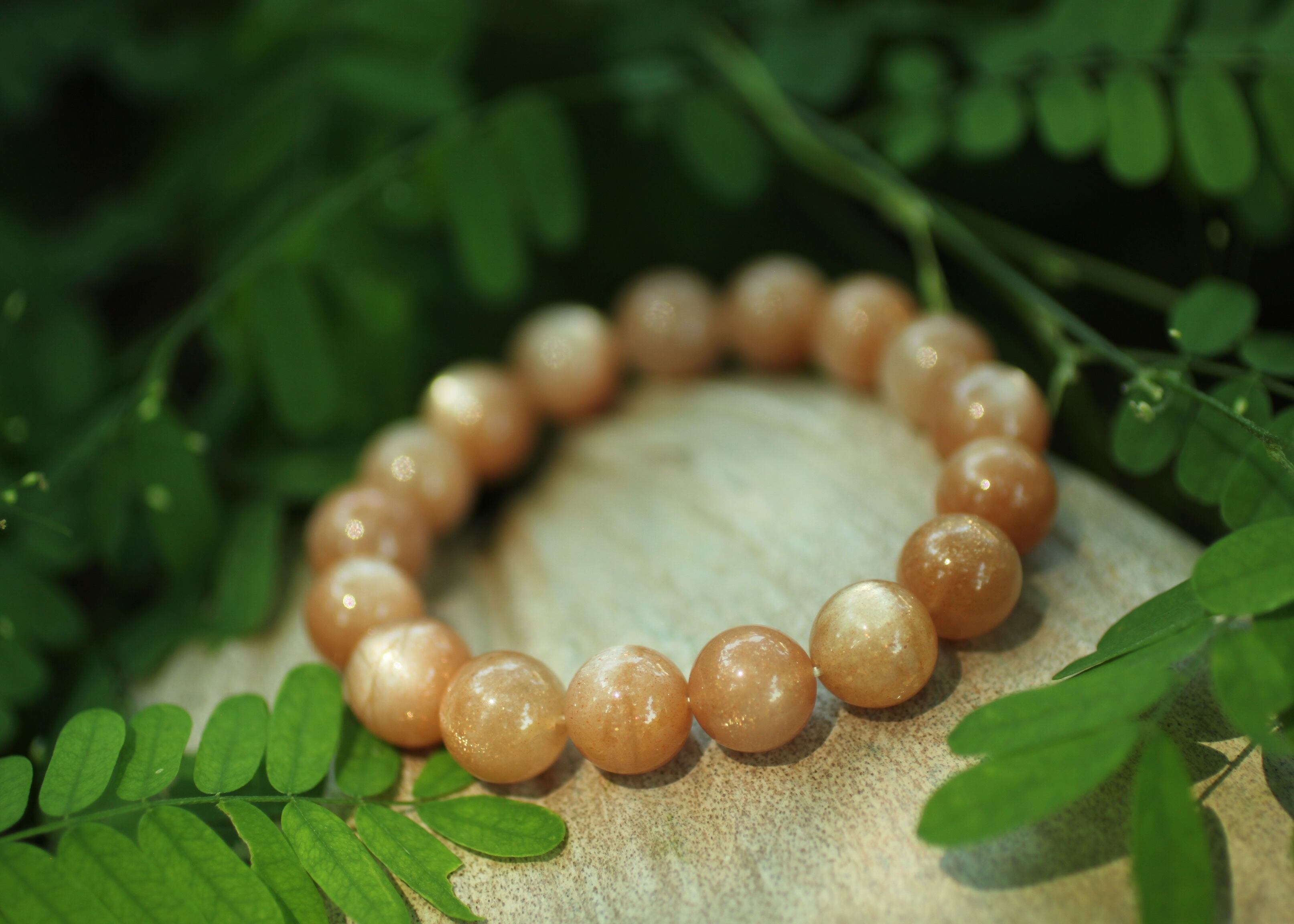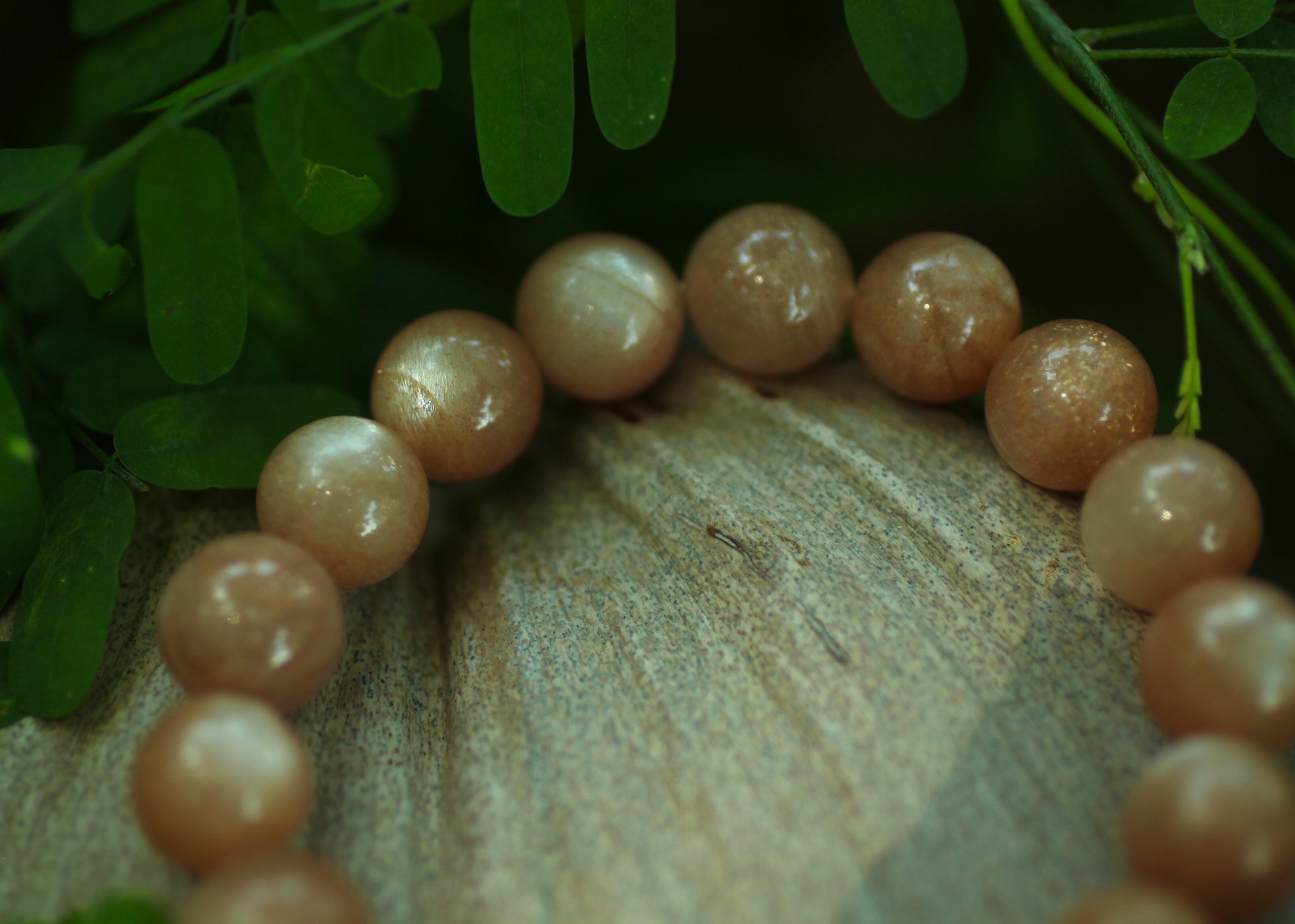 光を受け表面を輝かせる姿がとても美しいオレンジムーンストーン。