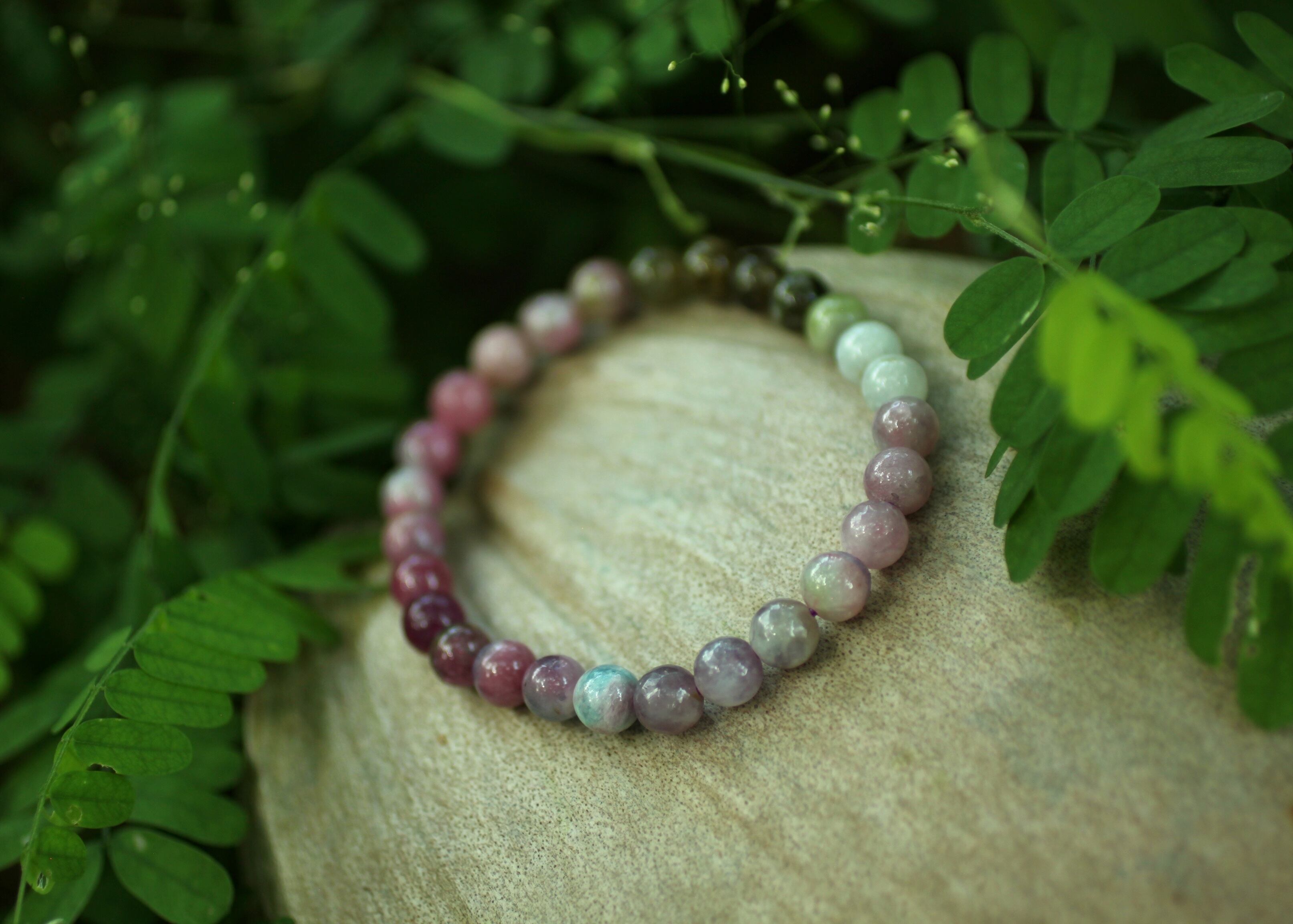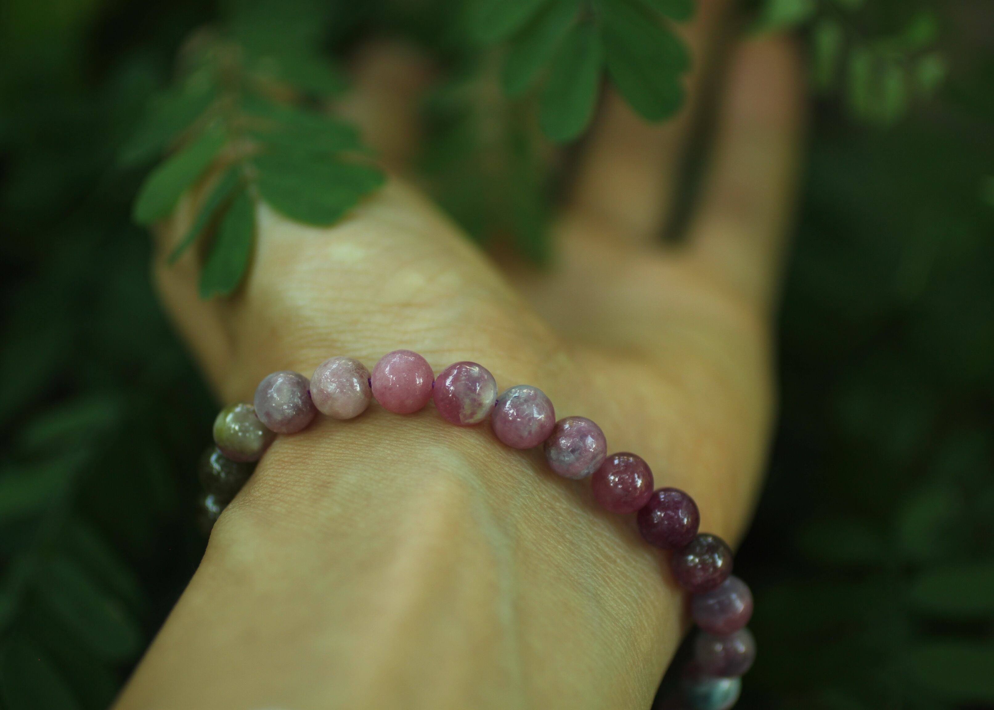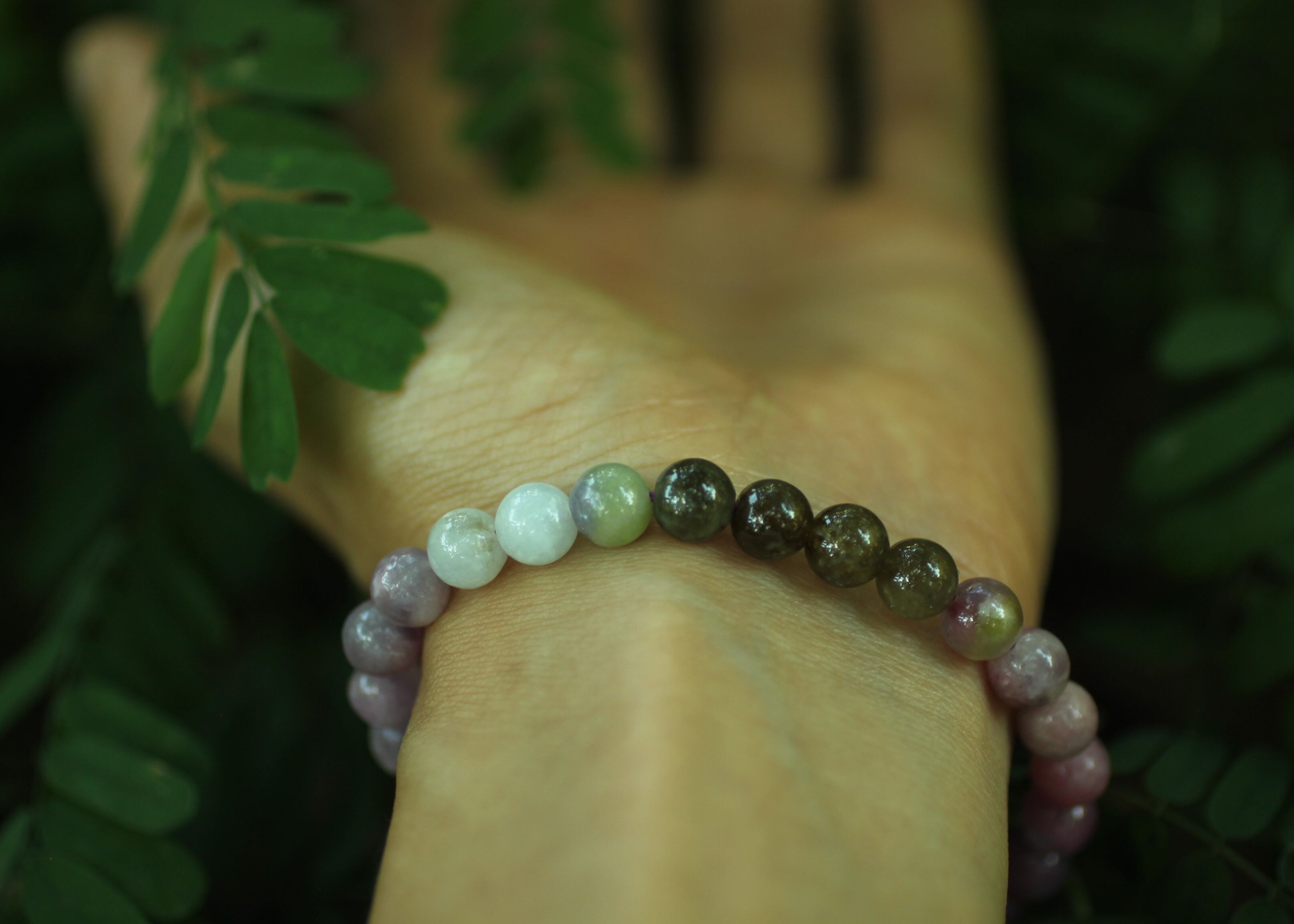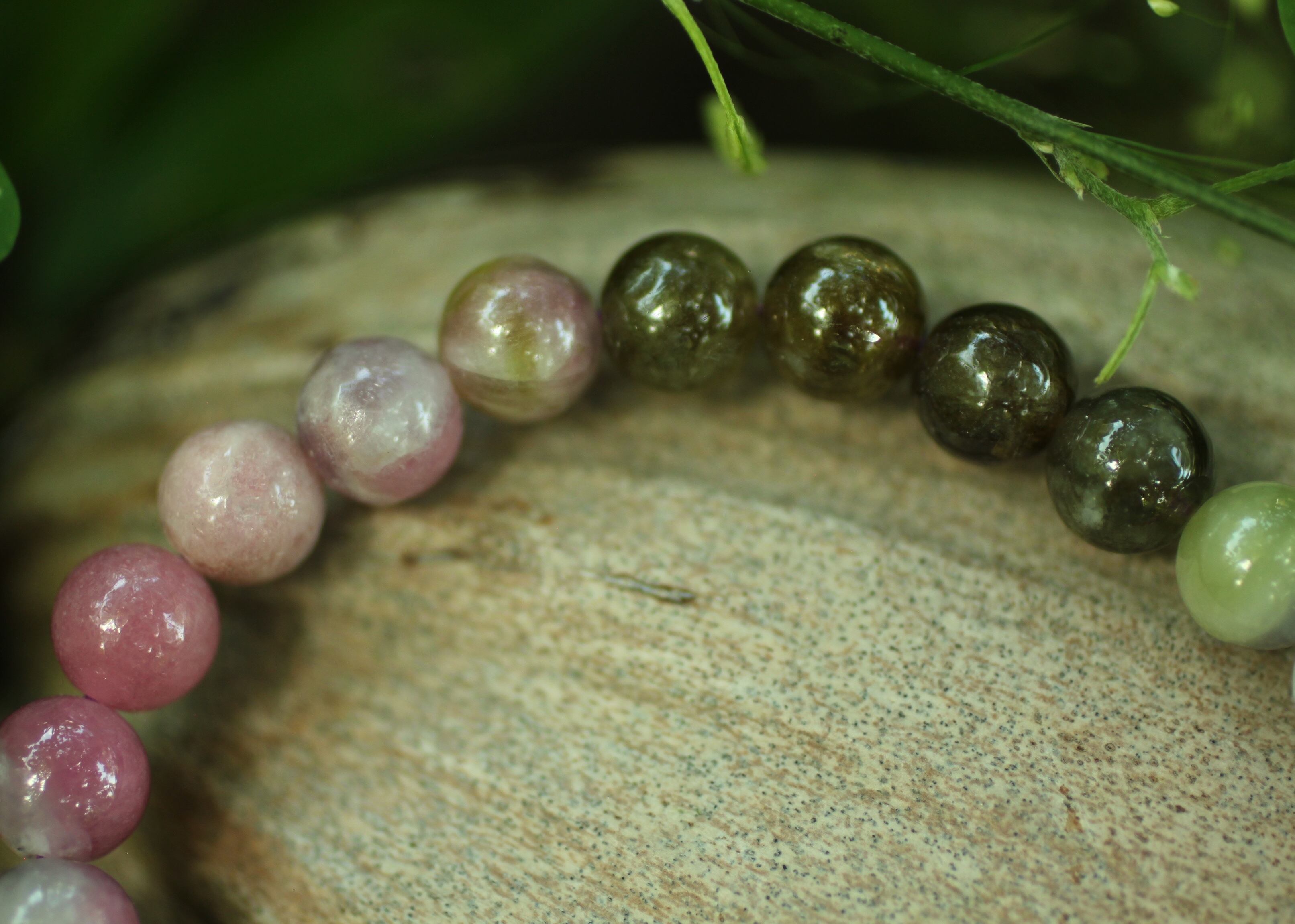 グリーン系のトルマリンをアクセントとして加えたマルチカラートルマリンブレスレットとなっています。