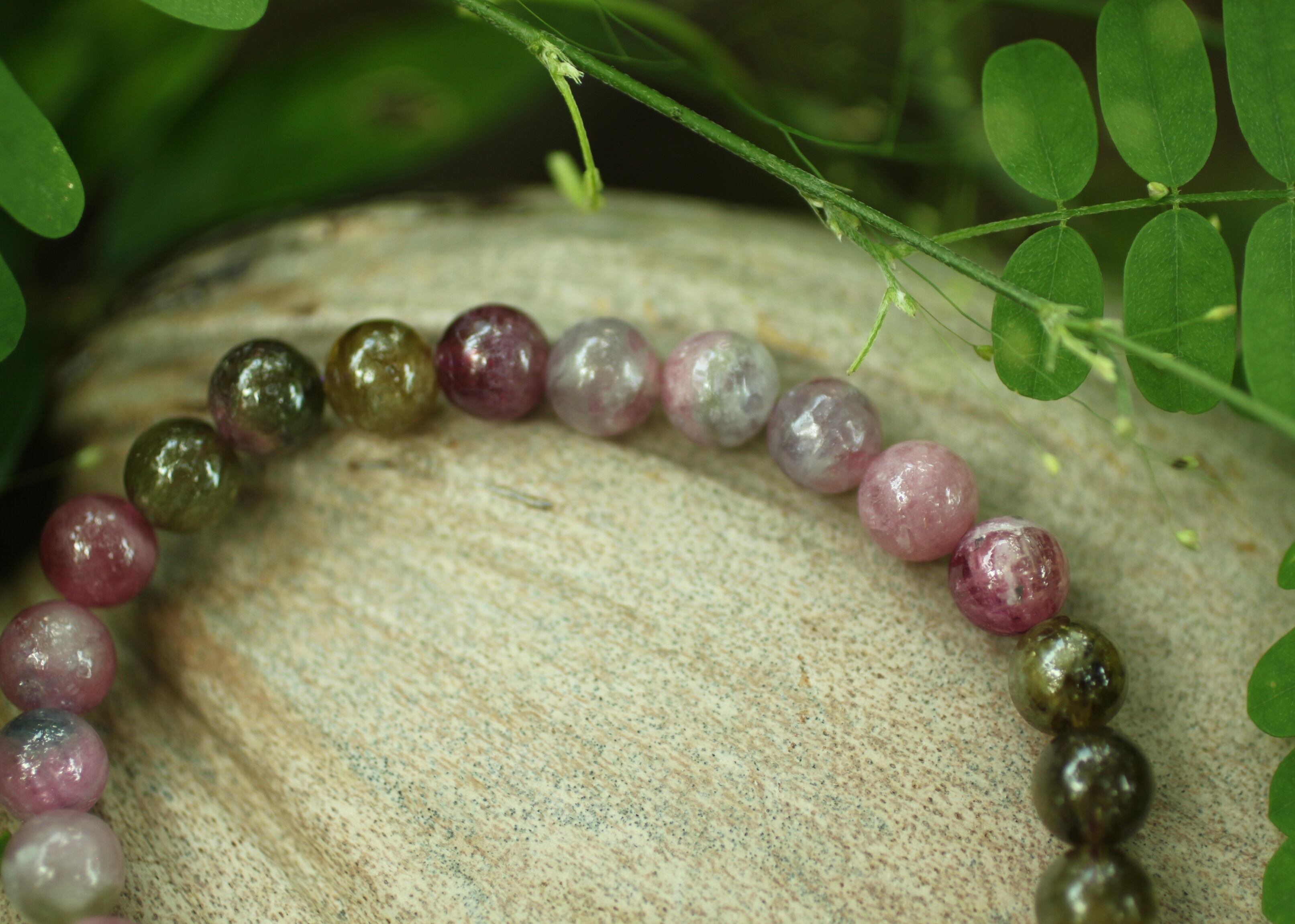 とランダムに色を組み合わせたマルチカラートルマリンブレスレット。