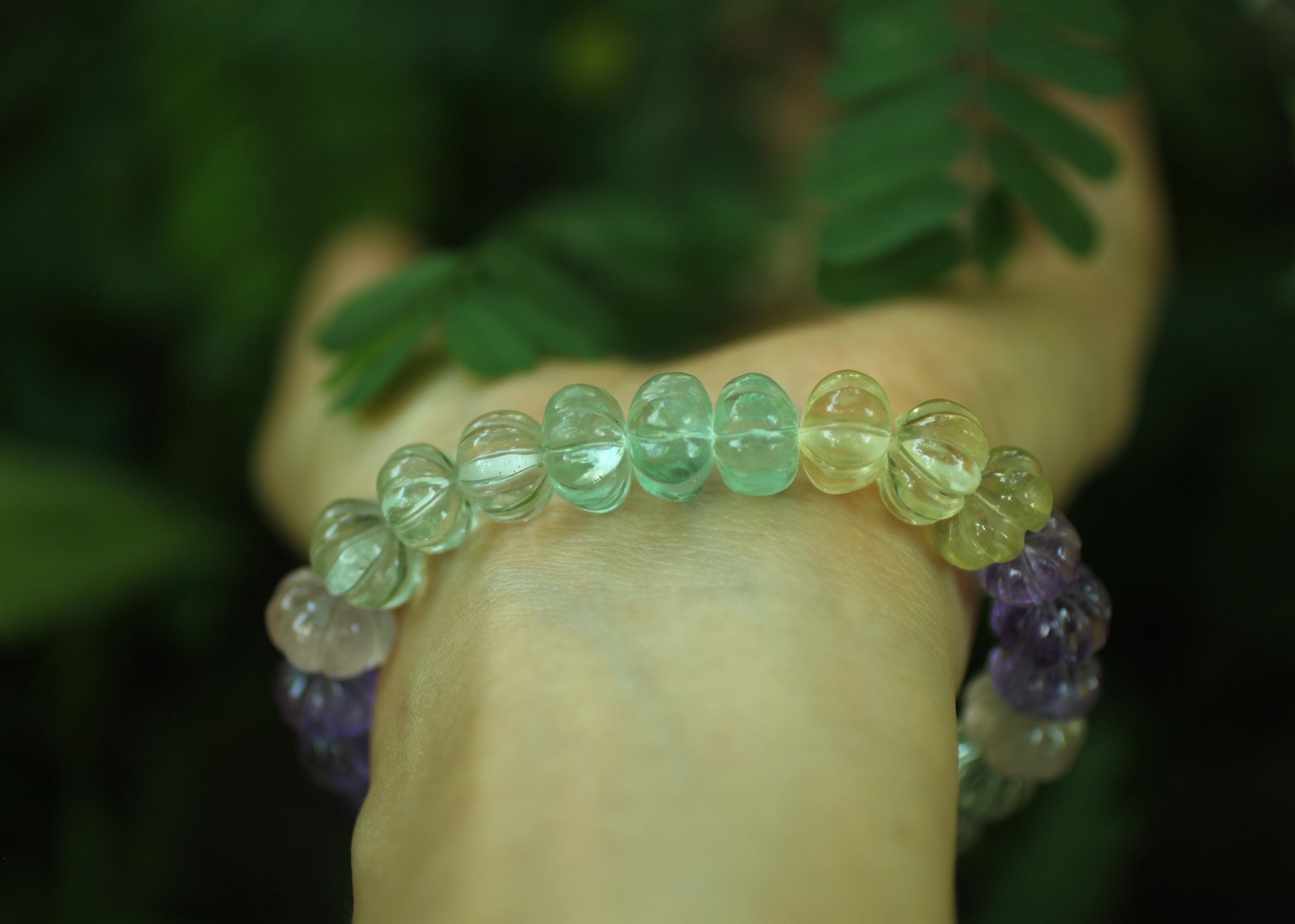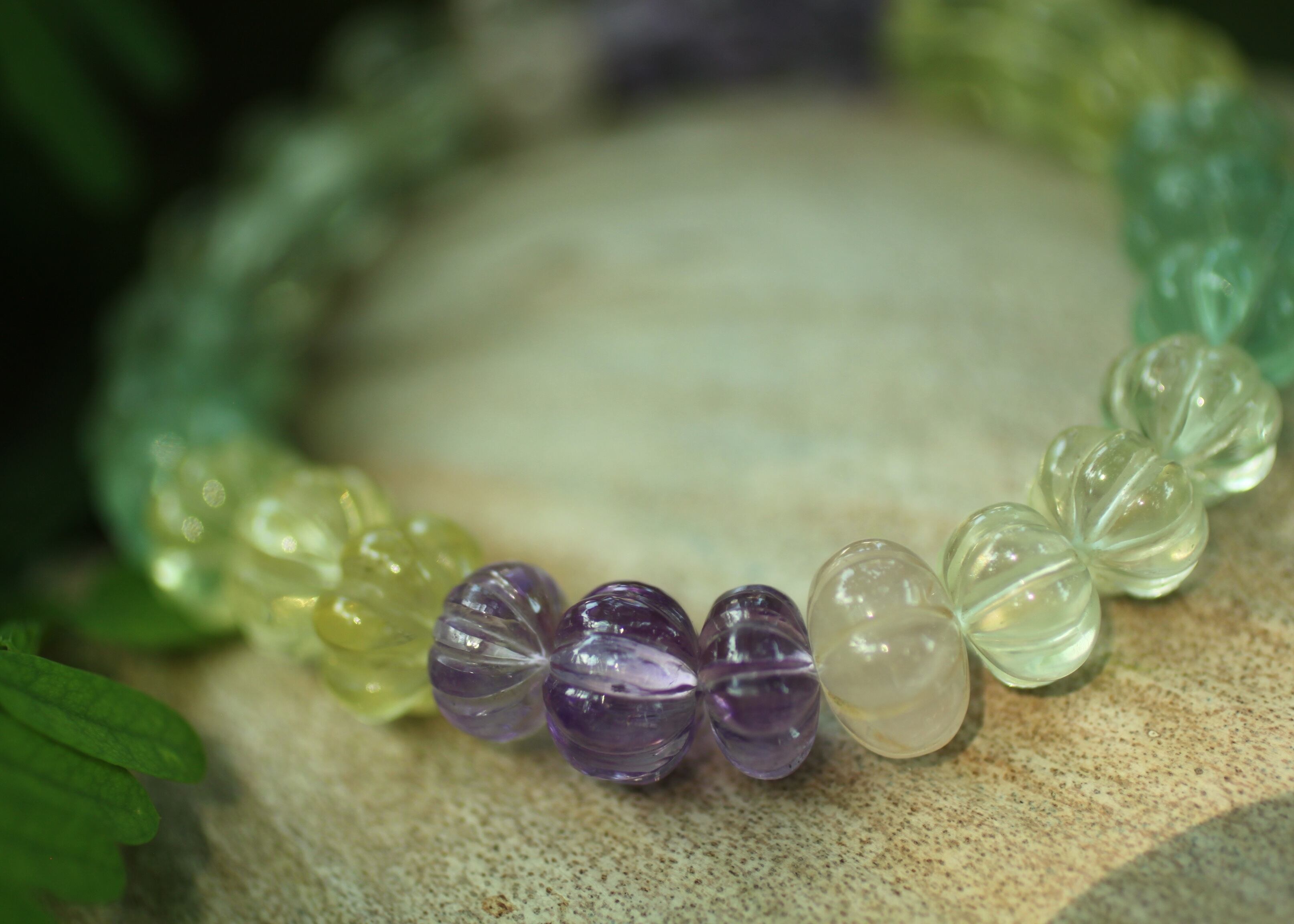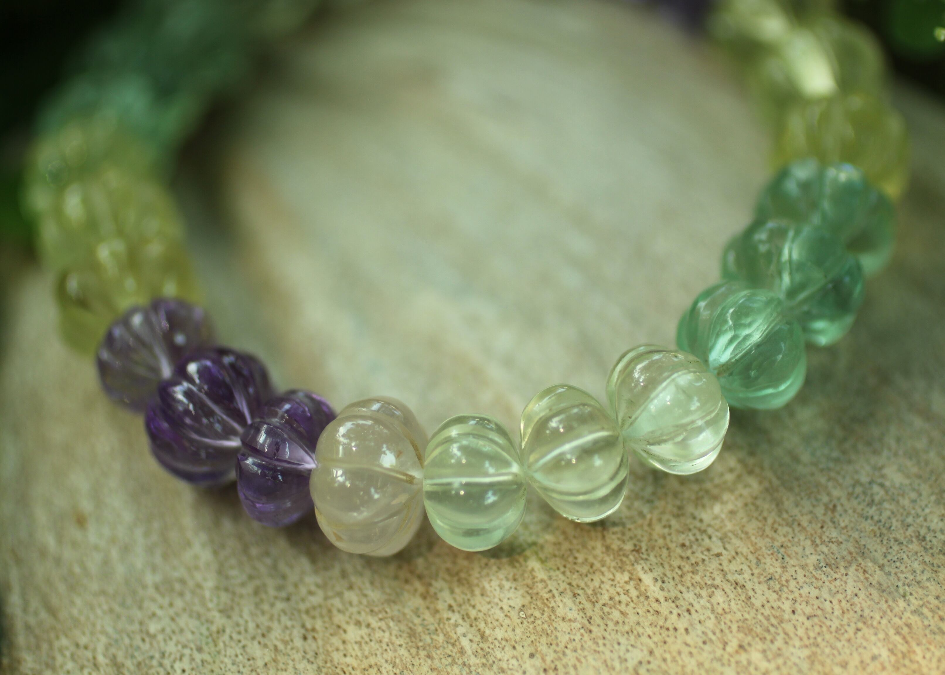 カービングにより可愛さがよりプラスされたフローライトビーズ。