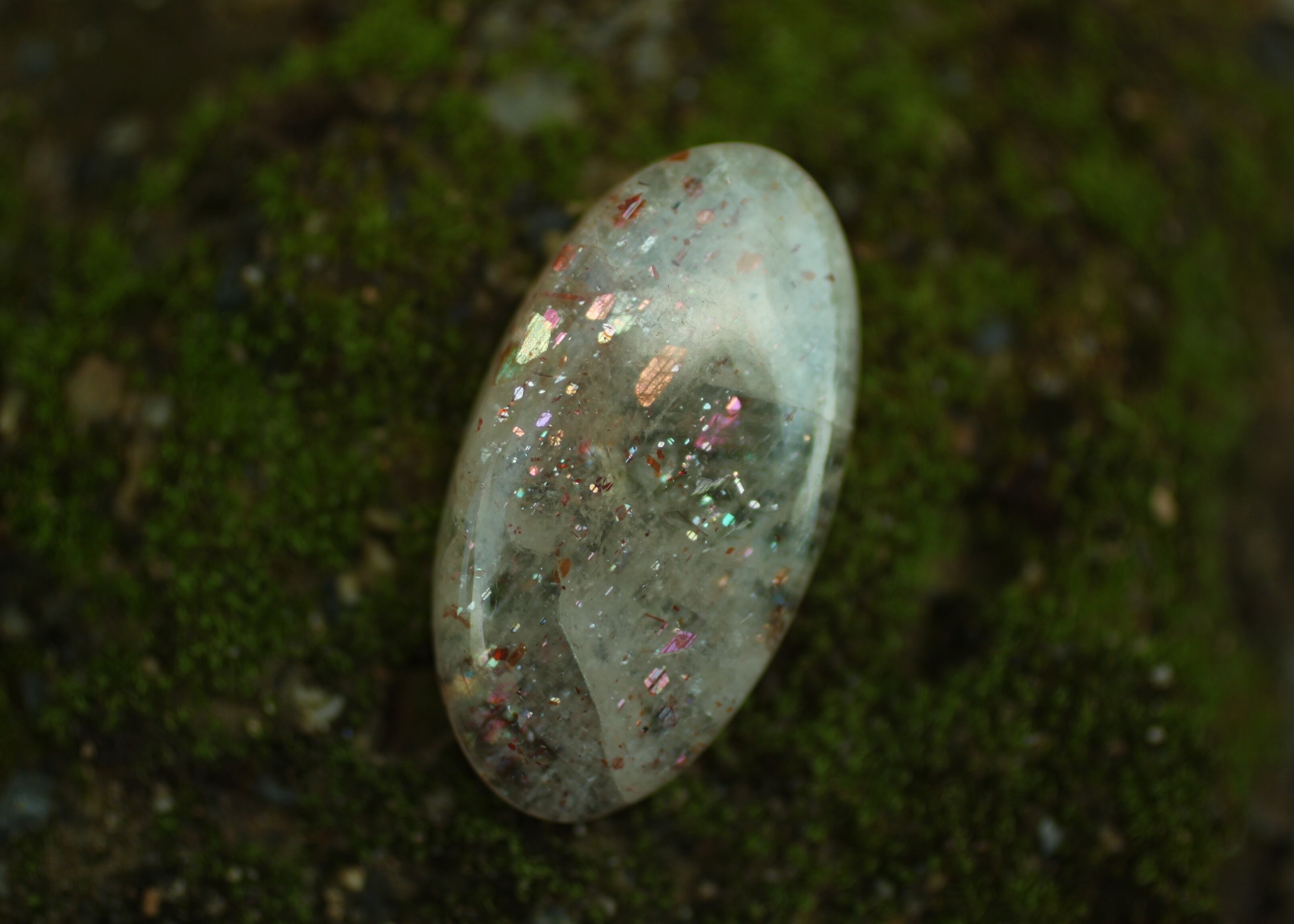 中でも大きめサイズの虹色のラメが目立つように光り、