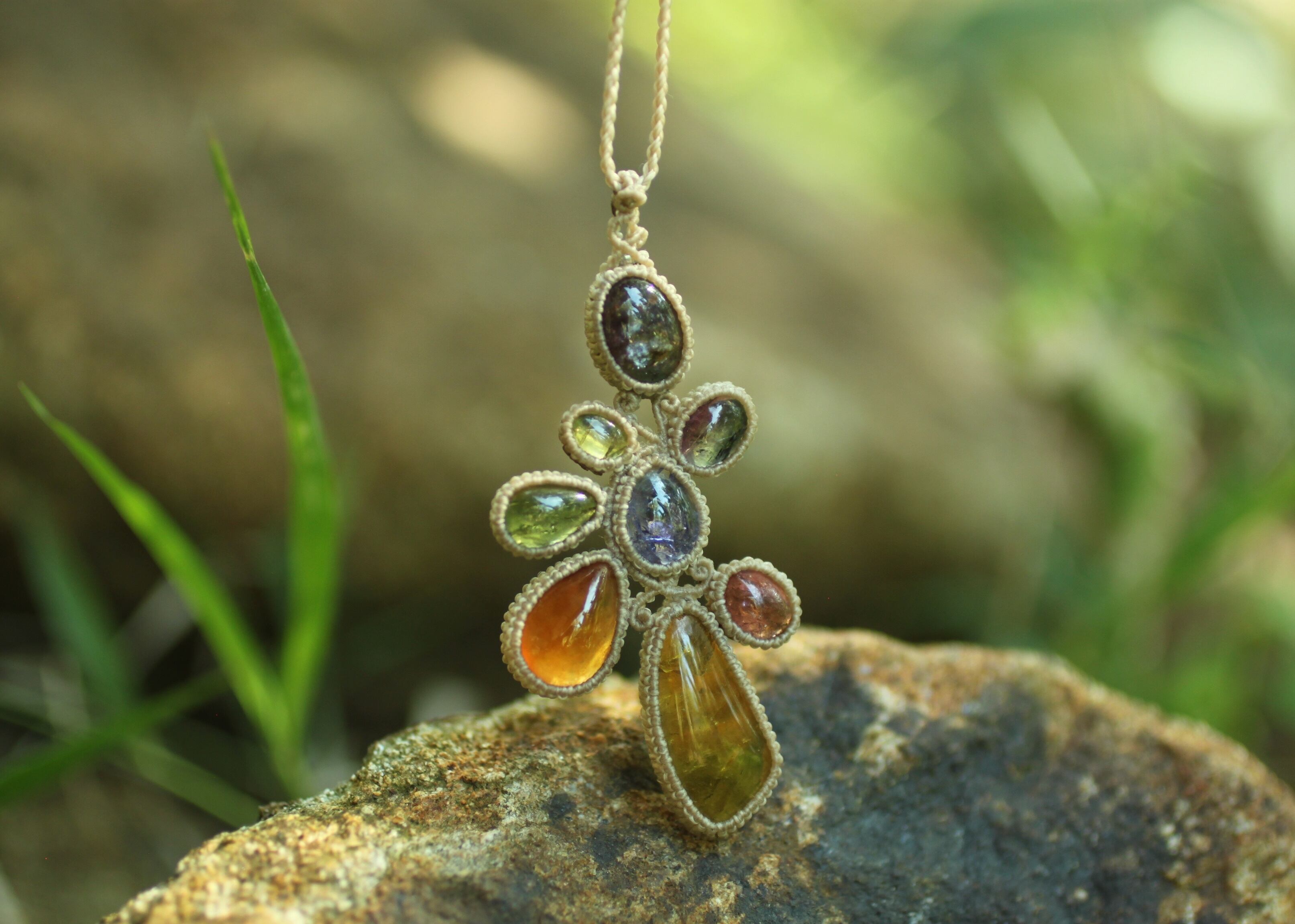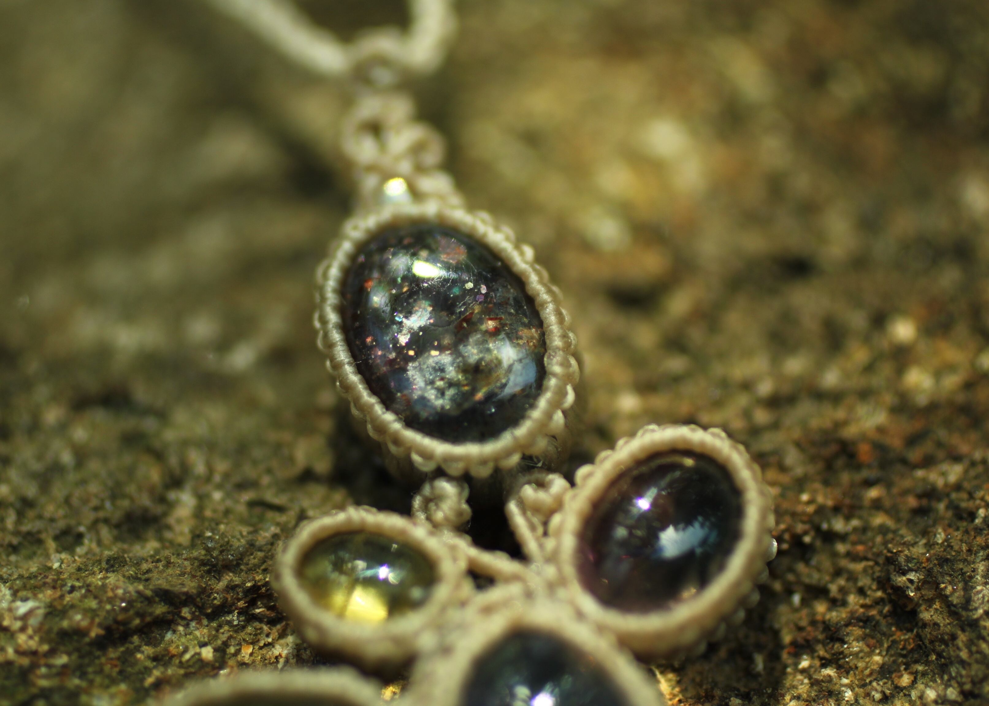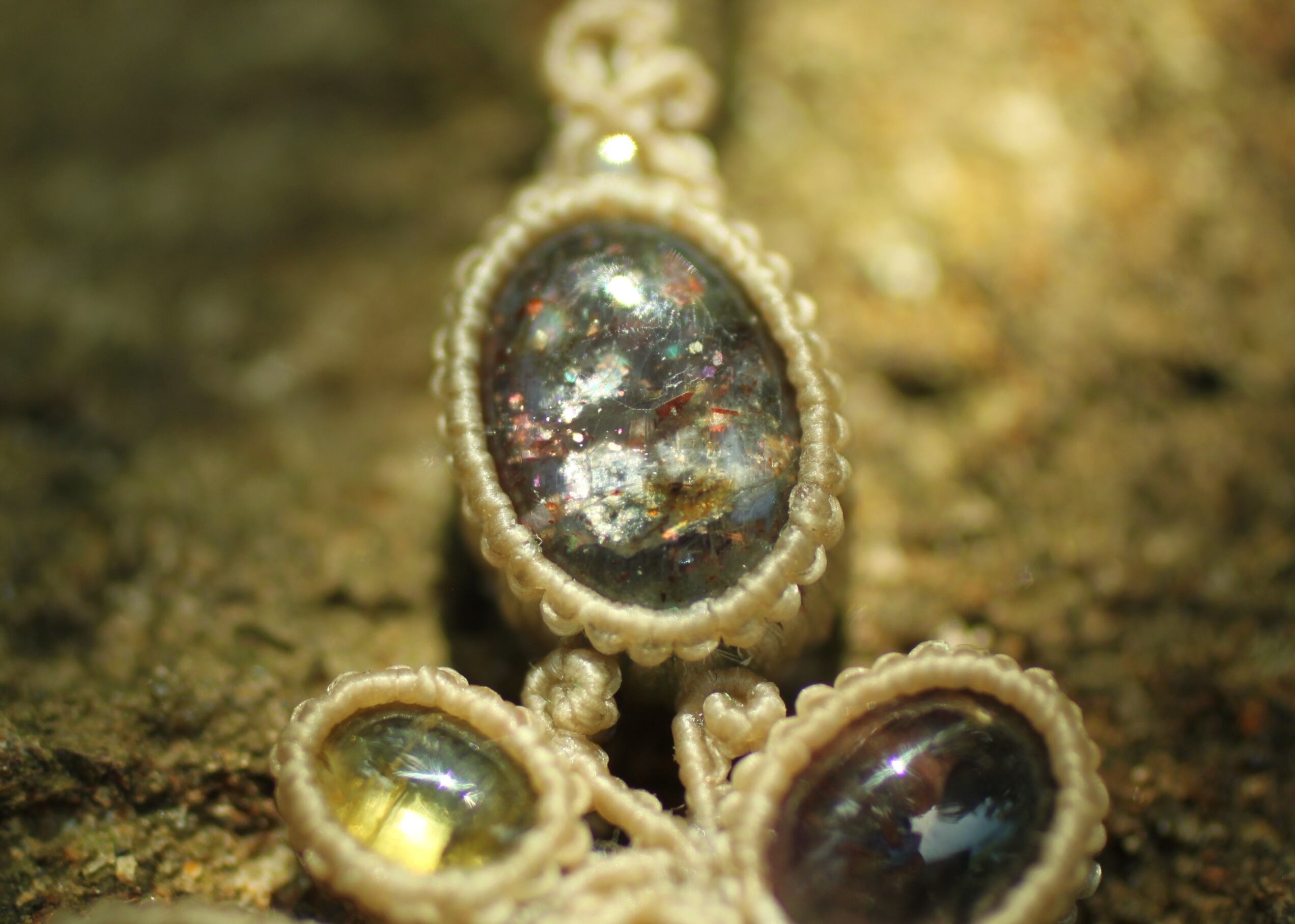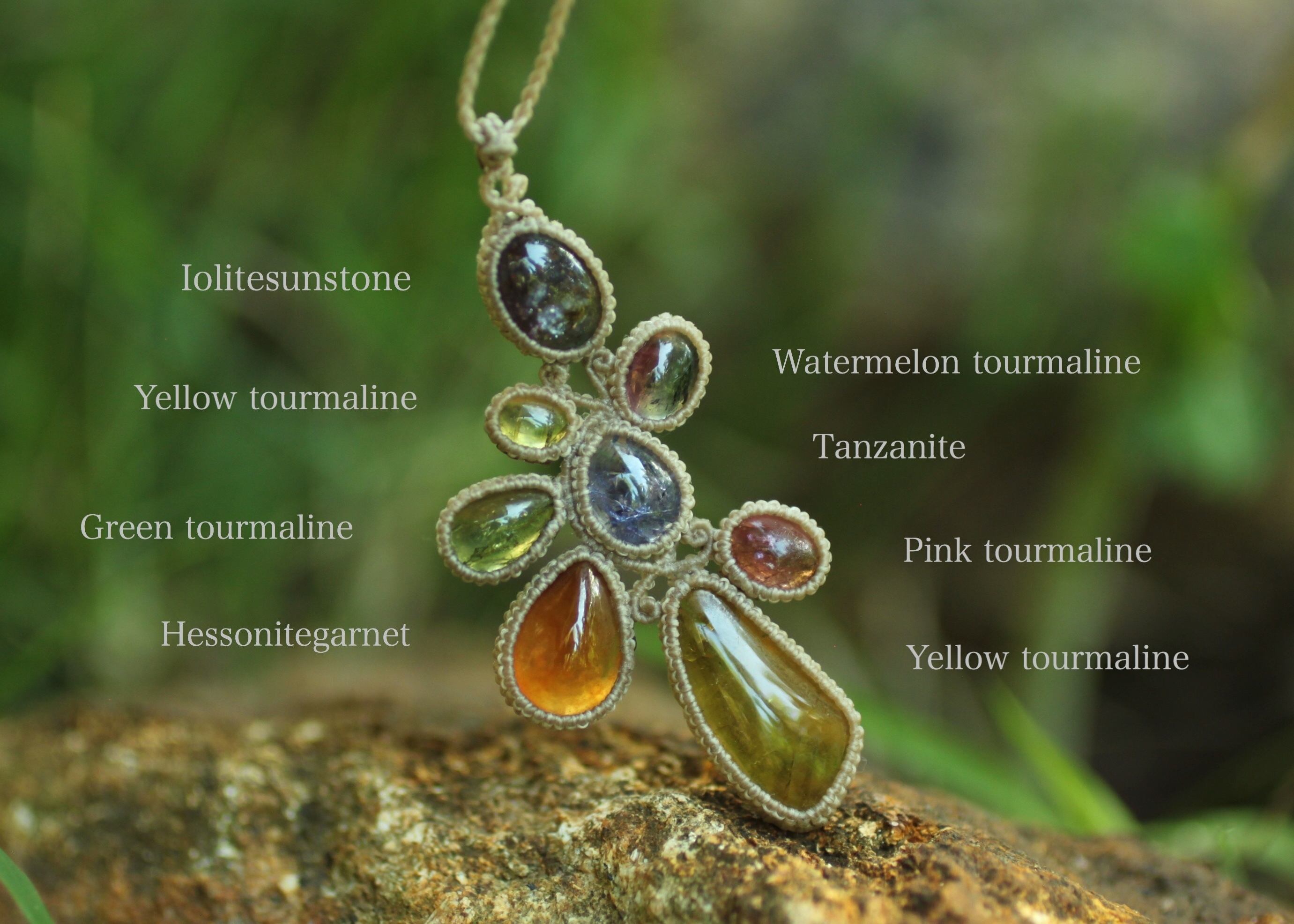 ※ 天然石を包むコードを始めトップ部分に使用したマクラメ編みコードは、
