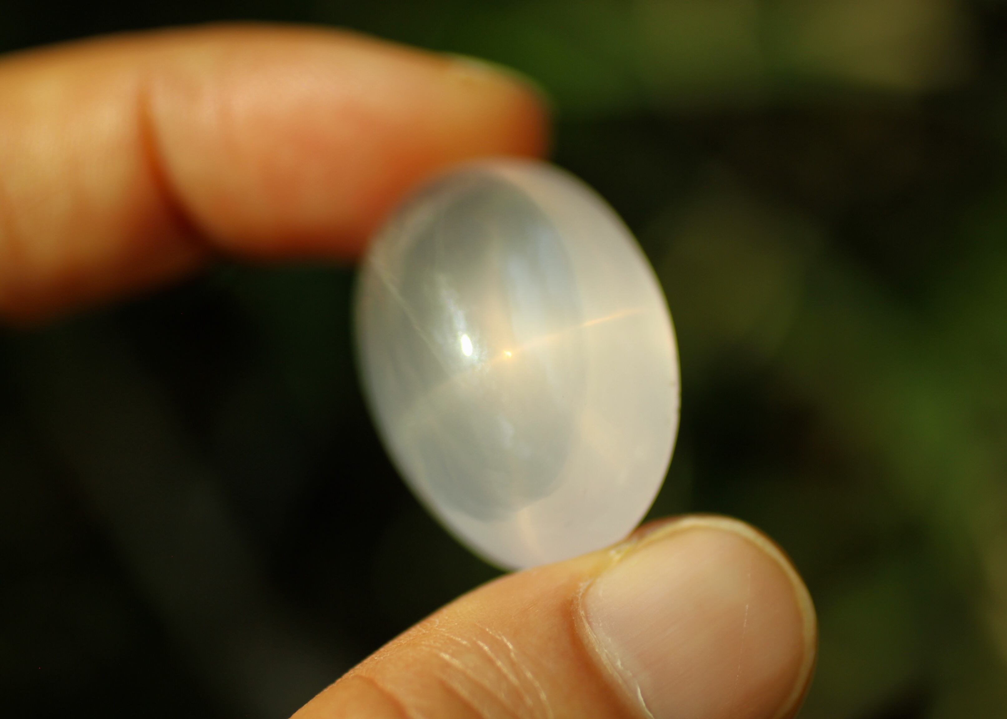 特に後ろからの強い光によりスターがくっきりと浮かび上がるタイプのスターローズクオーツです。