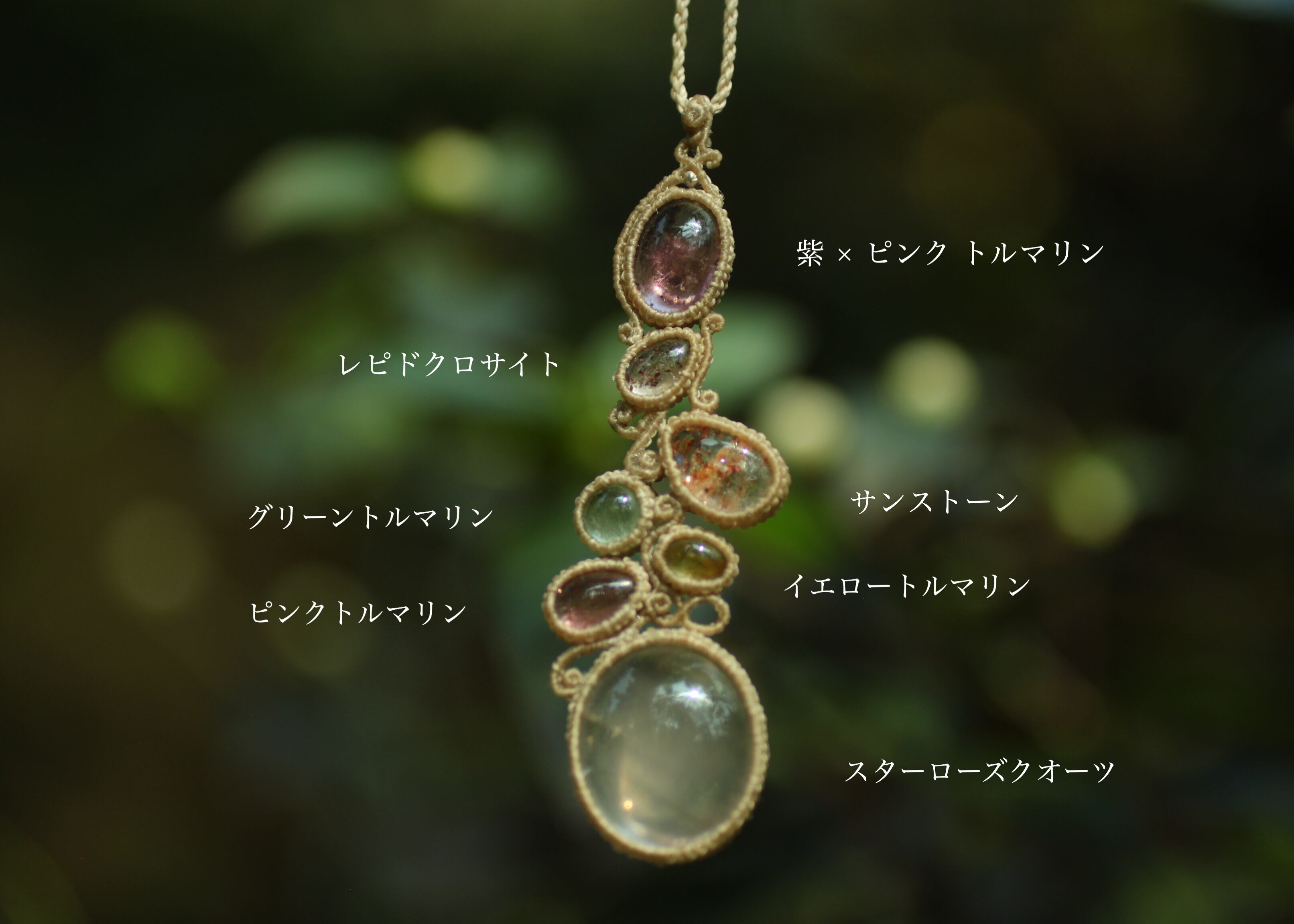 ※ 天然石を包むコードを始めトップ部分に使用したマクラメ編みコードは、