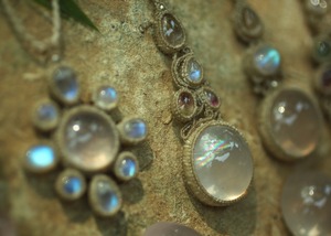 ひもの最後に . . . . . ローズクオーツ、ピンクトルマリン、ムーンストーン 、シルバー925ビーズ 使用