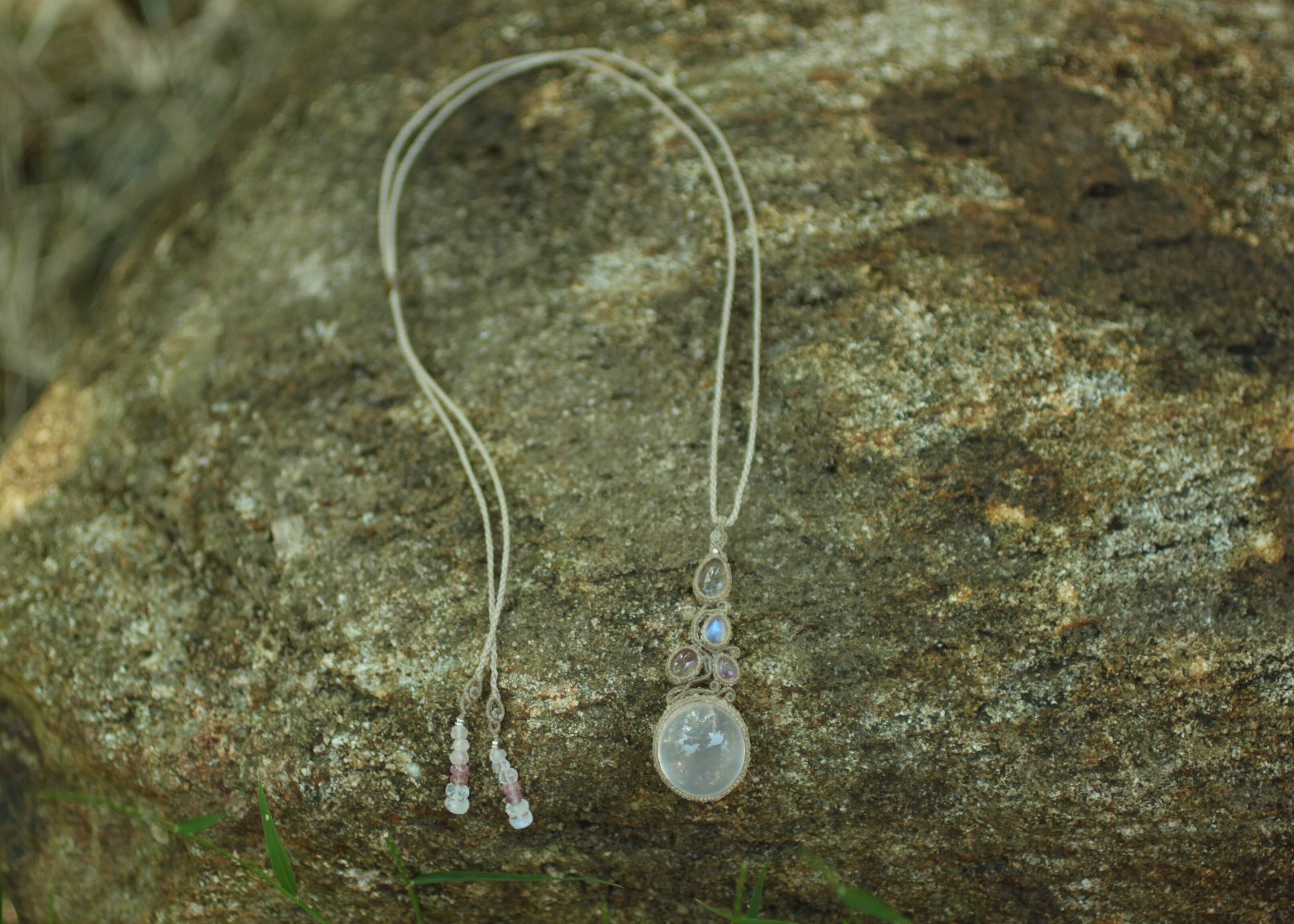 ※ 天然石を包むコードを始めトップ部分に使用したマクラメ編みコードは、