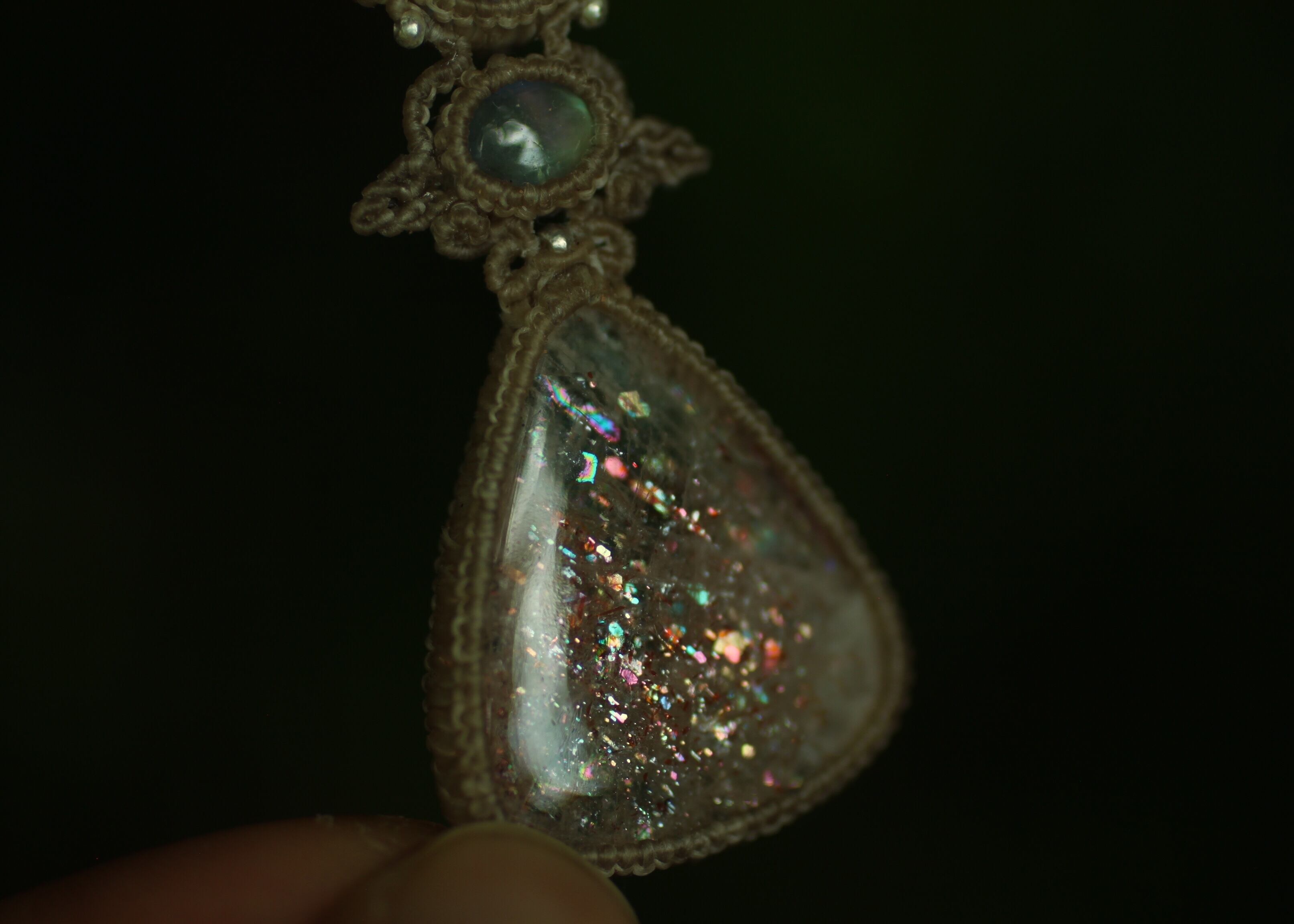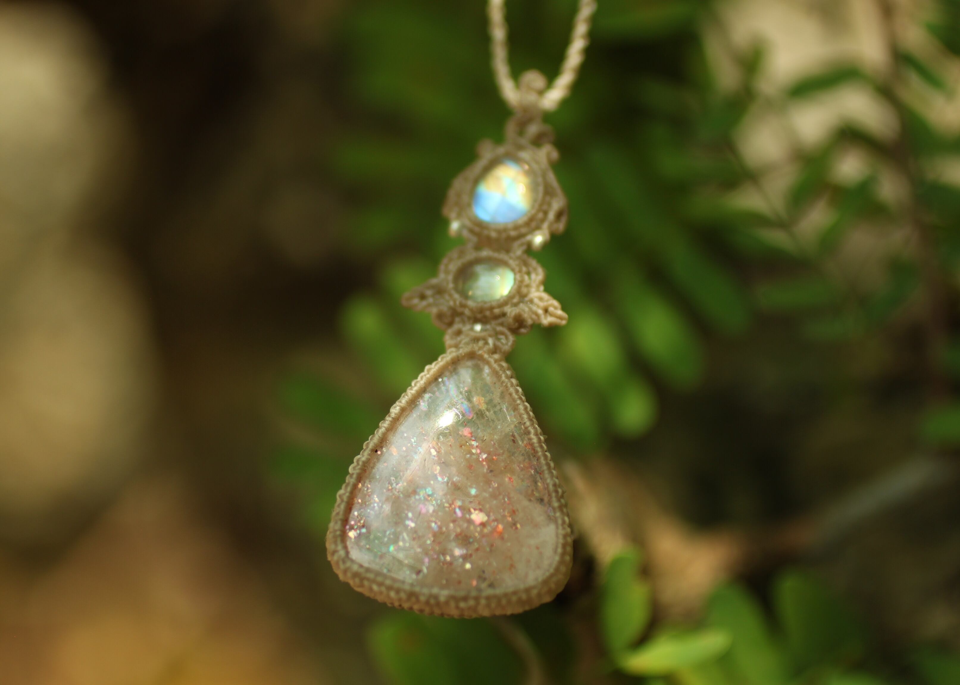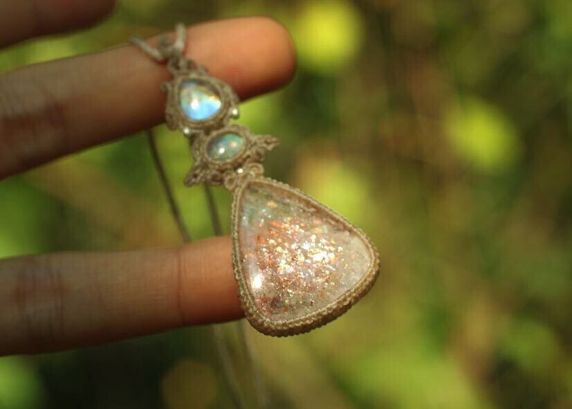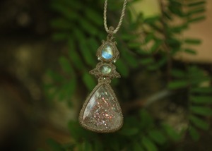 サンストーン × ムーンストーン マクラメペンダント