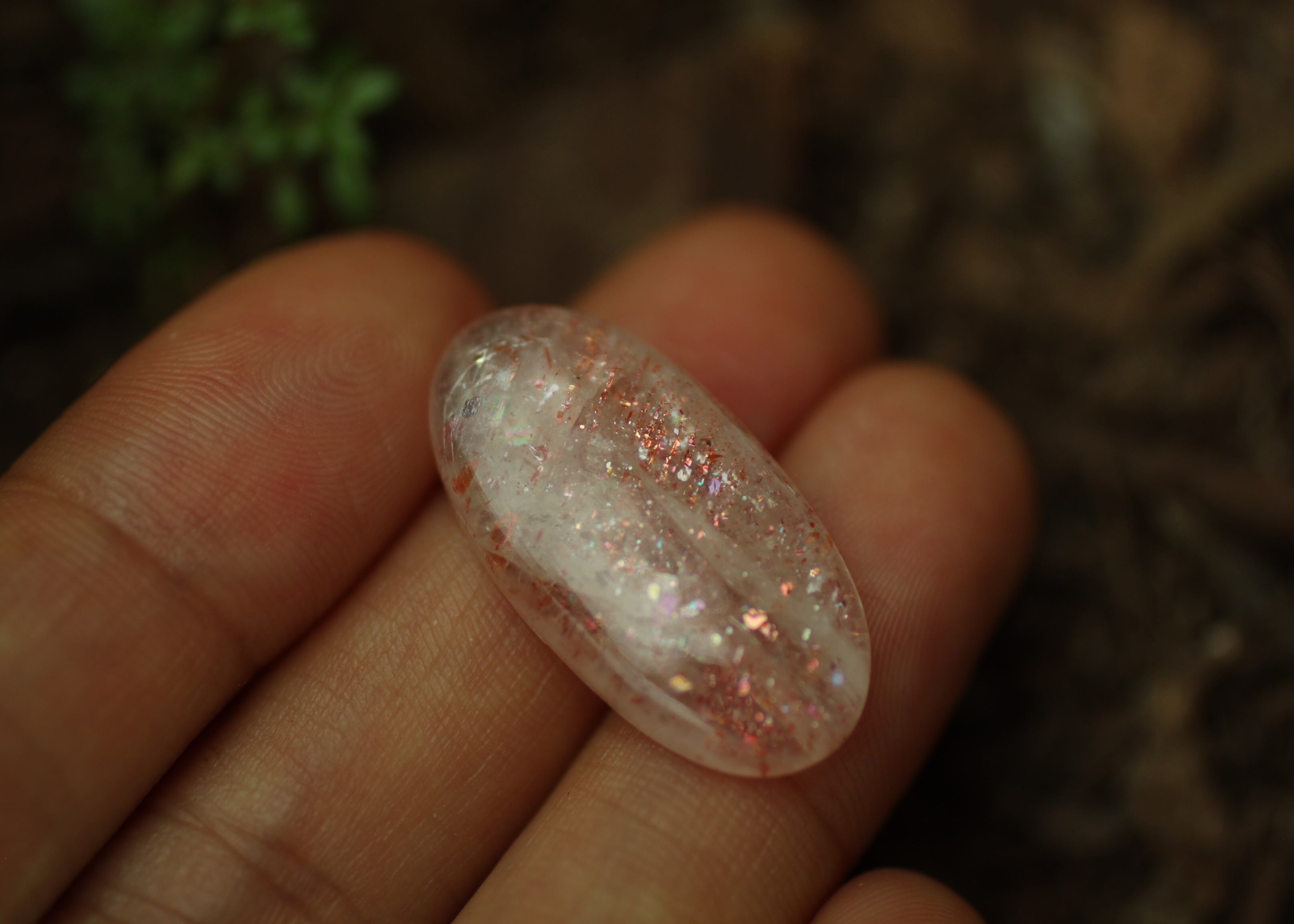 全てのサンストーンにはこの種のサンストーン特有のクラック、インクルージ(白)が含まれている事が多く、特にこちらのルースには若干目立つ白のインクルージョン( クラック程ではない)