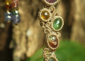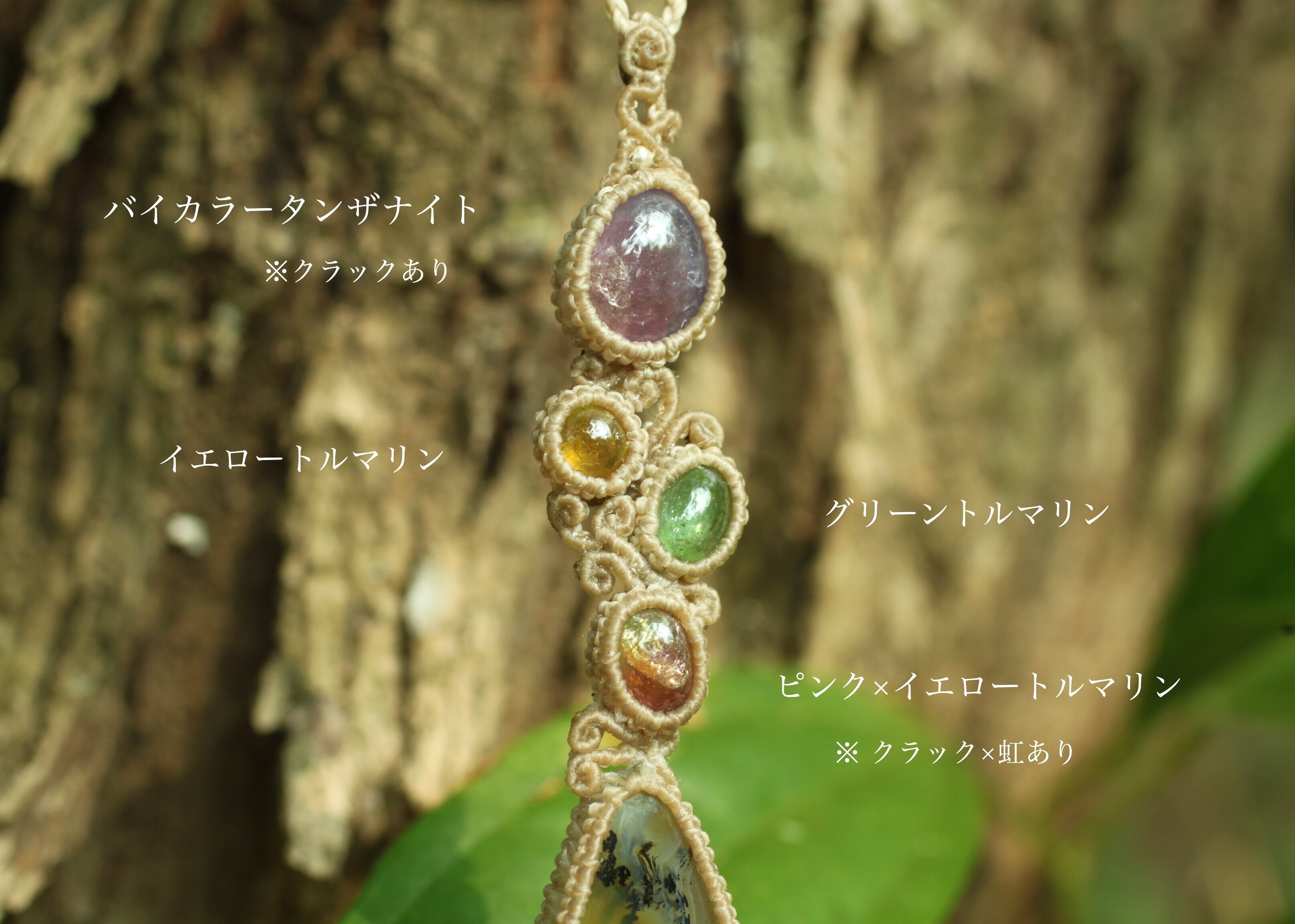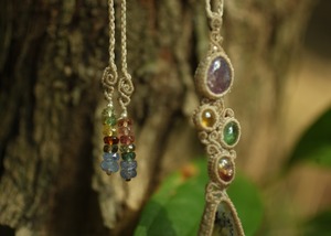 ※ 天然石を包むコードを始めトップ部分に使用したマクラメ編みコードは、