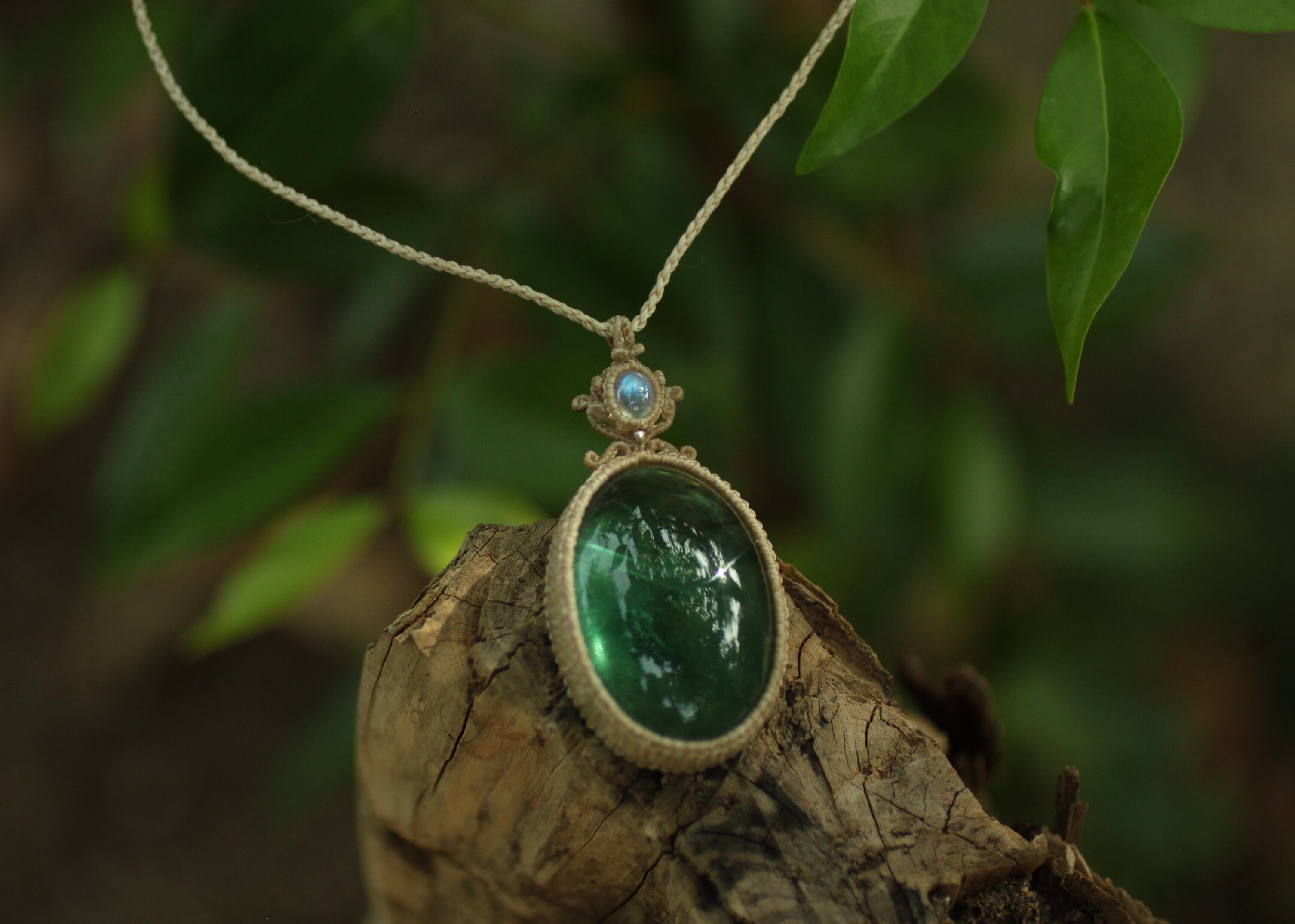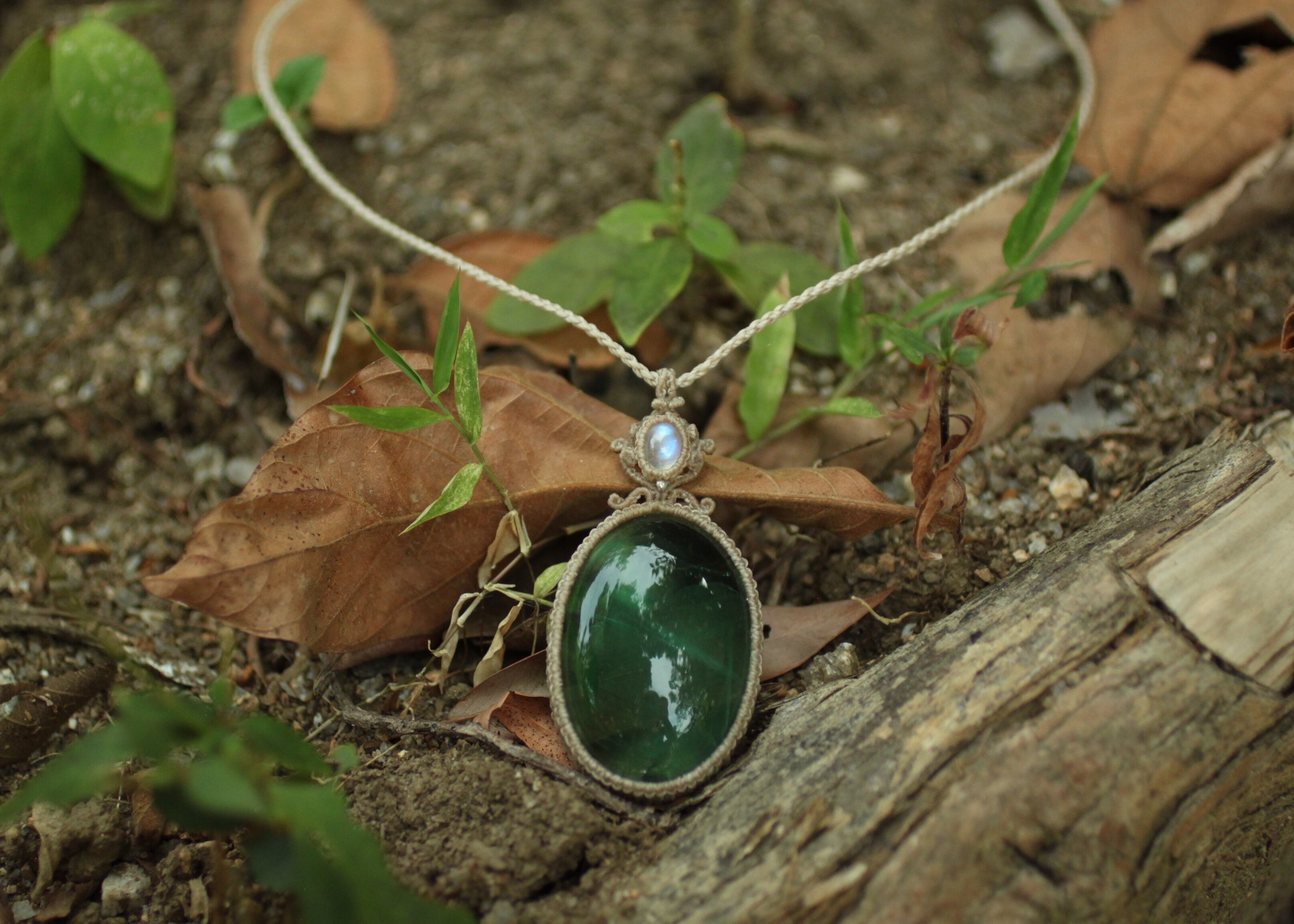 ひもの最後に . . . . . グリーントルマリン、ムーンストーン、シルバー925ビーズ 使用