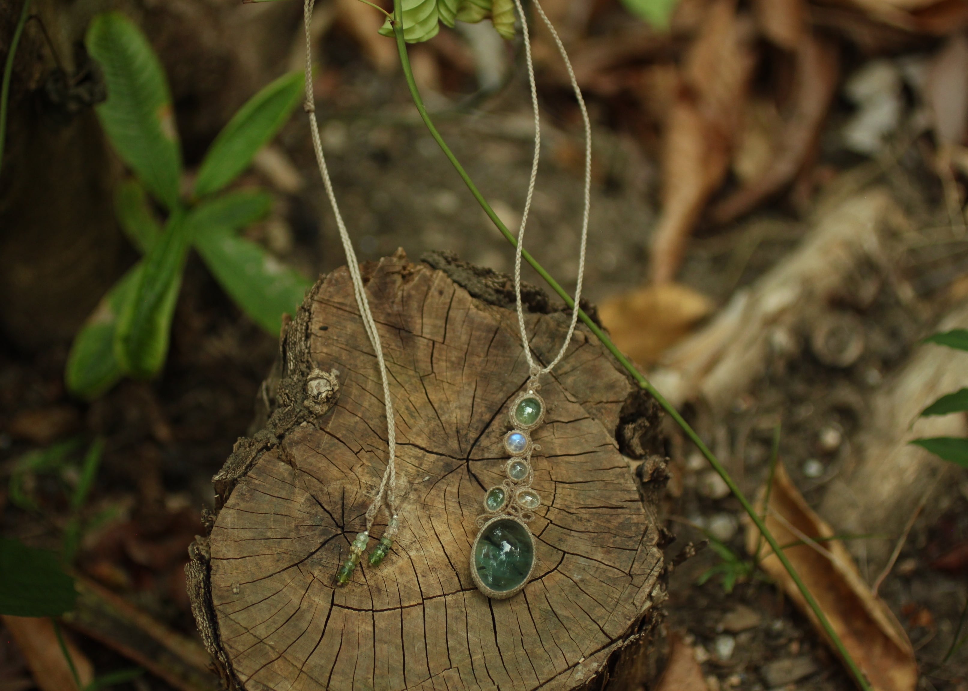 ※ 天然石を包むコードを始めトップ部分に使用したマクラメ編みコードは、