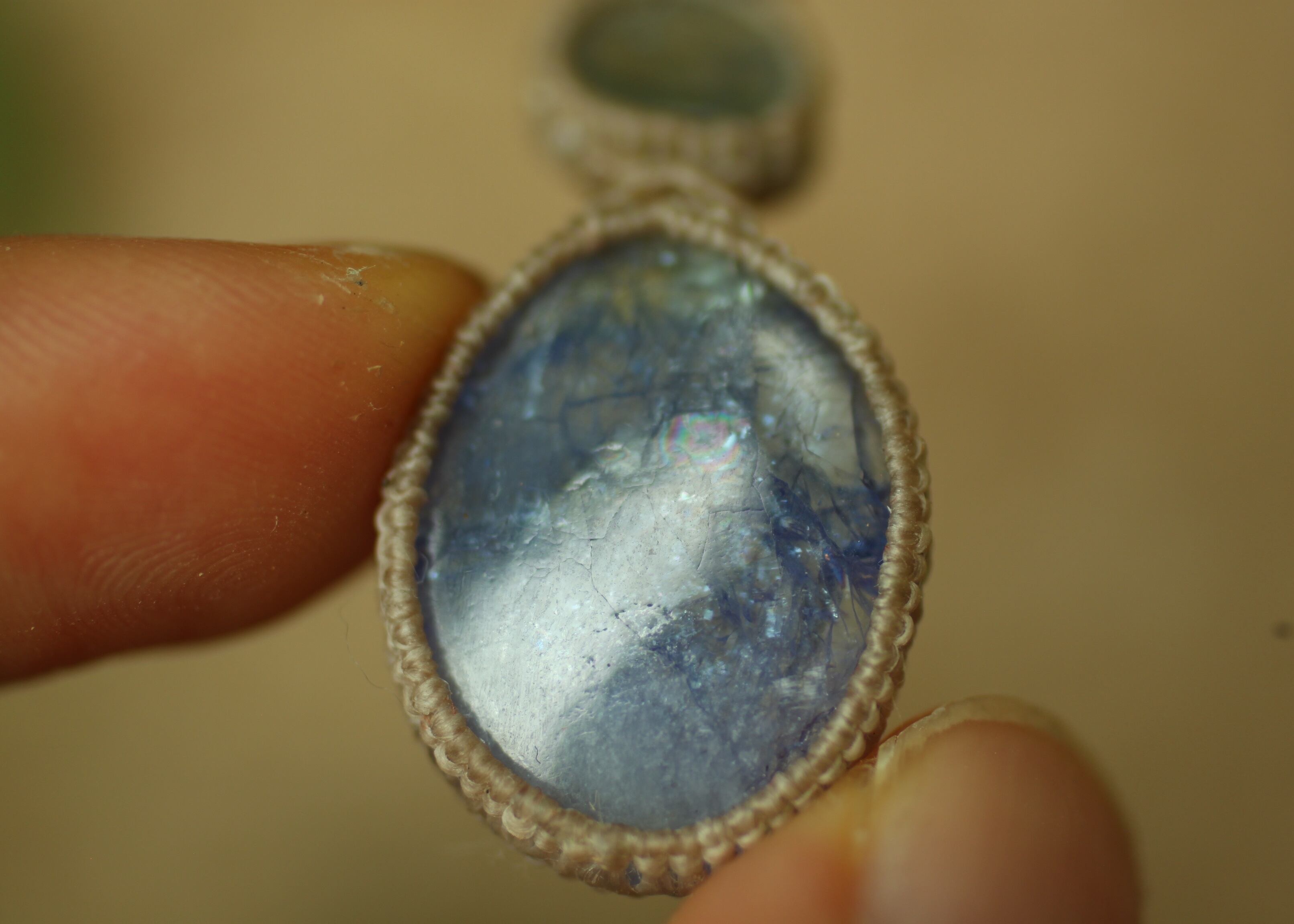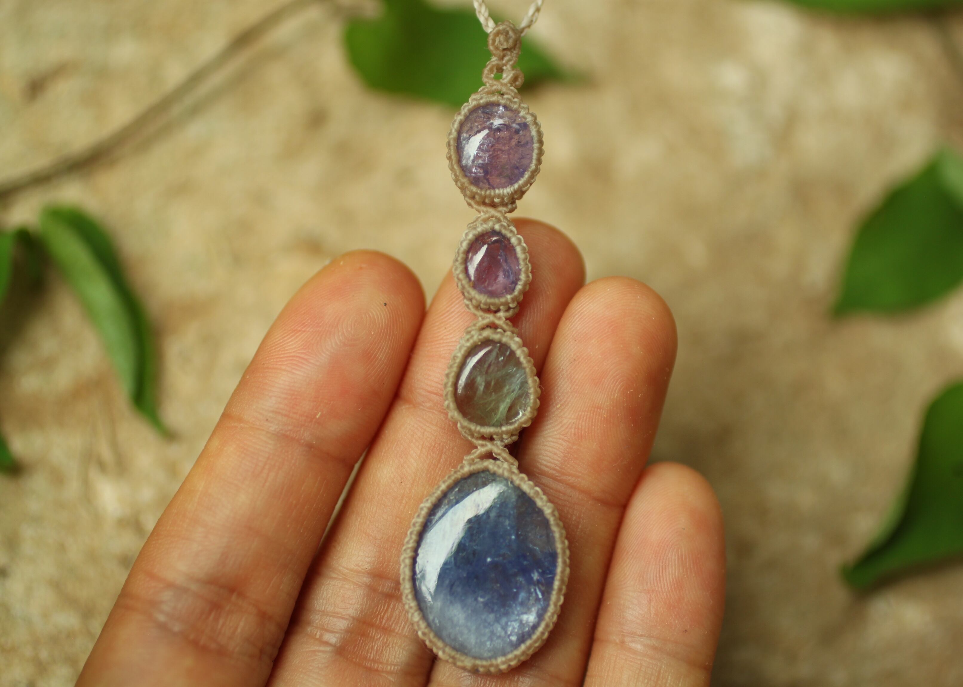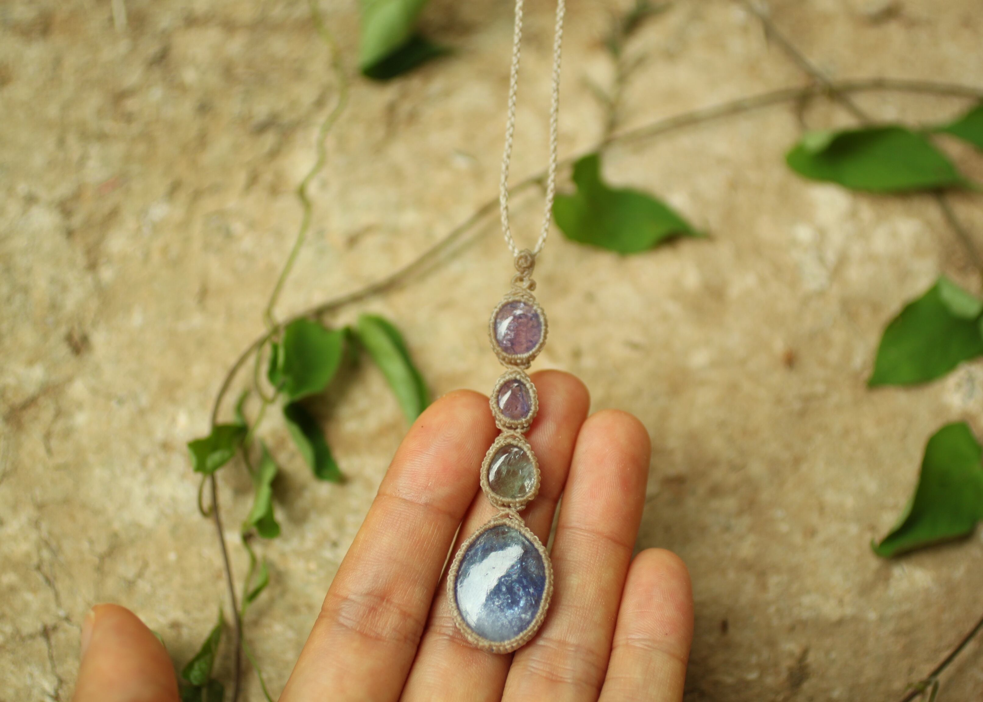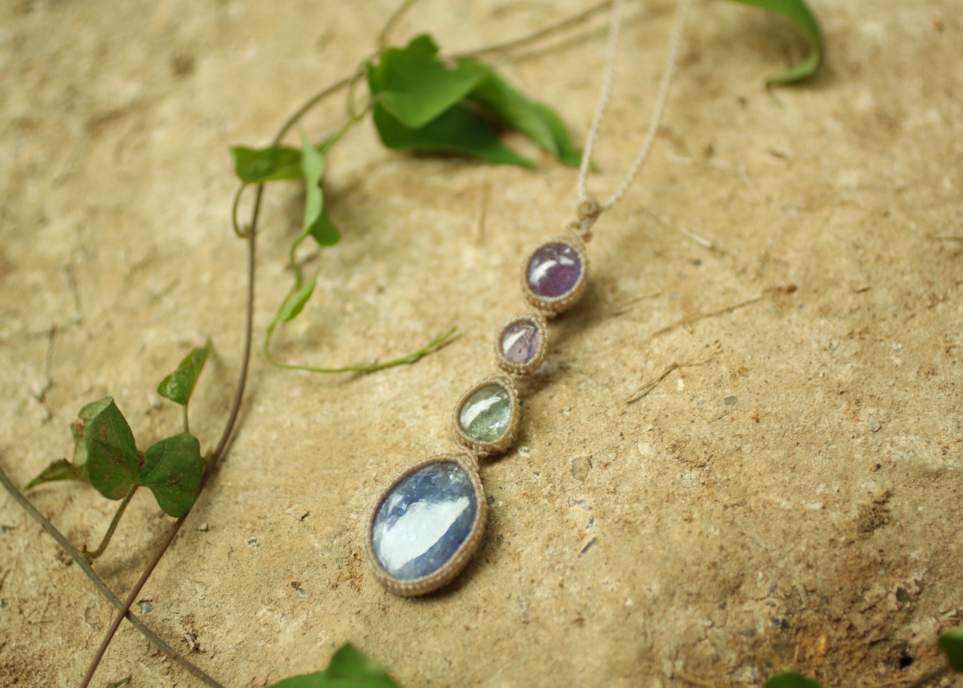 ※ 天然石を包むコードを始めトップ部分に使用したマクラメ編みコードは、
