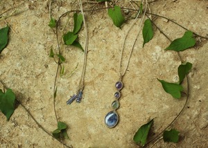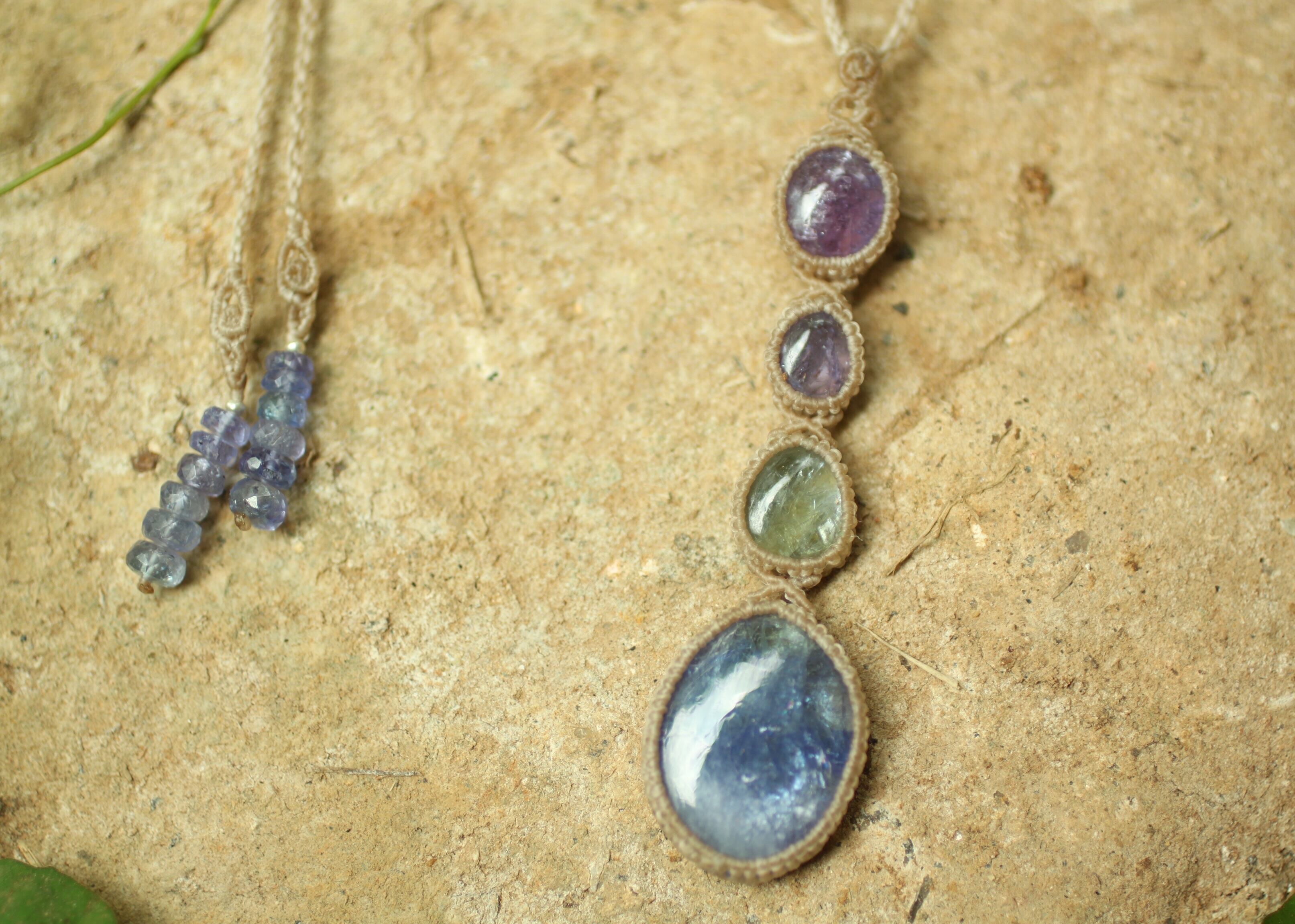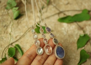 ブルー、パープル、グリーンと多色性のタンザナイトの特徴を生かしたシンプル4連ペンダント
