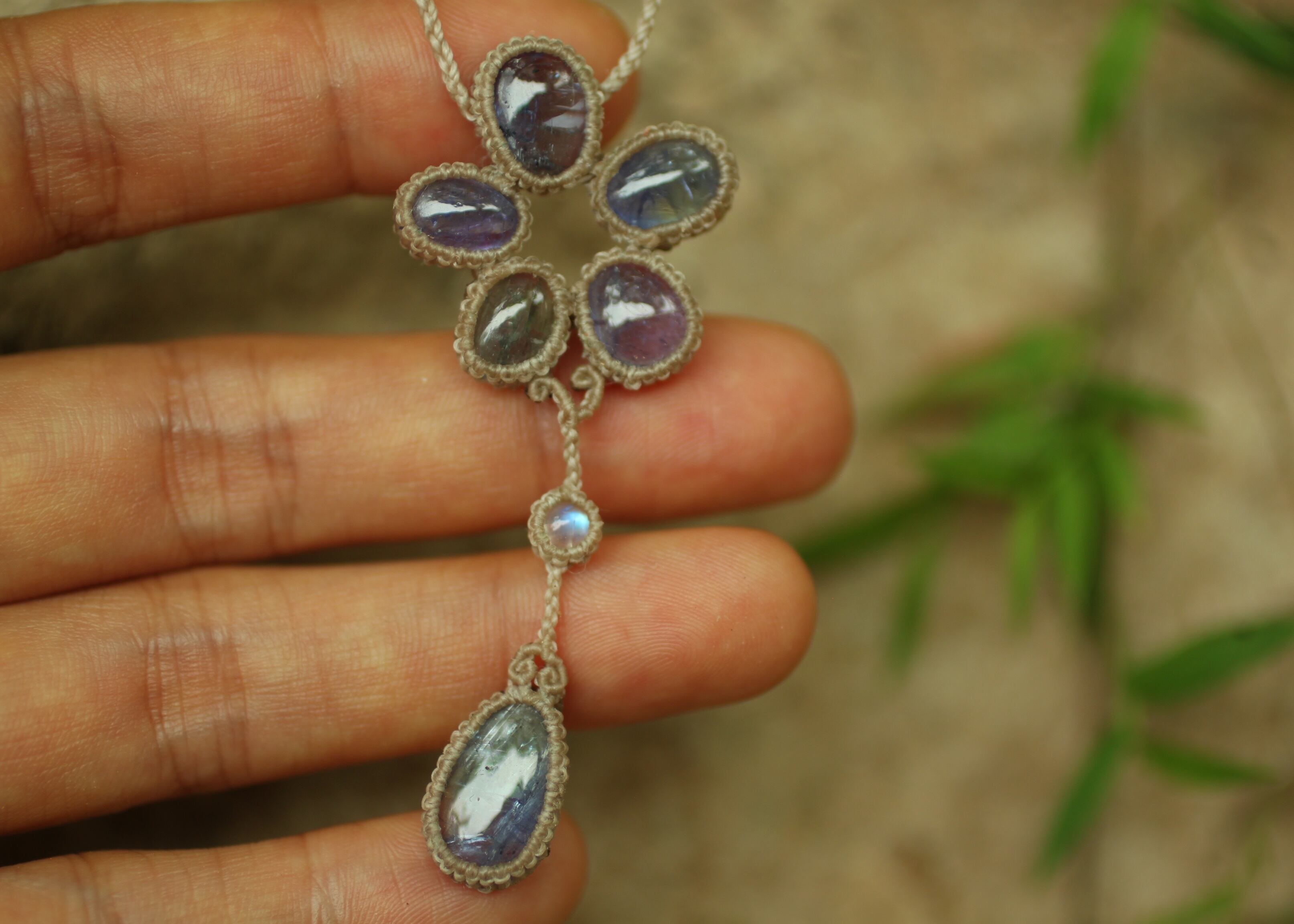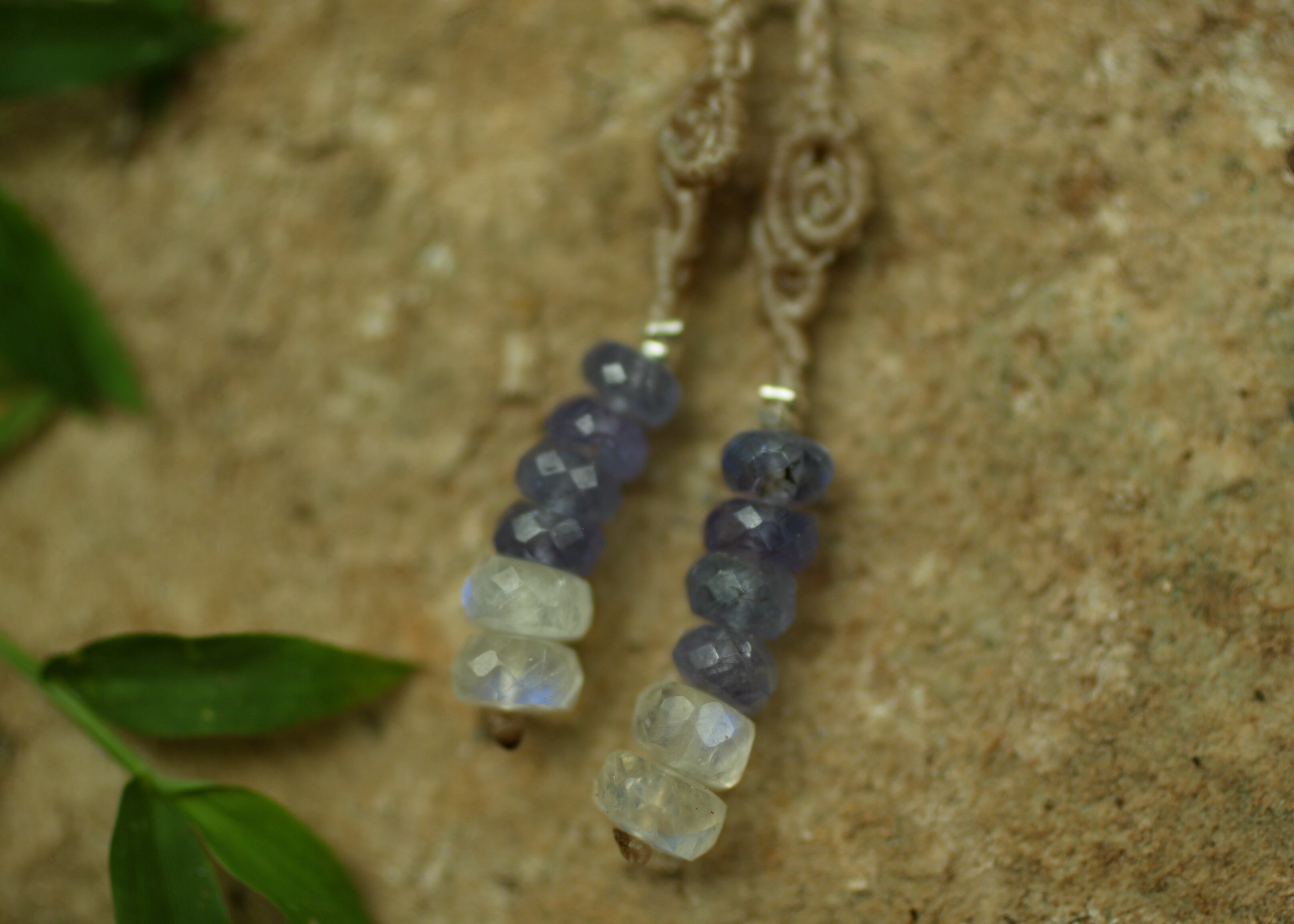 ひもの最後に . . . . . タンザナイト、ムーンストーン、シルバー925ビーズ 使用