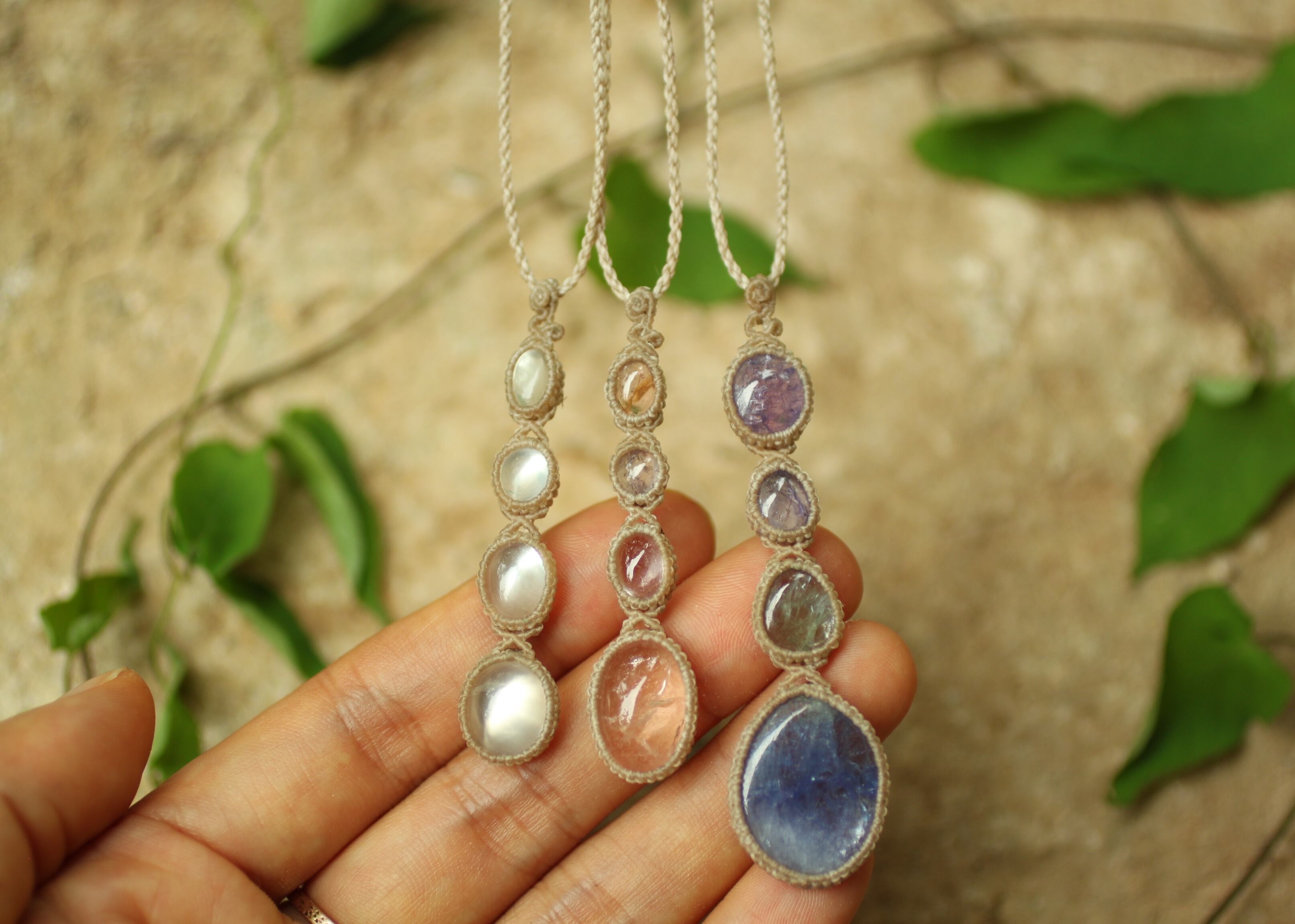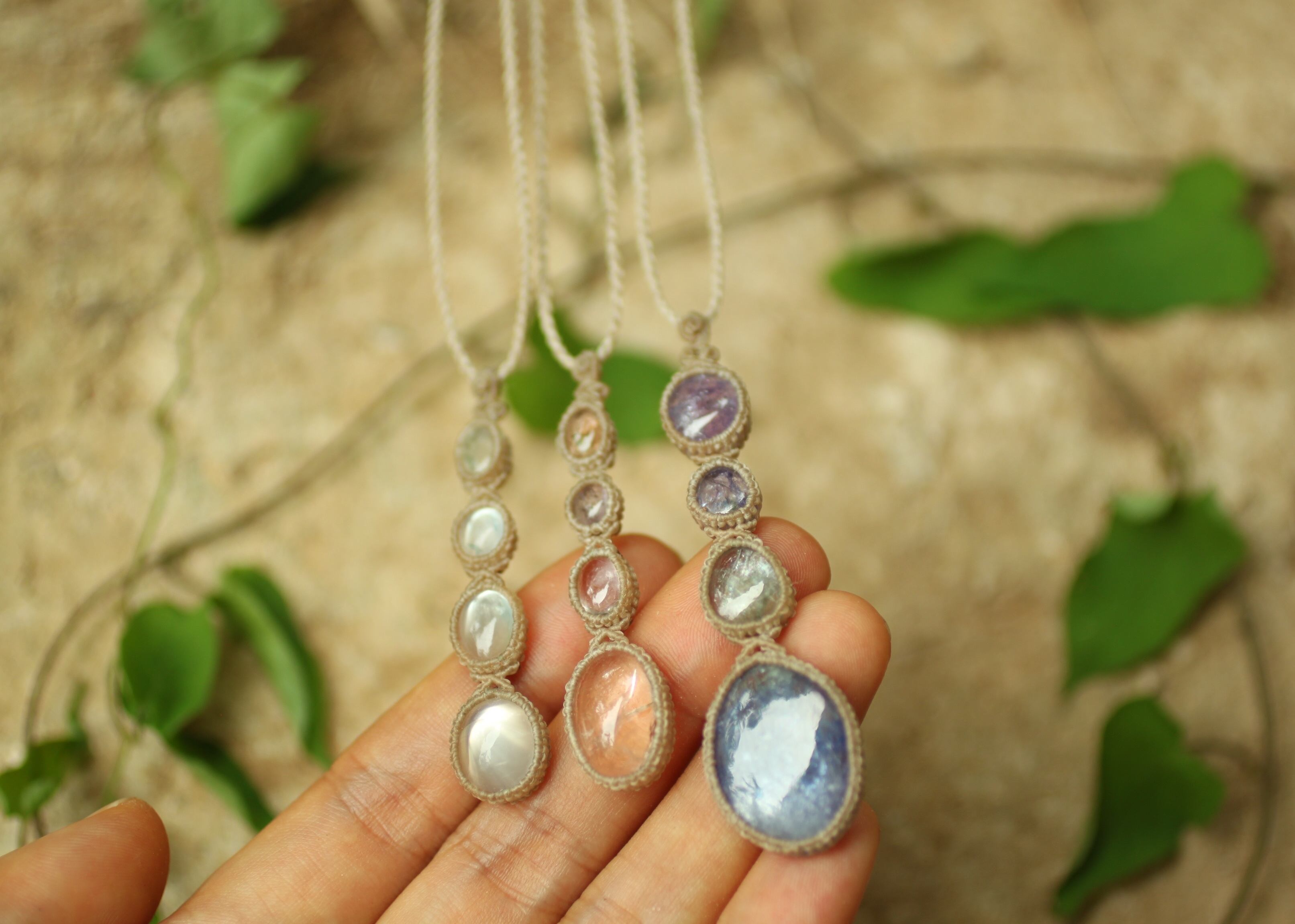 ※ 天然石を包むコードを始めトップ部分に使用したマクラメ編みコードは、