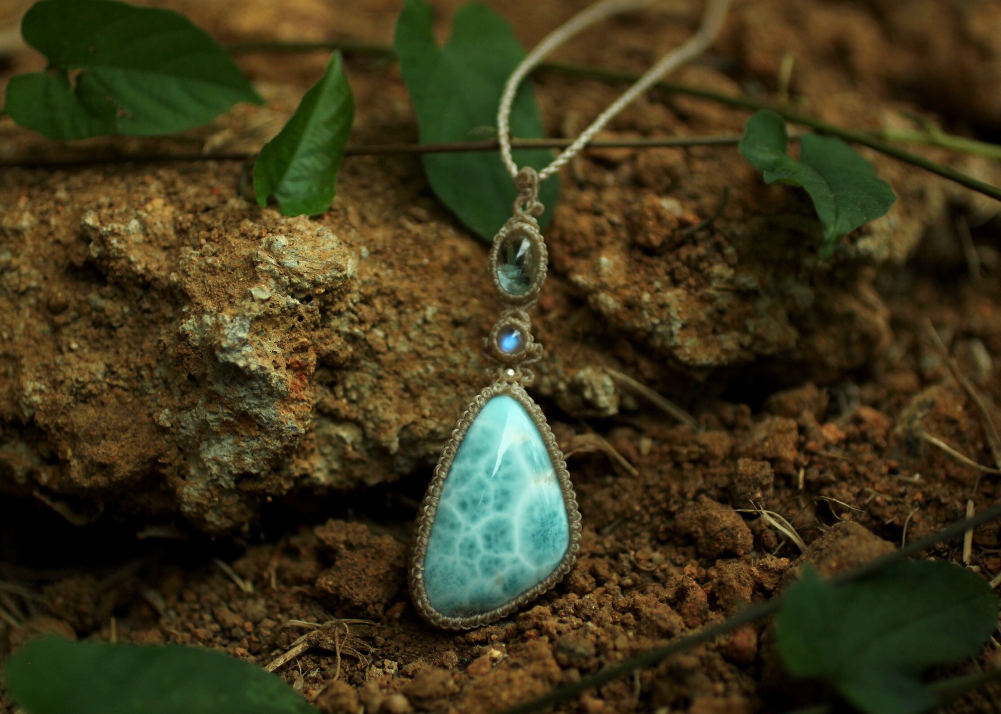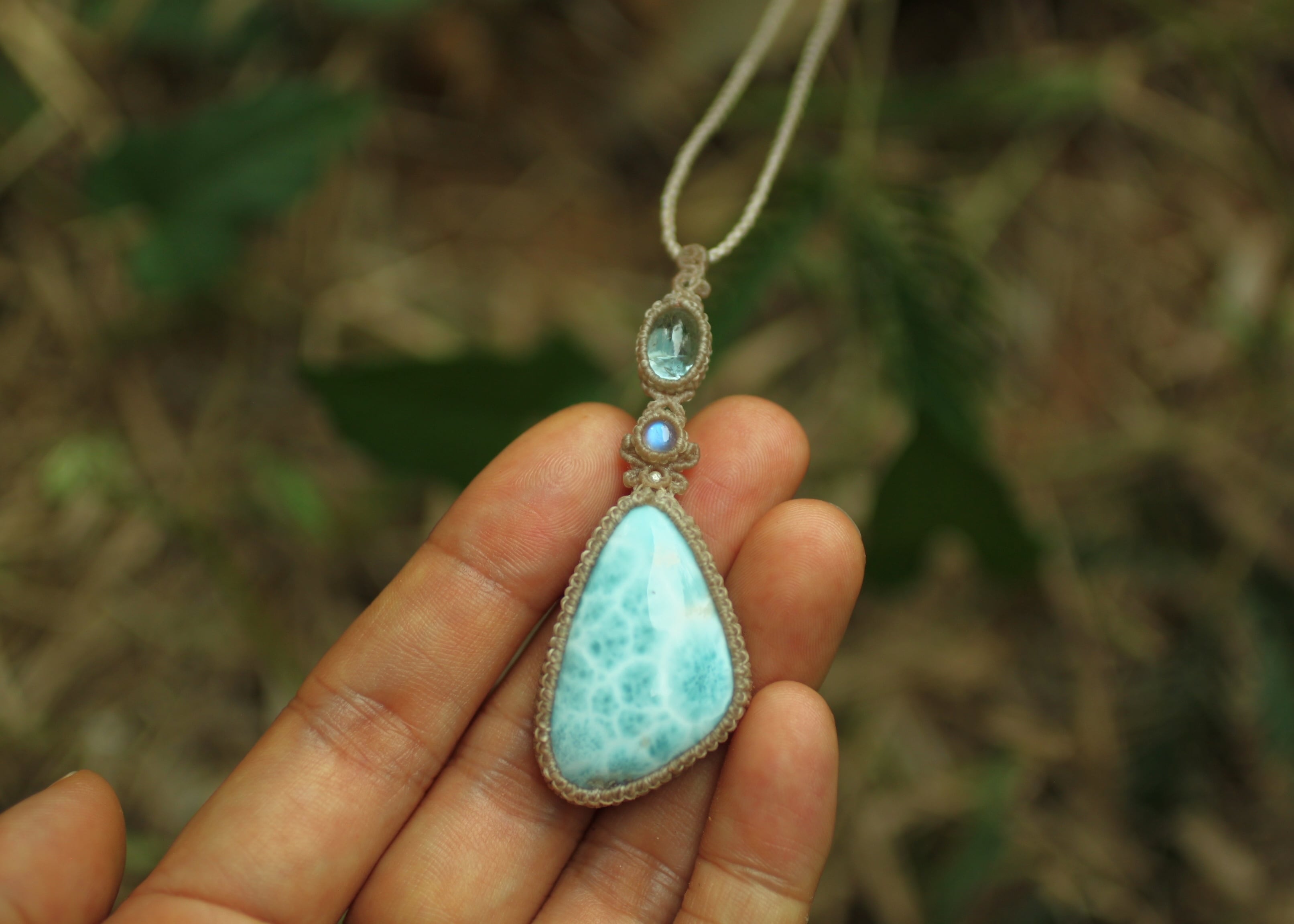 ラリマー × アクアマリン × ムーンストーン ペンダント