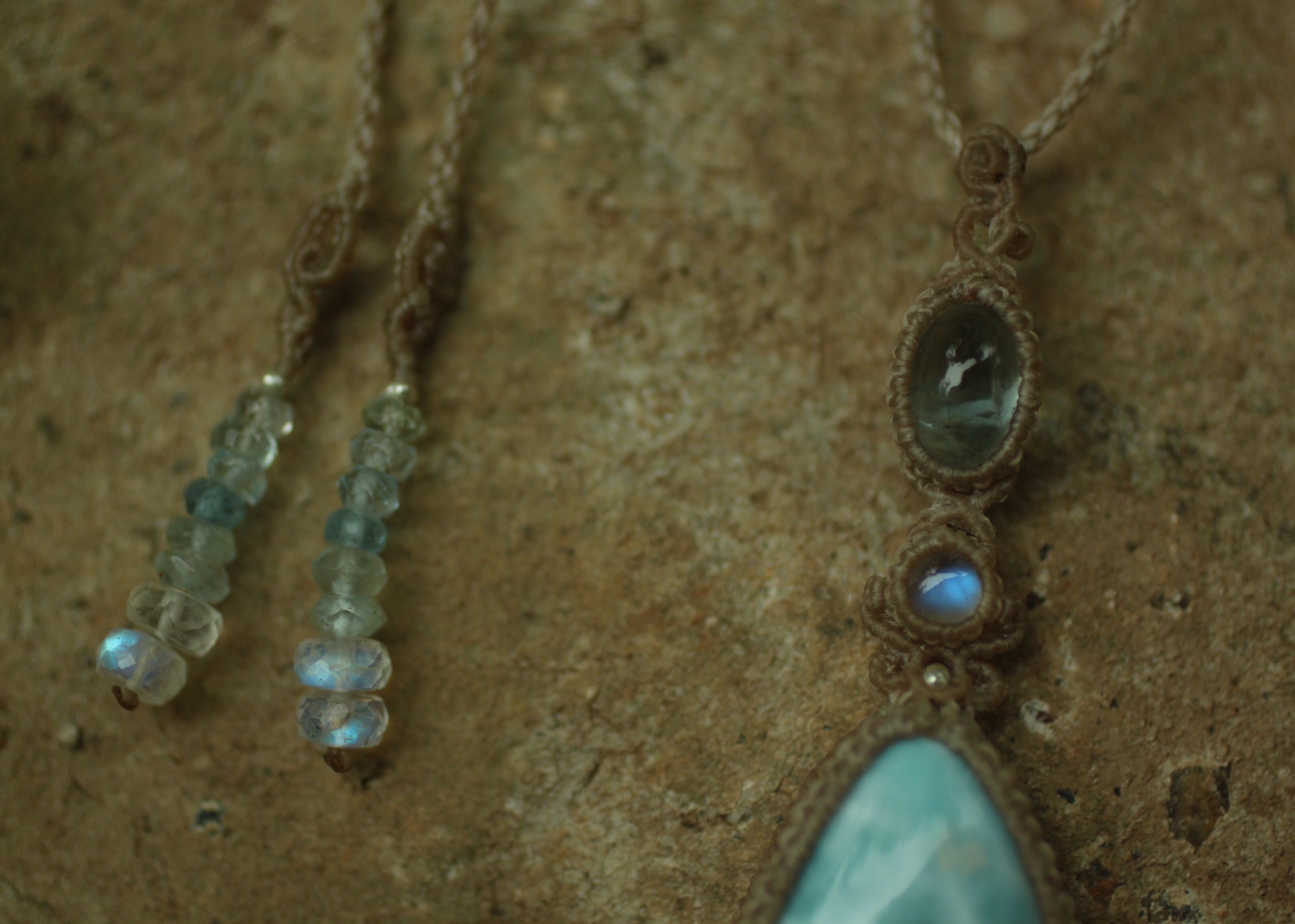 ※ マクラメ編み装飾は、手縫い糸ほどの細いコードを使い出来る限り天然石の表情と繊細な仕上がりを重視し時間をかけ丁寧に編みました。