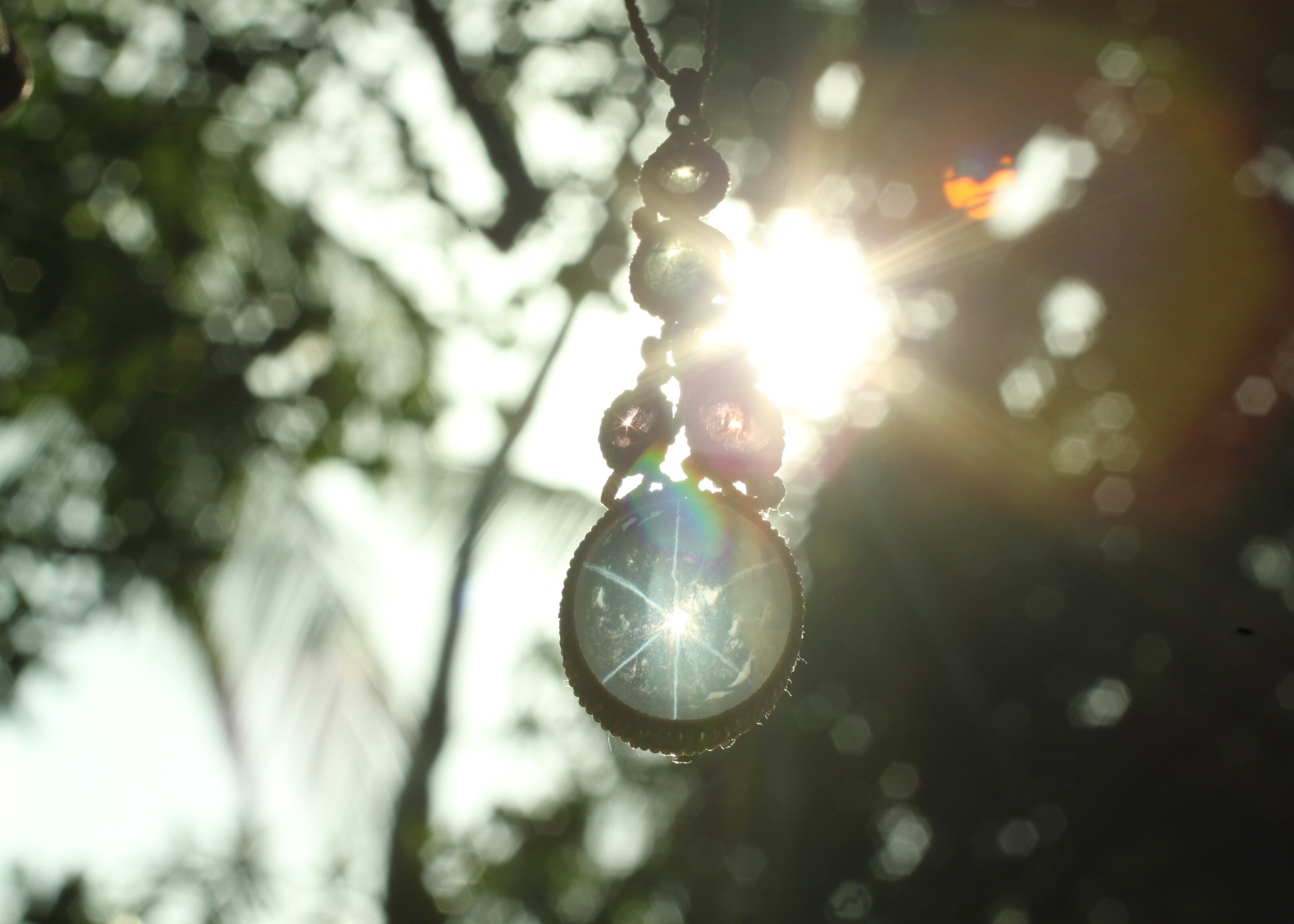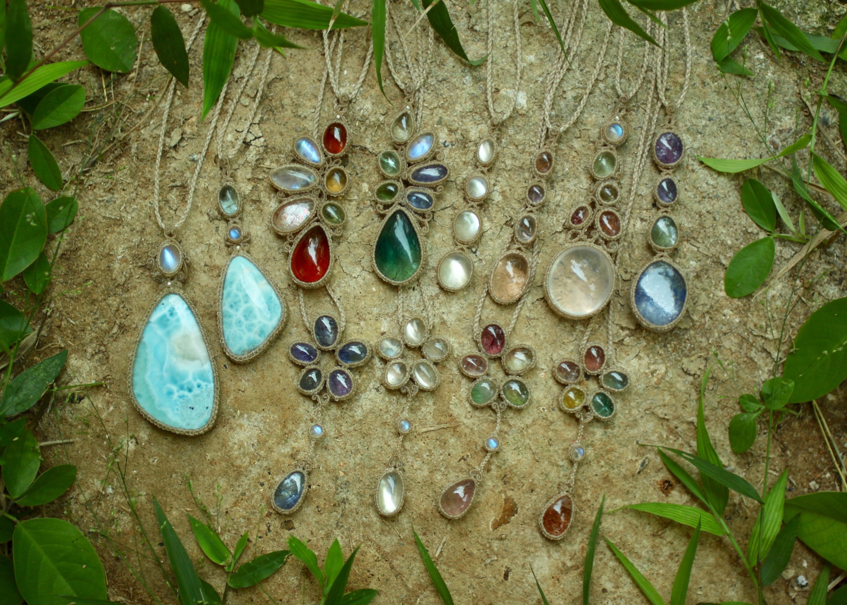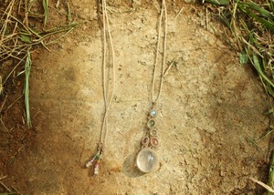 ※ 天然石を包むコードを始めトップ部分に使用したマクラメ編みコードは、