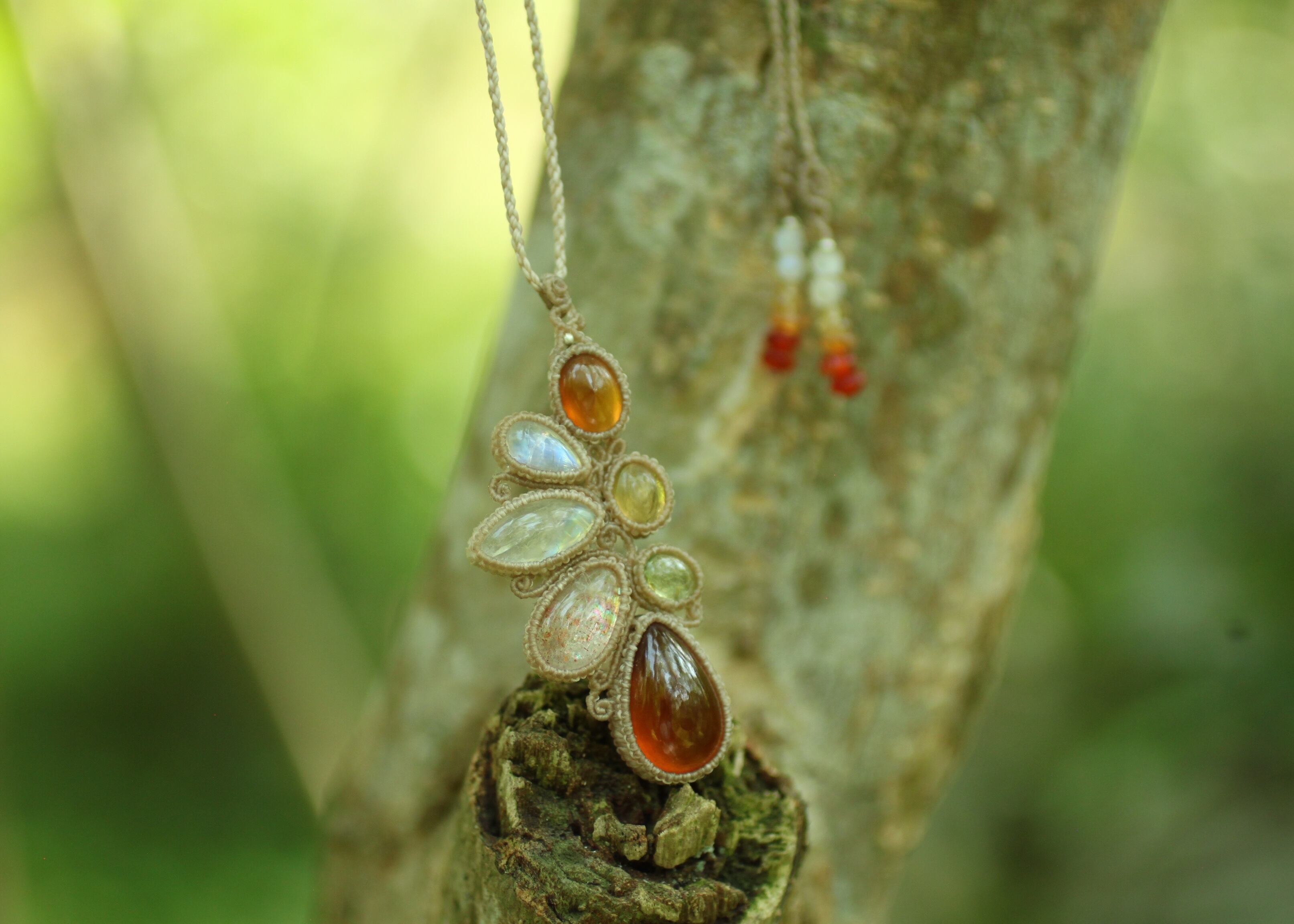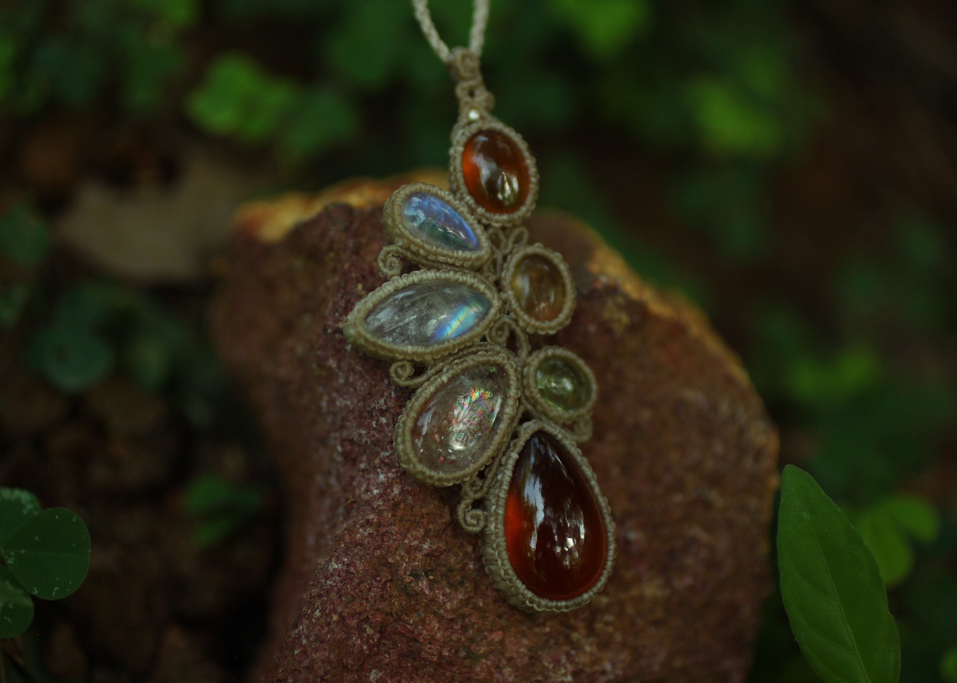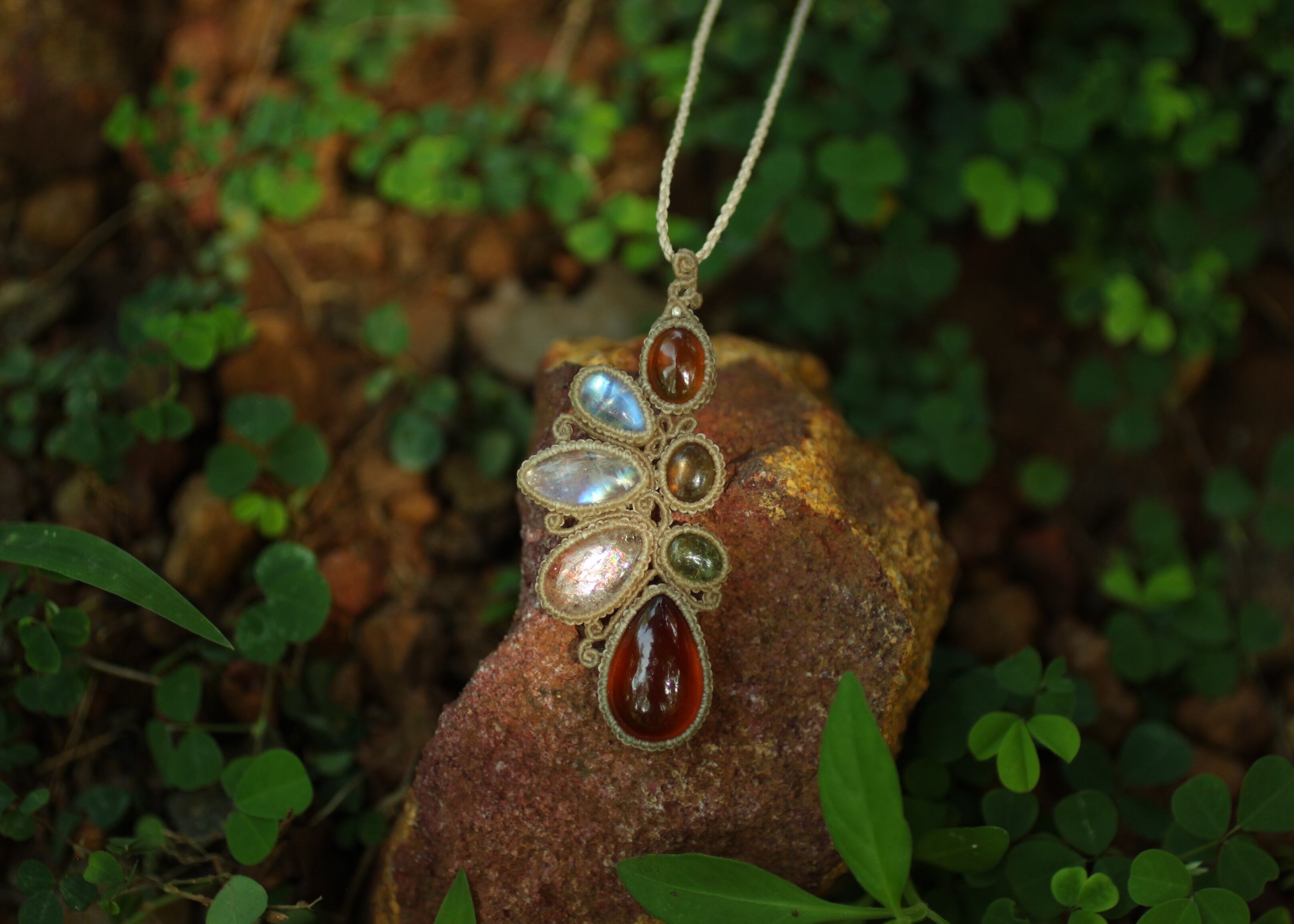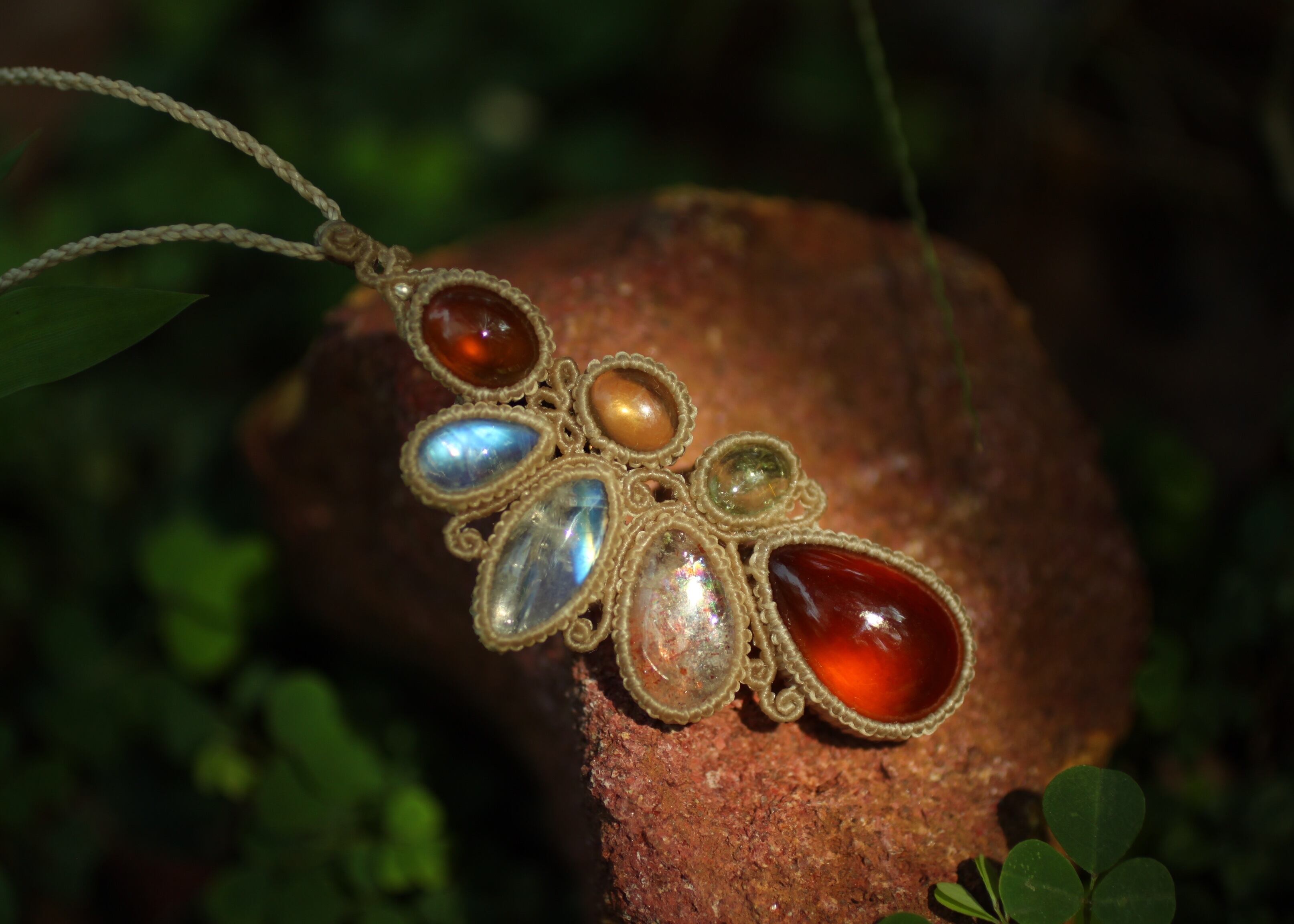 ※ 天然石を包むコードを始めトップ部分に使用したマクラメ編みコードは、