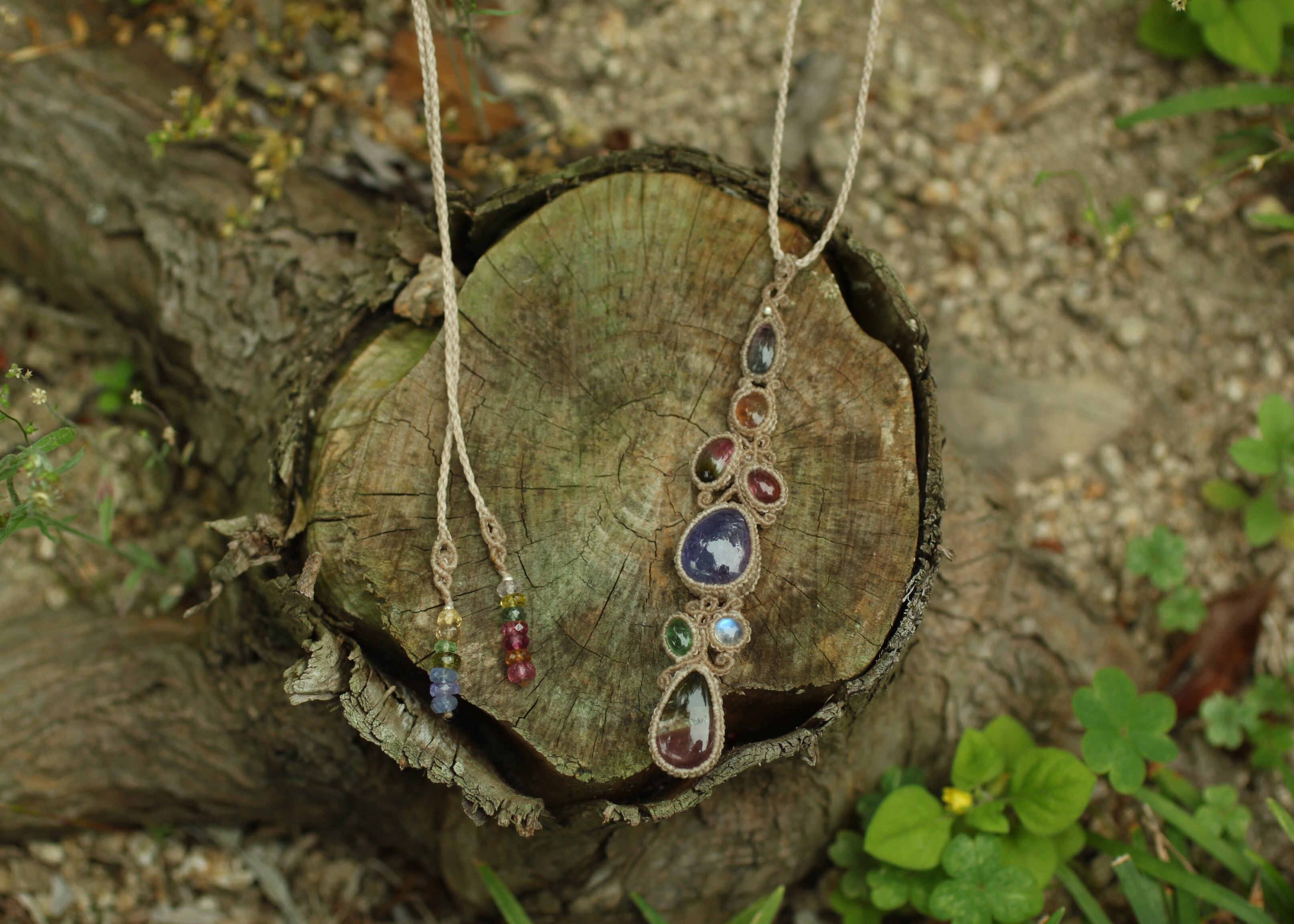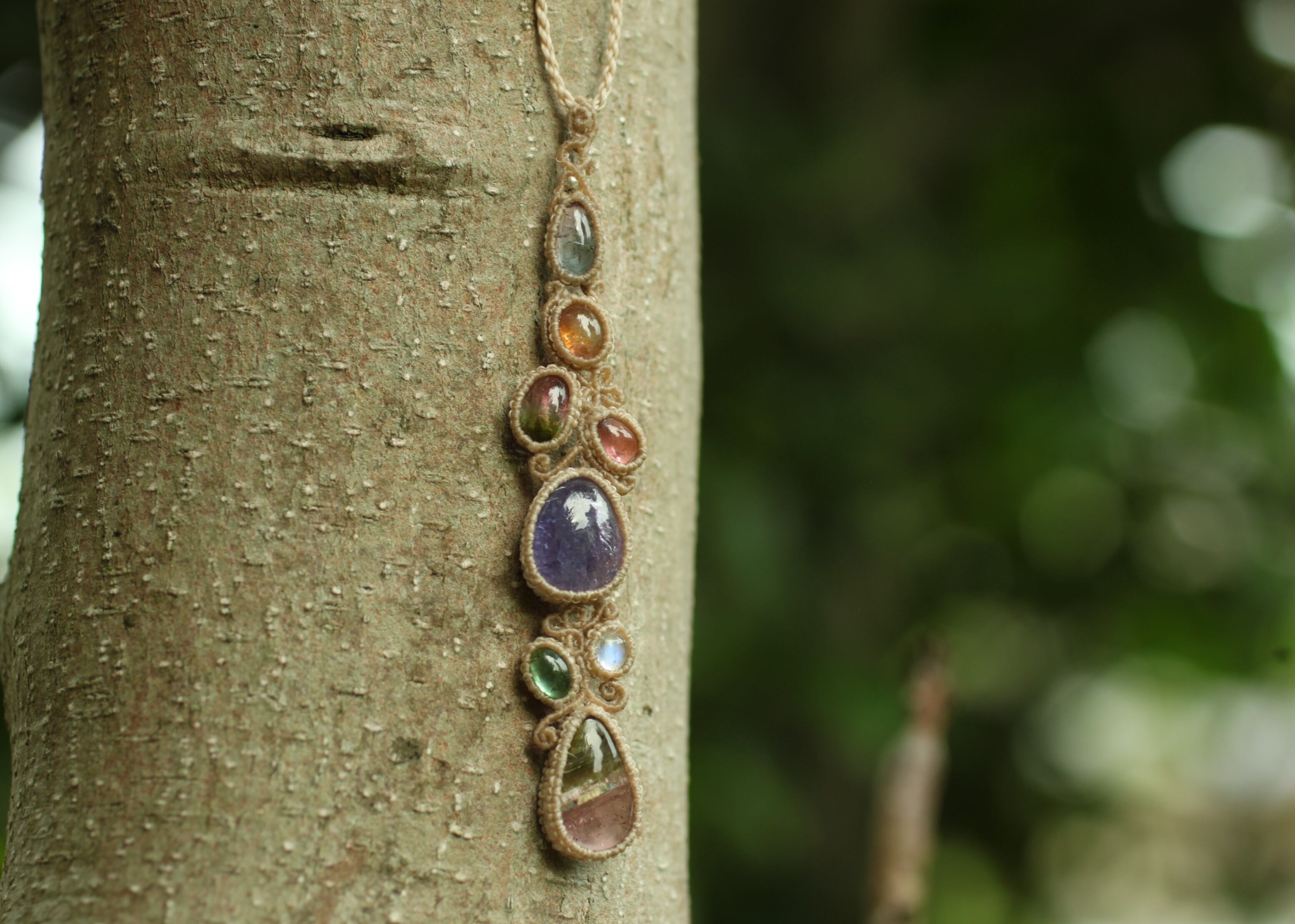 ※ 天然石を包むコードを始めトップ部分に使用したマクラメ編みコードは、