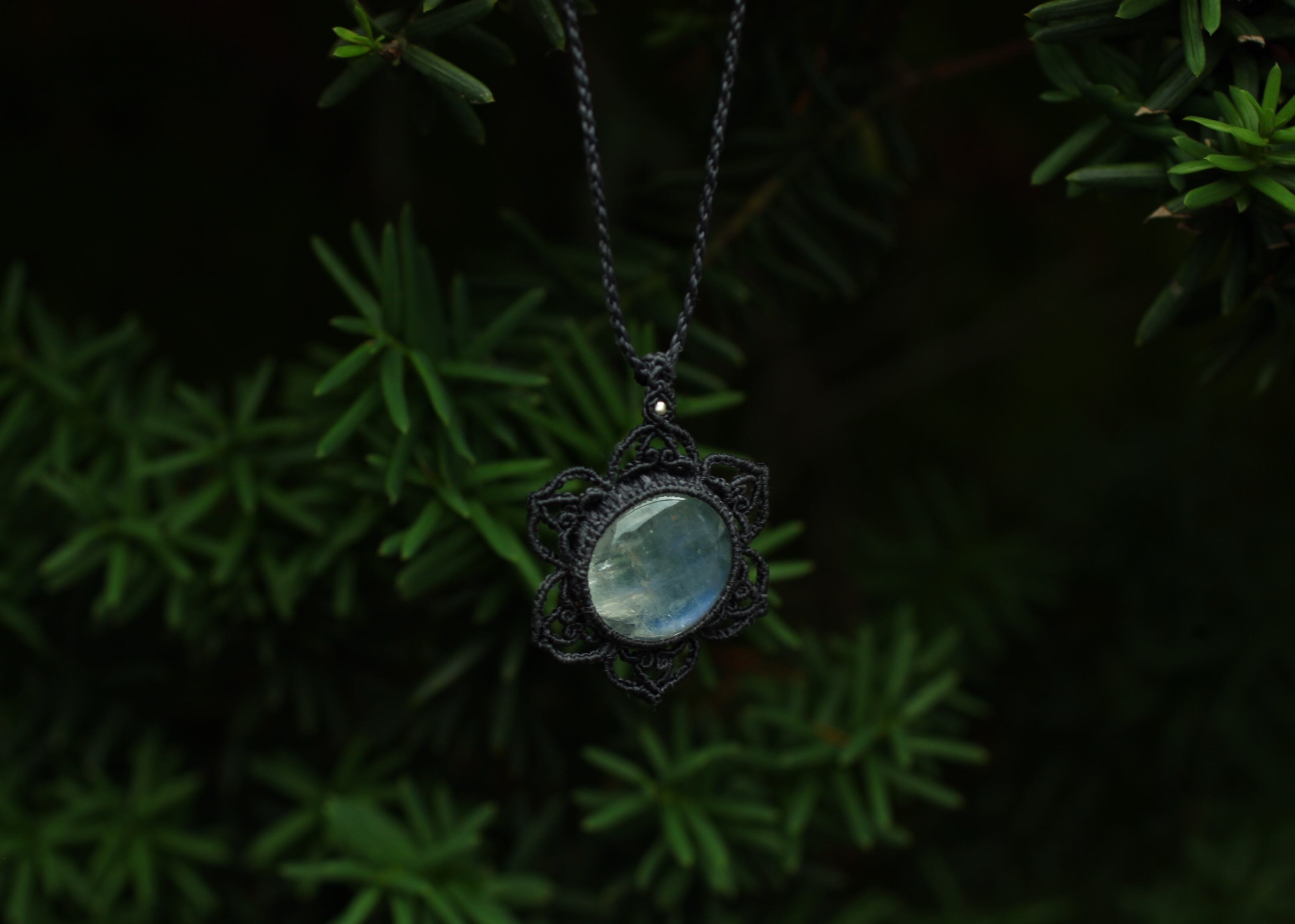 ※ 天然石を包むコードを始めトップ部分に使用したマクラメ編みコードは、