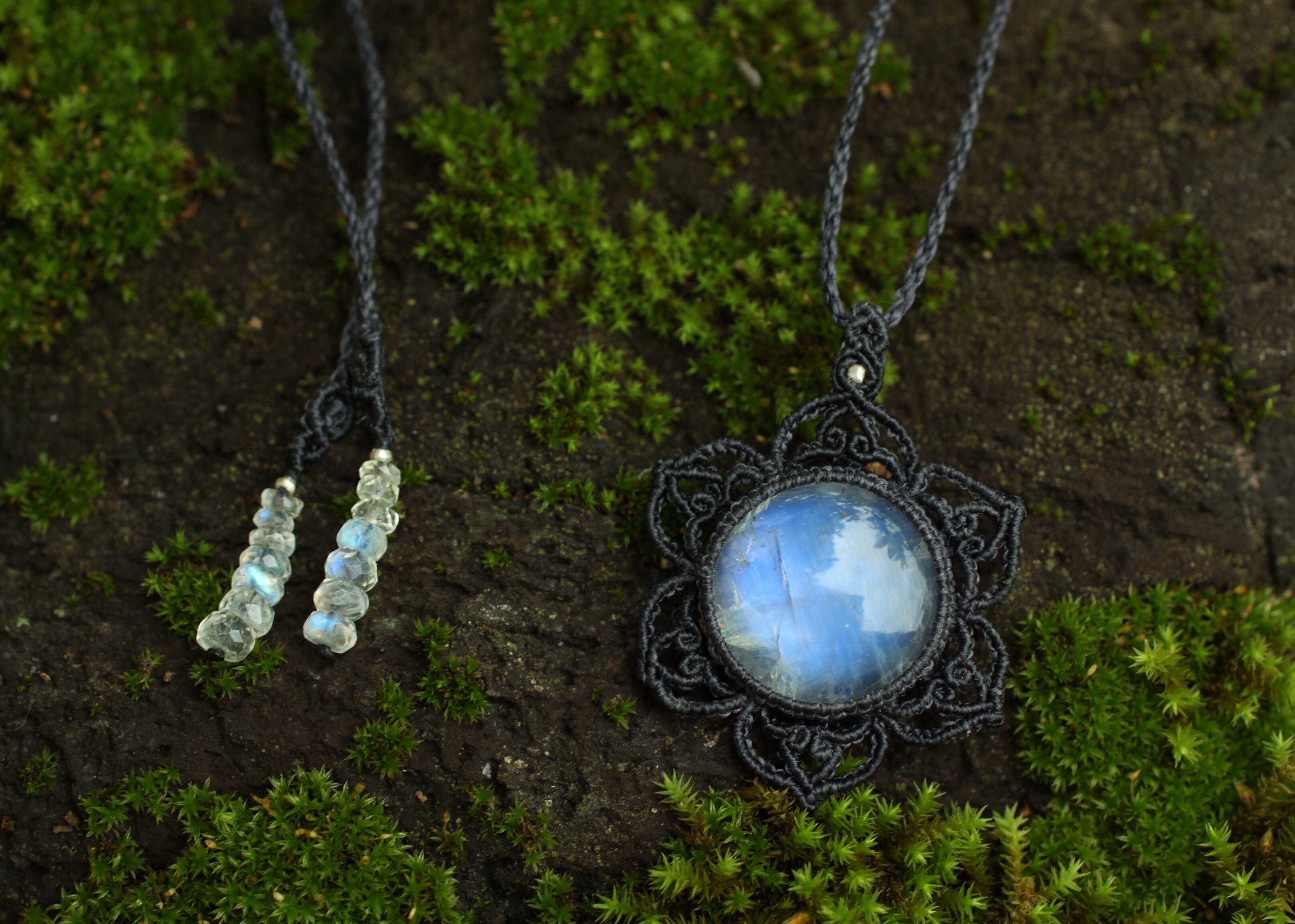 手縫い糸ほどの細いコードを使い出来る限り天然石の表情と繊細な仕上がりを重視し時間をかけ丁寧に編みました。