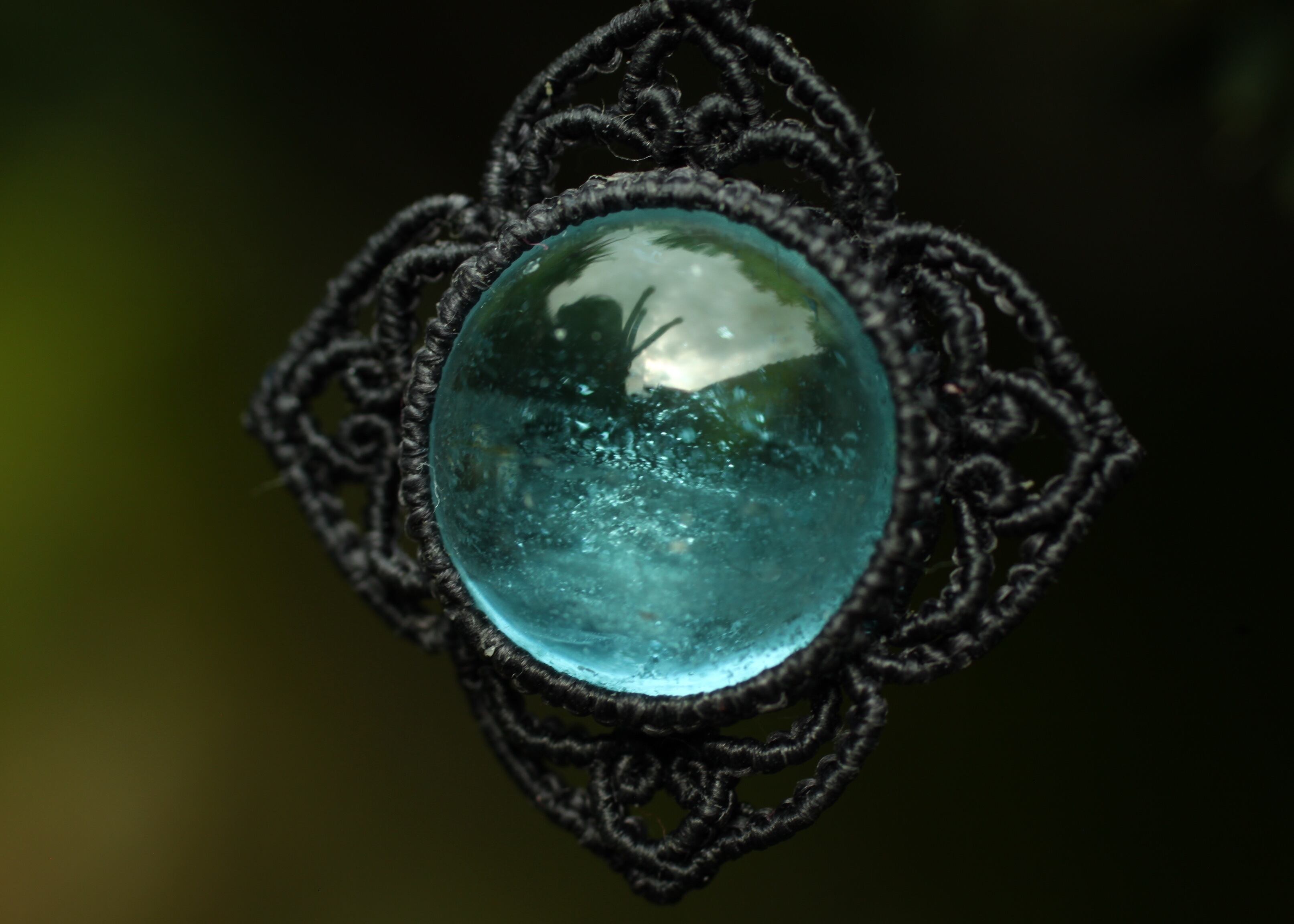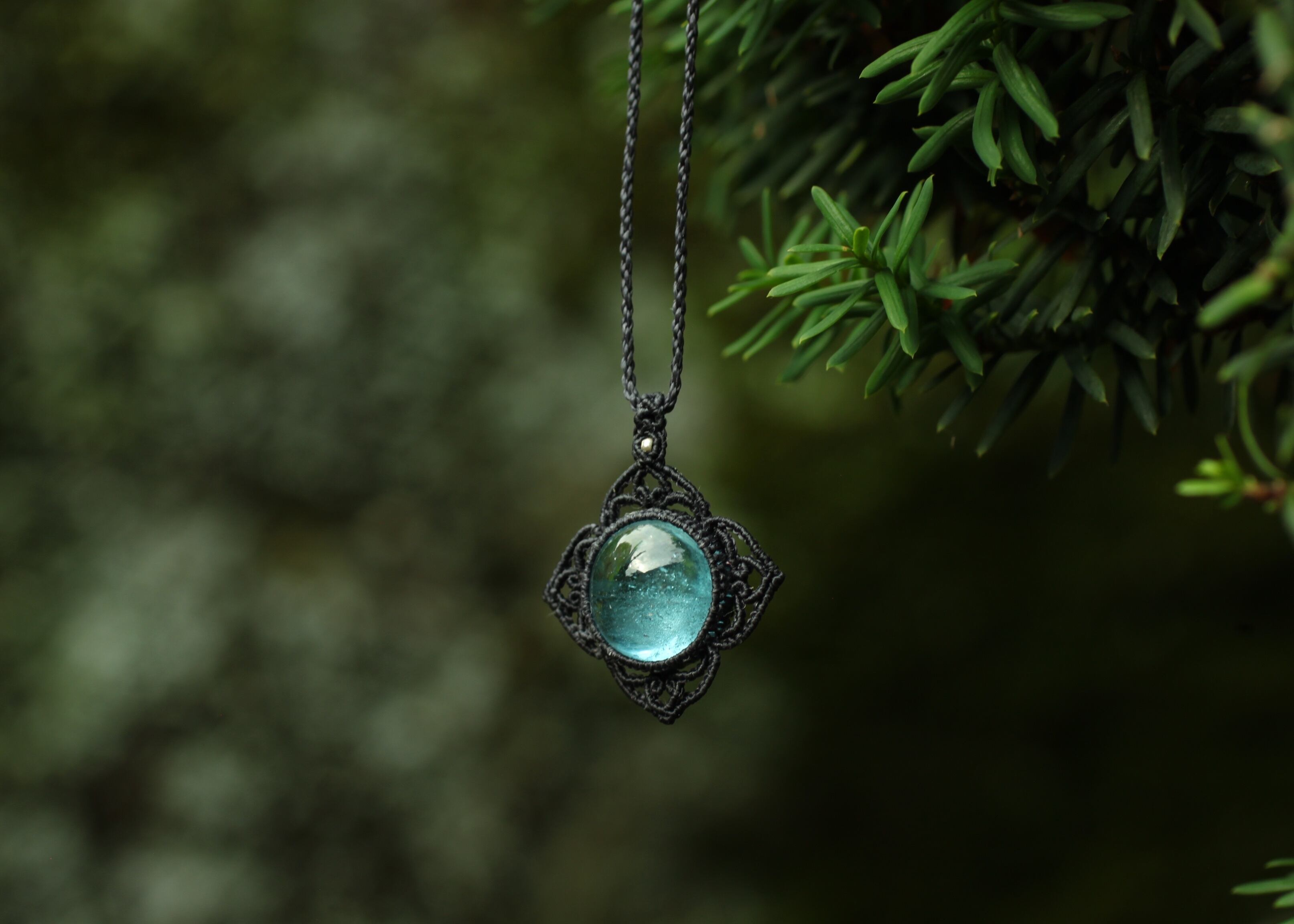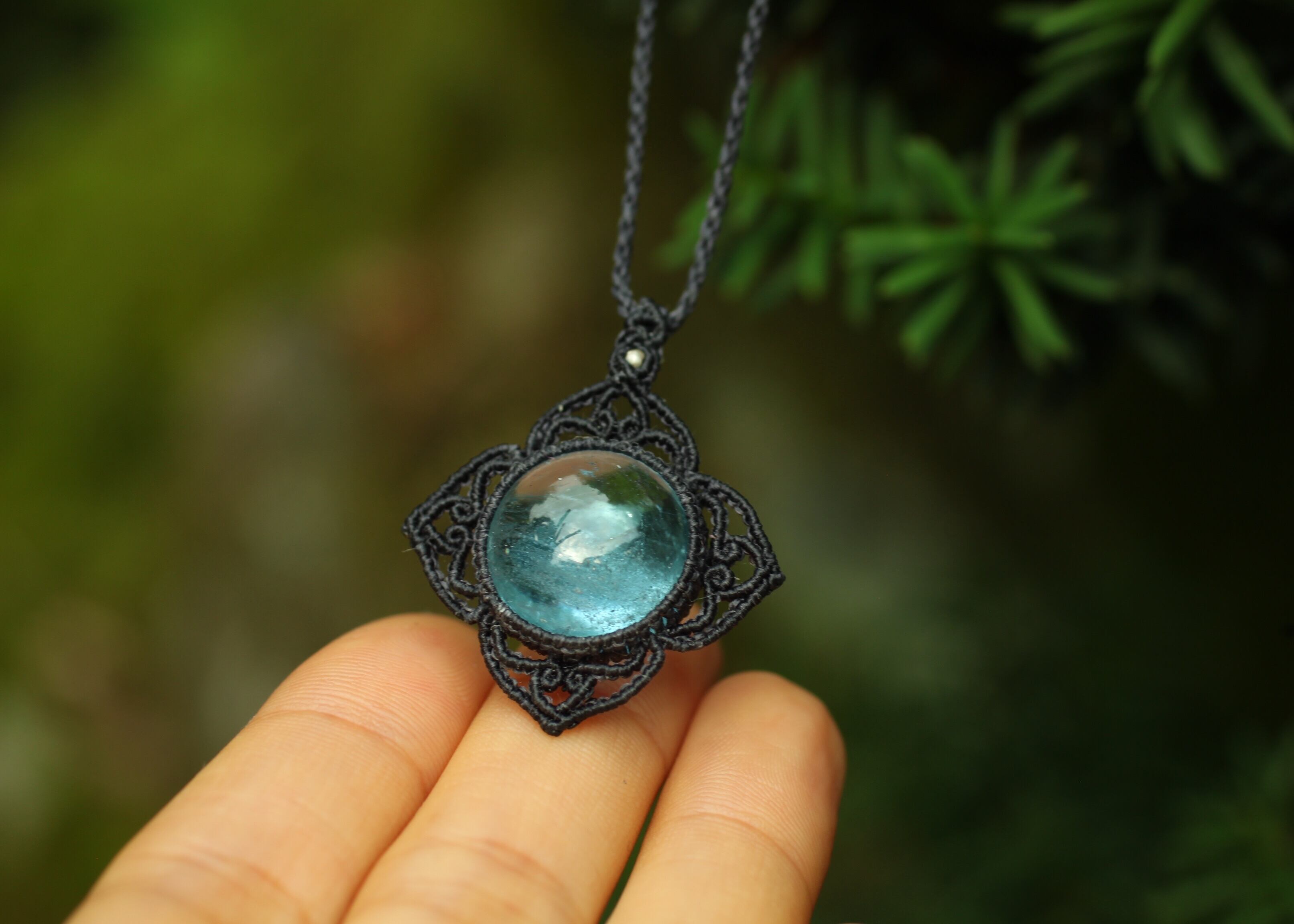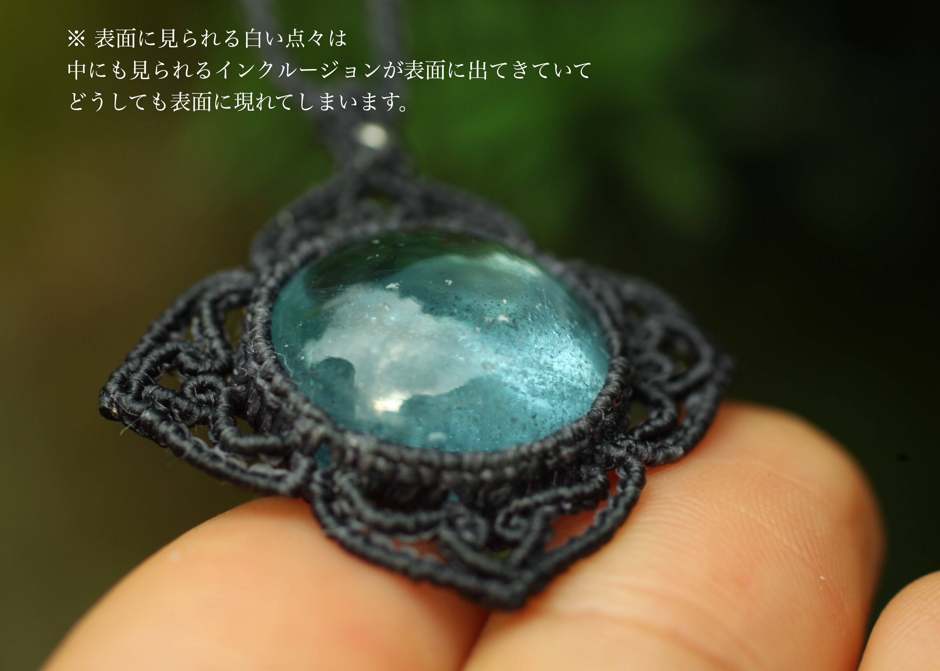※ 天然石を包むコードを始めトップ部分に使用したマクラメ編みコードは、