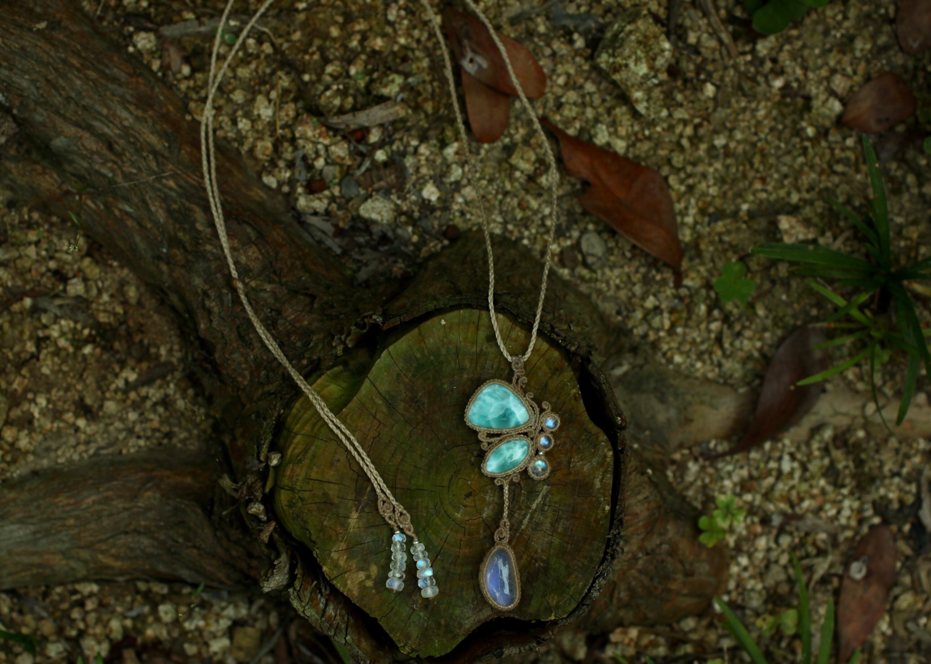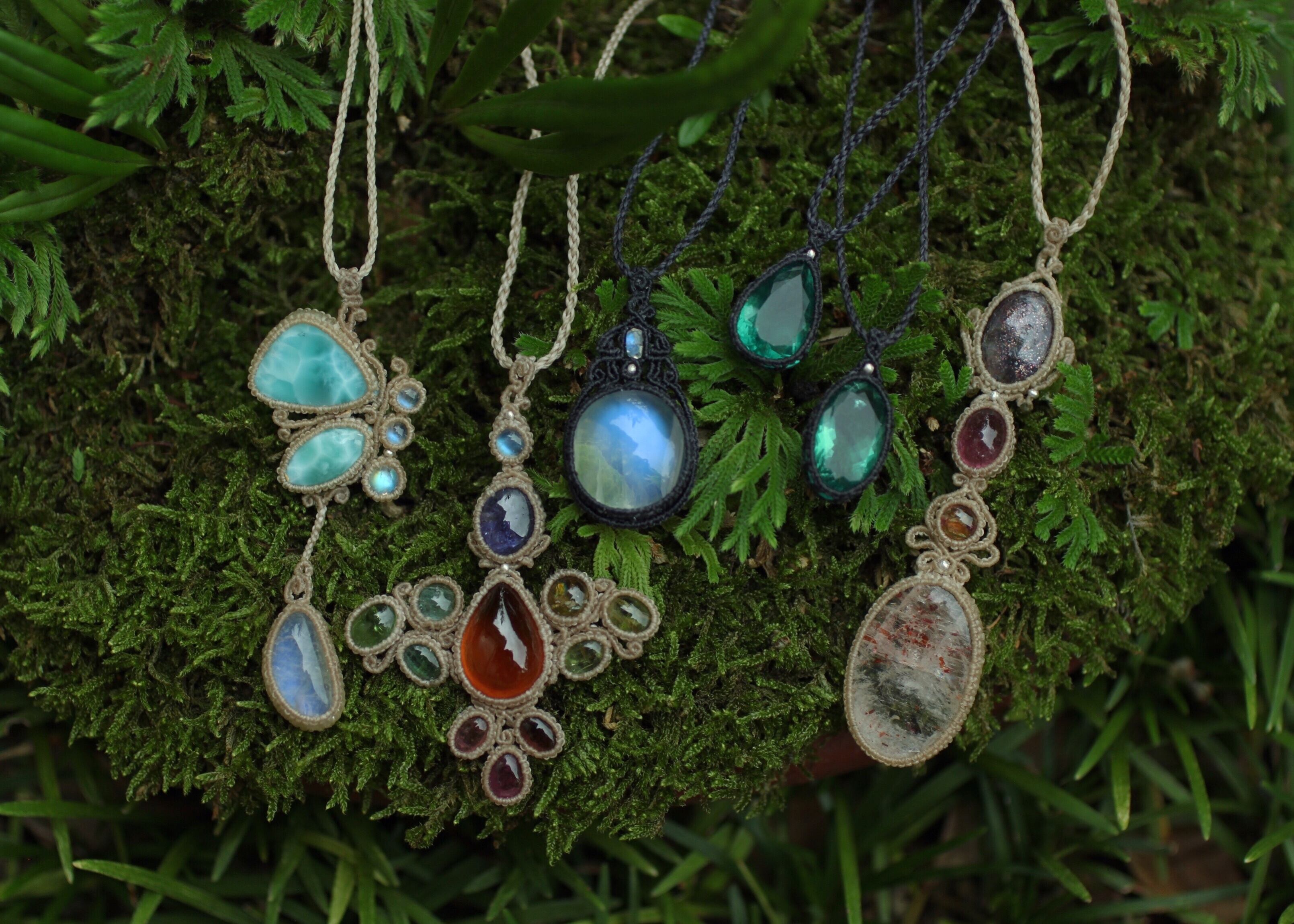 ※ 天然石を包むコードを始めトップ部分に使用したマクラメ編みコードは、