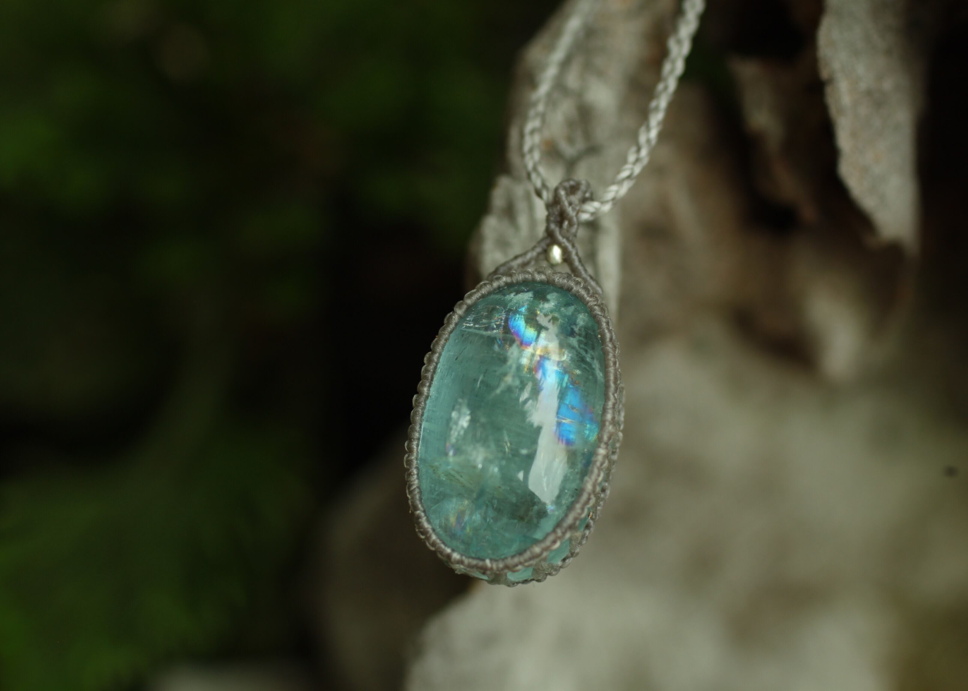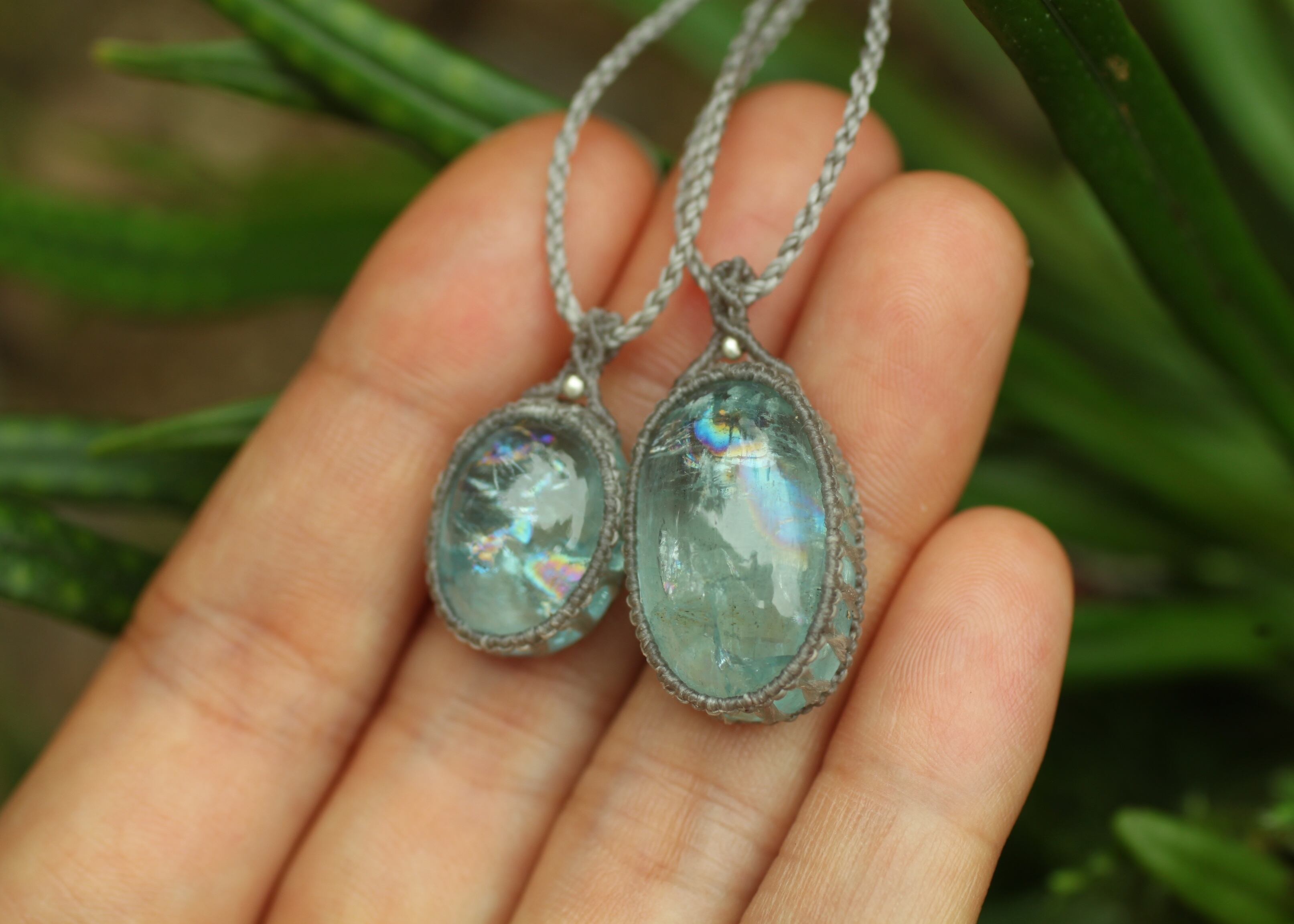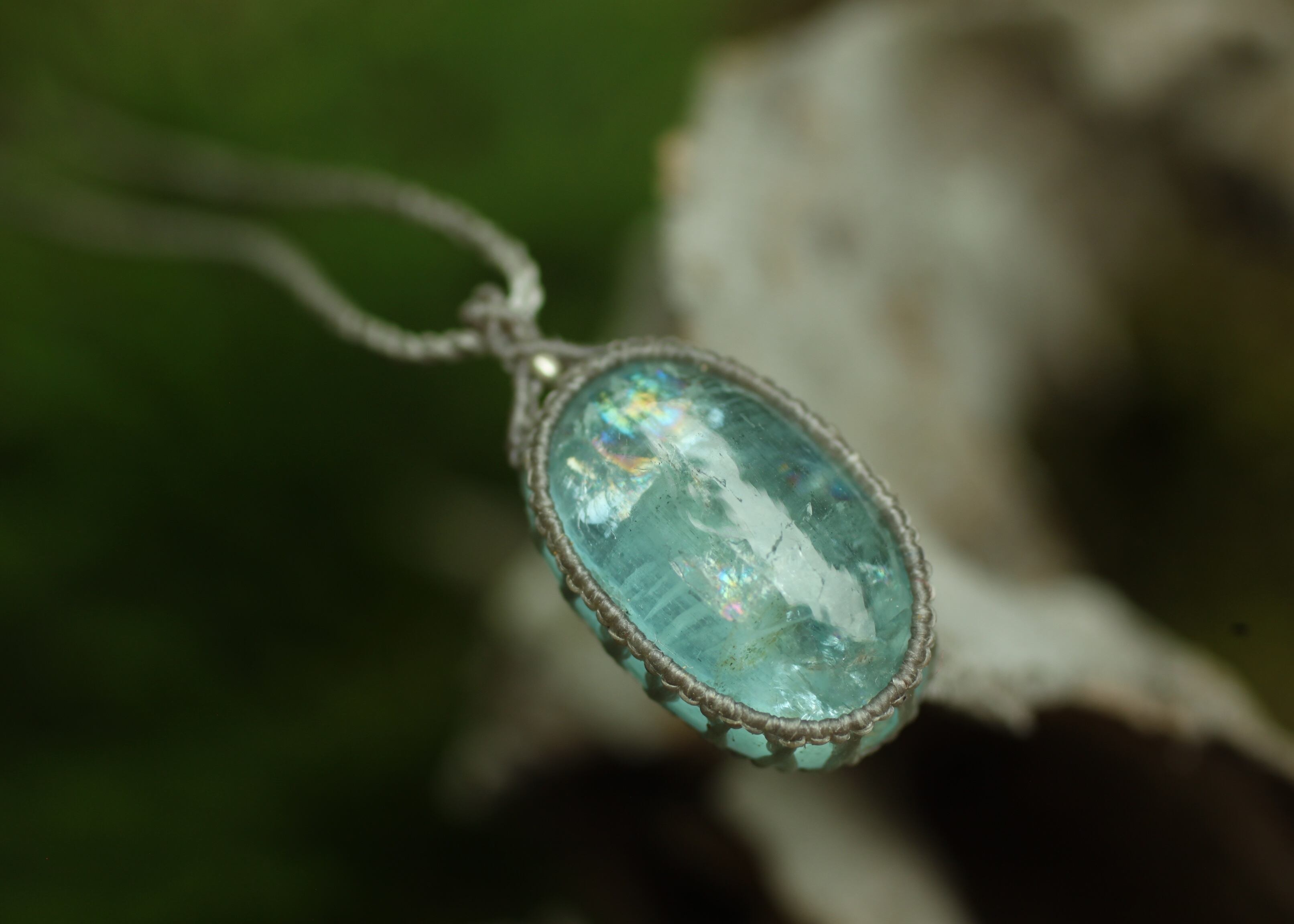 ※ 周囲に施したマクラメ編みは出来るだけ光りをアクアマリン内に届け、