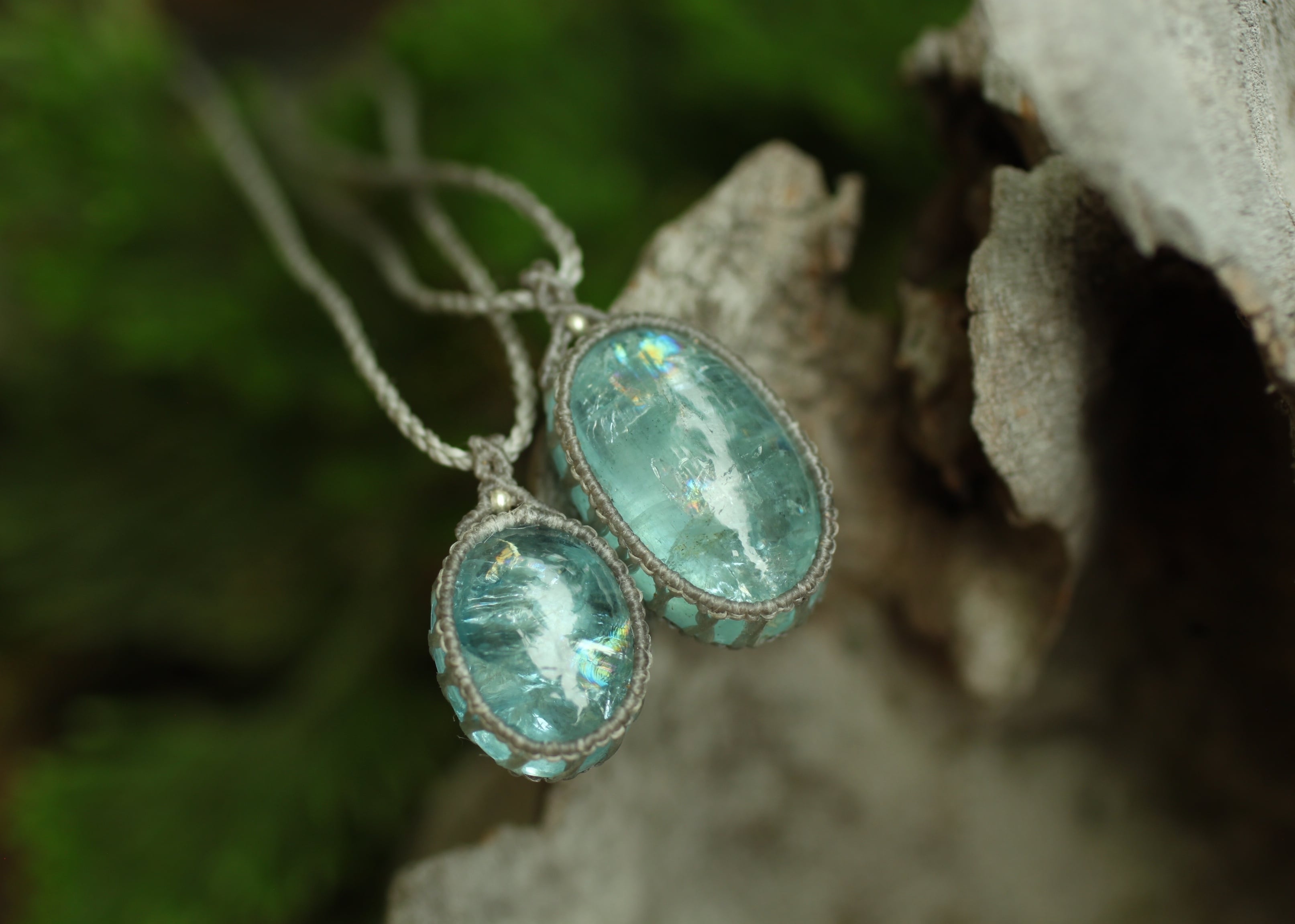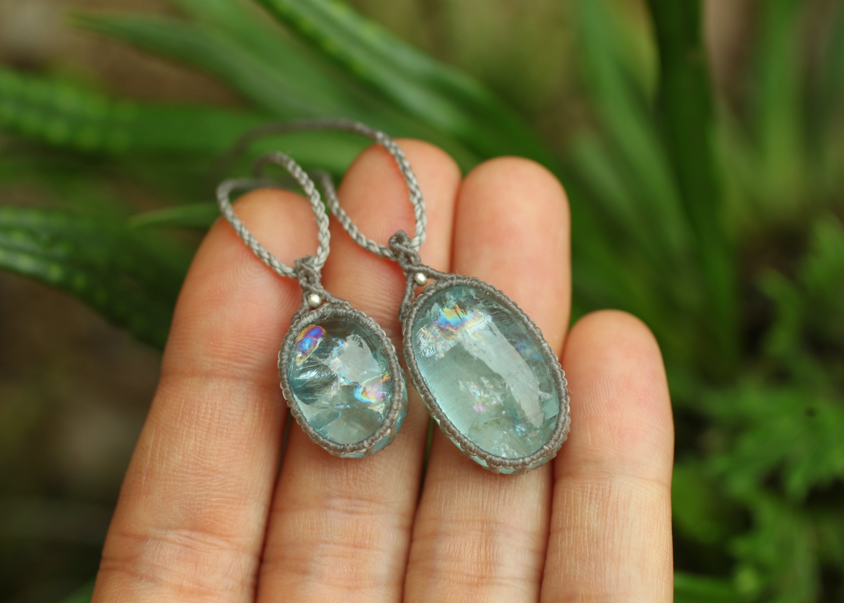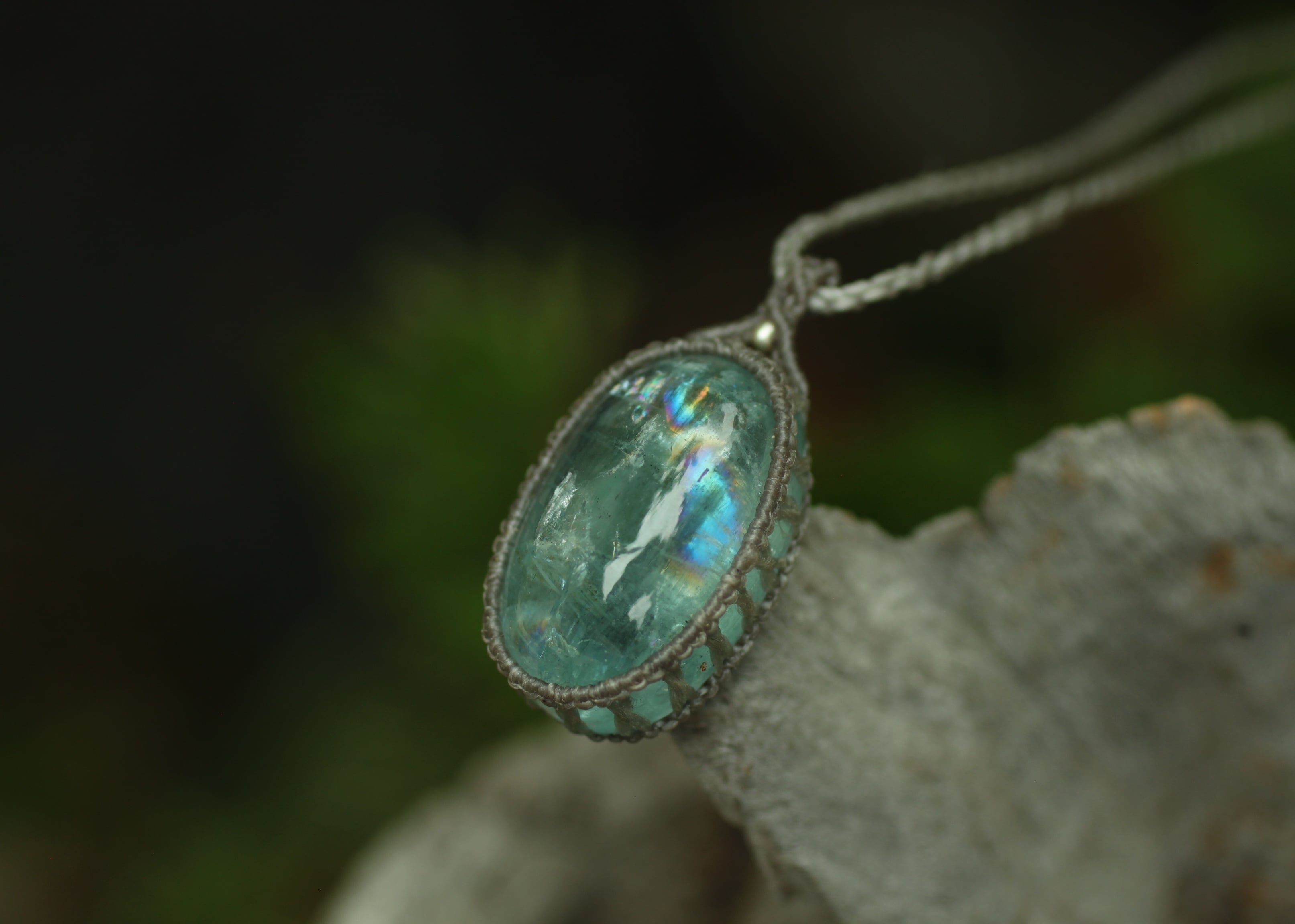 ※ 周囲に施したマクラメ編みは出来るだけ光りをアクアマリン内に届け、