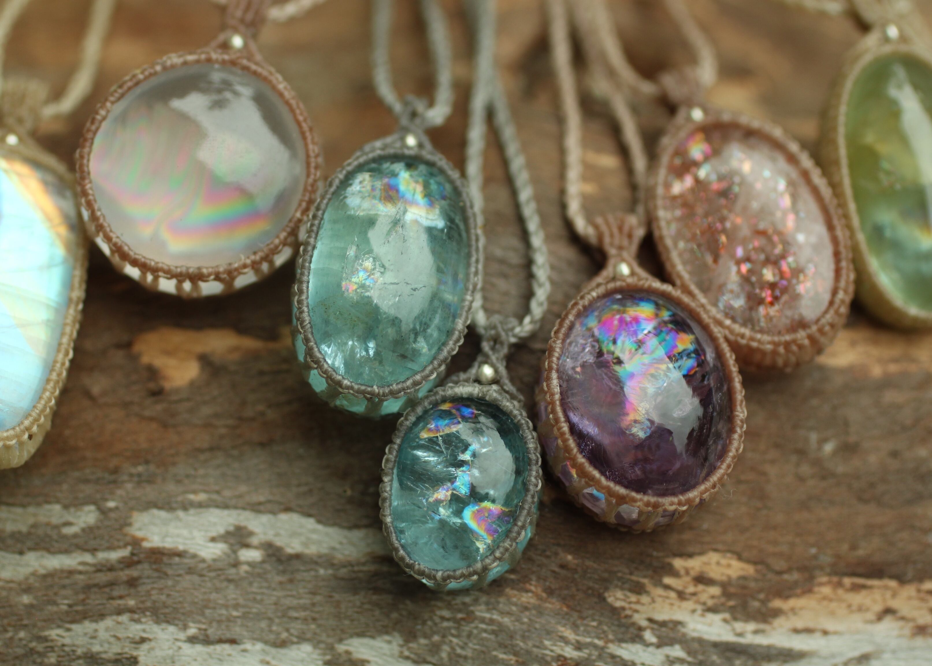 ※ 天然石を包むコードを始めトップ部分に使用したマクラメ編みコードは、