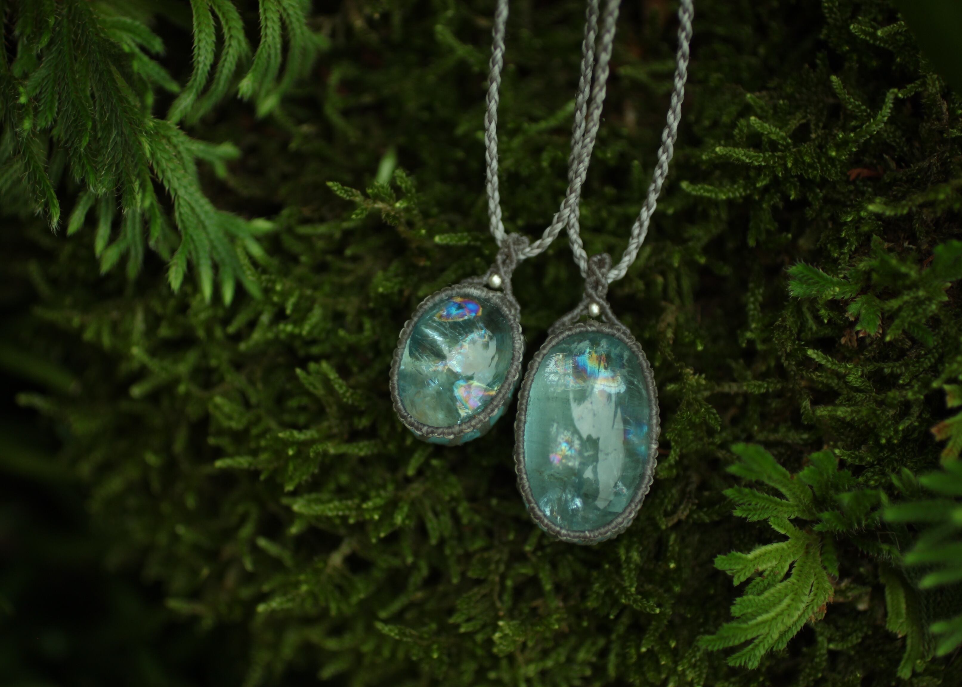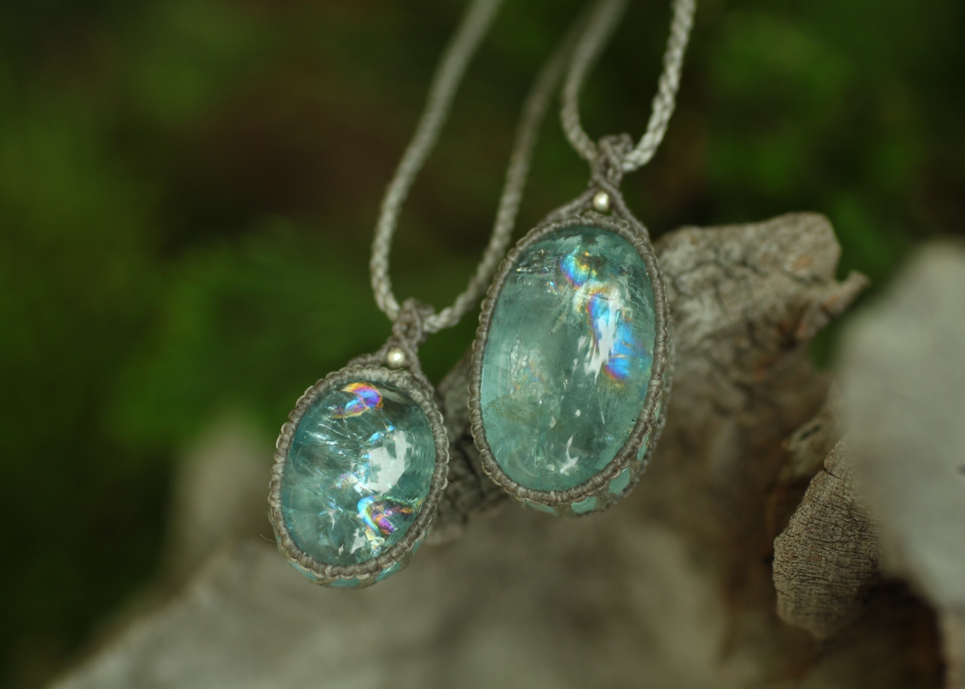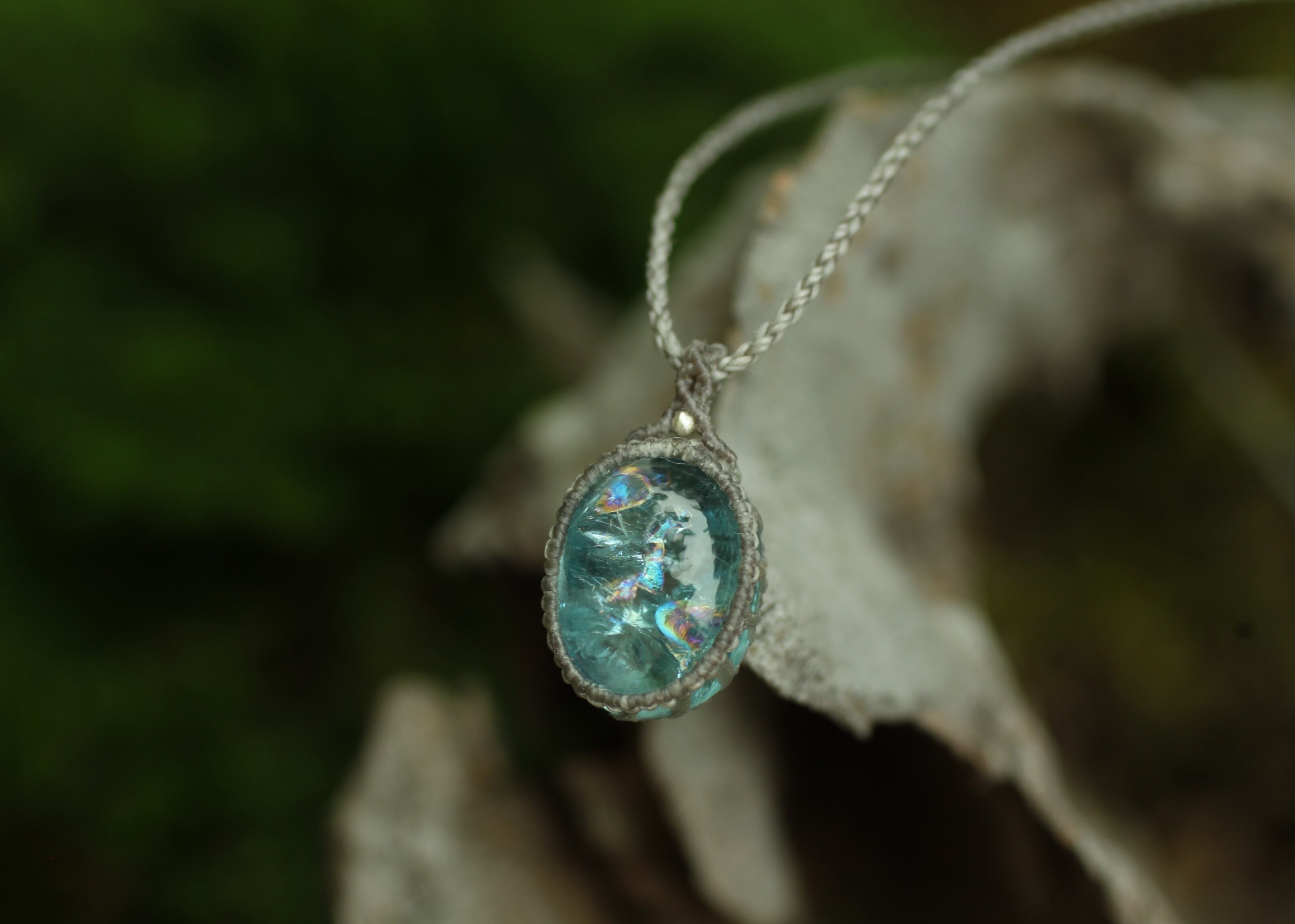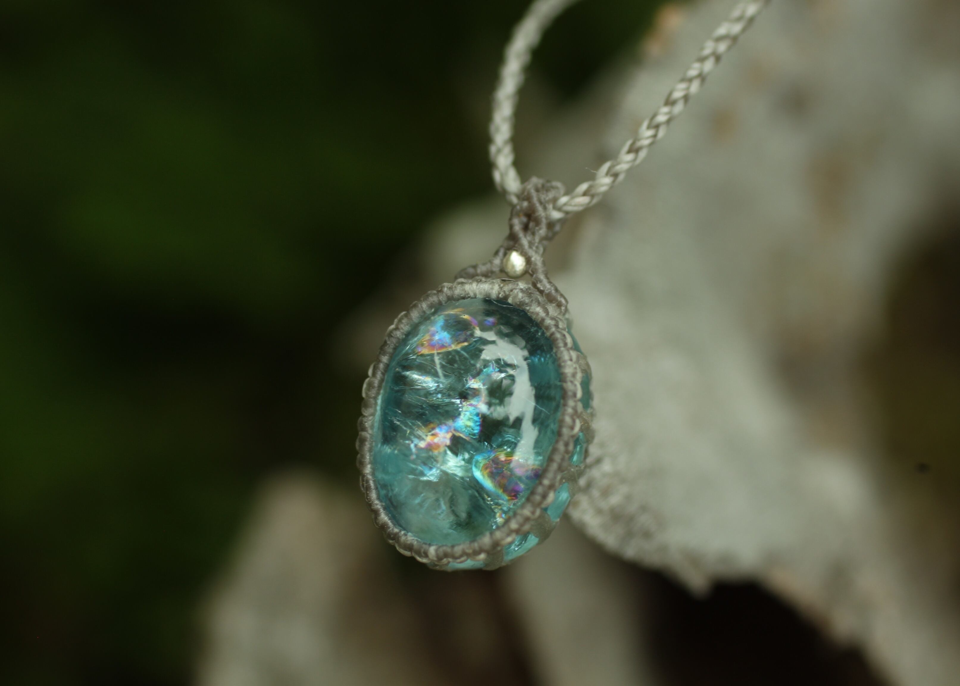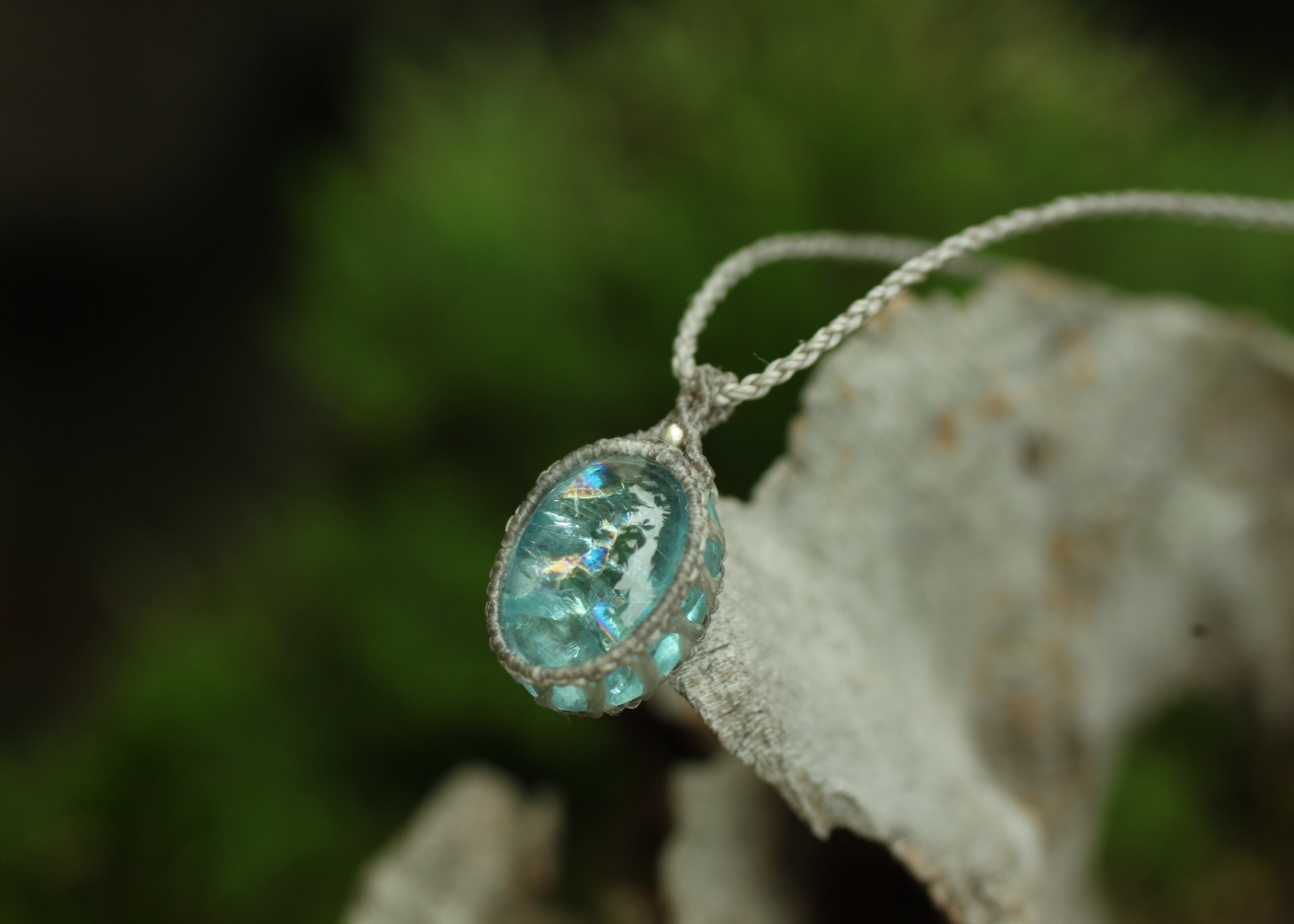 ※ 周囲に施したマクラメ編みは出来るだけ光りをアクアマリン内に届け